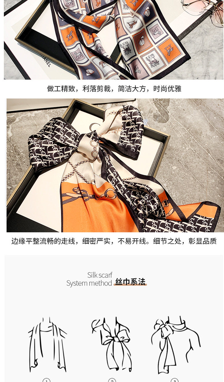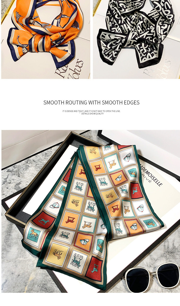 High-End Retro Orange French Ribbon Headband Silk Scarf Women's Small Long Silk Scarf Wholesale Professional Scarf Scarf