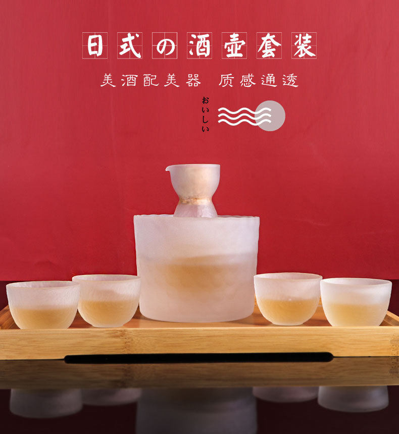 Japanese Hammered Sake Pot Glass Wine Warmer Set Household Warm Rice Wine Hot Pot White Wine Cup Ice Wine Set Ornaments