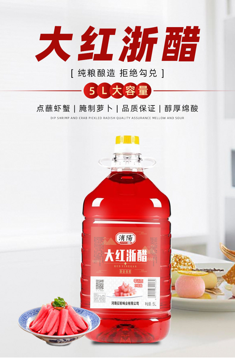 Yuyang red Zhejiang vinegar 10 Jin pickled radish hairy crab shrimp vinegar household Pickles special red vinegar commercial bottle