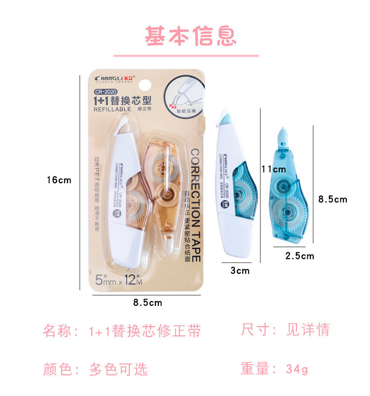 | Specifications | 1+1 correction tape suit,Supporting refill |