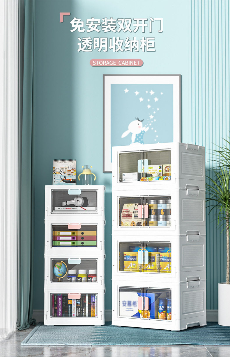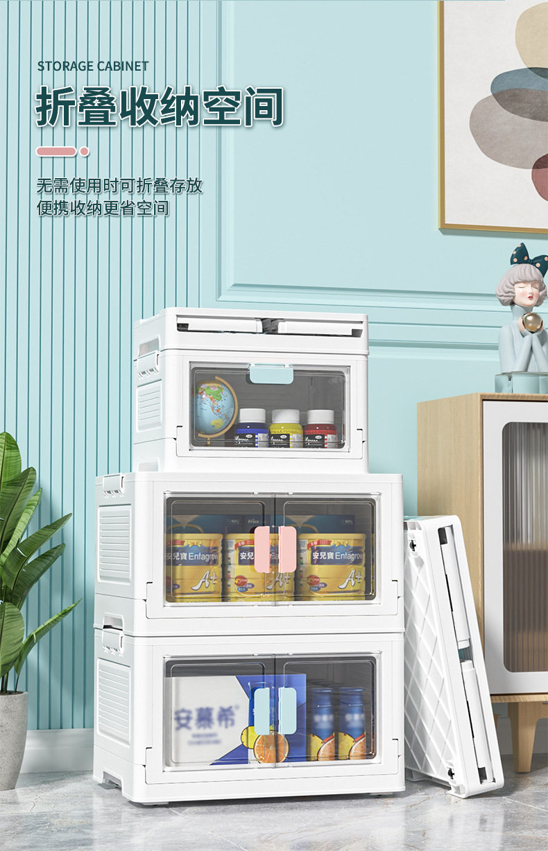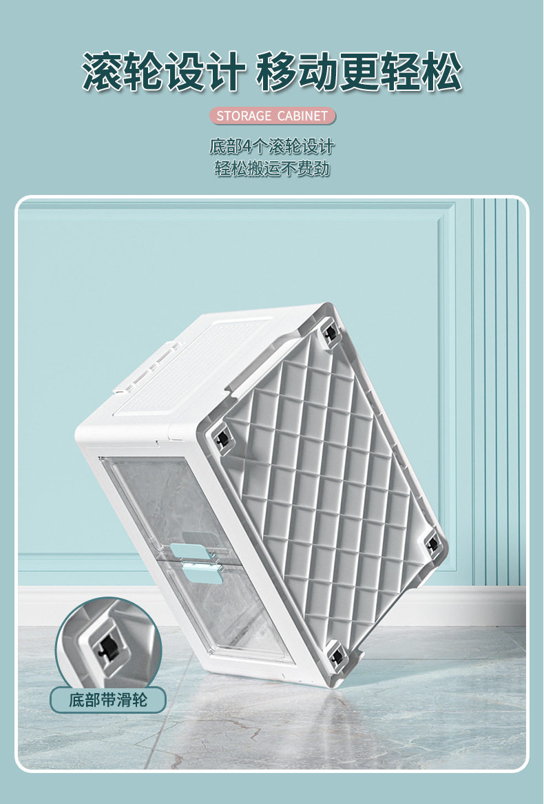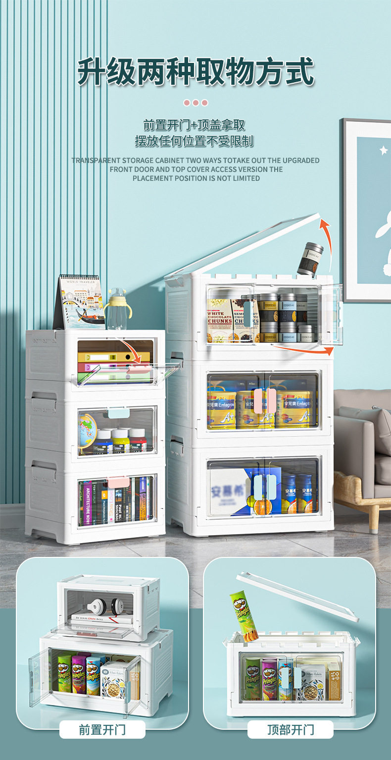 Folding Storage Box Transparent Side Double Door Wheeled Storage Cabinet Household Sundries Toys Snacks Organizing Car Box