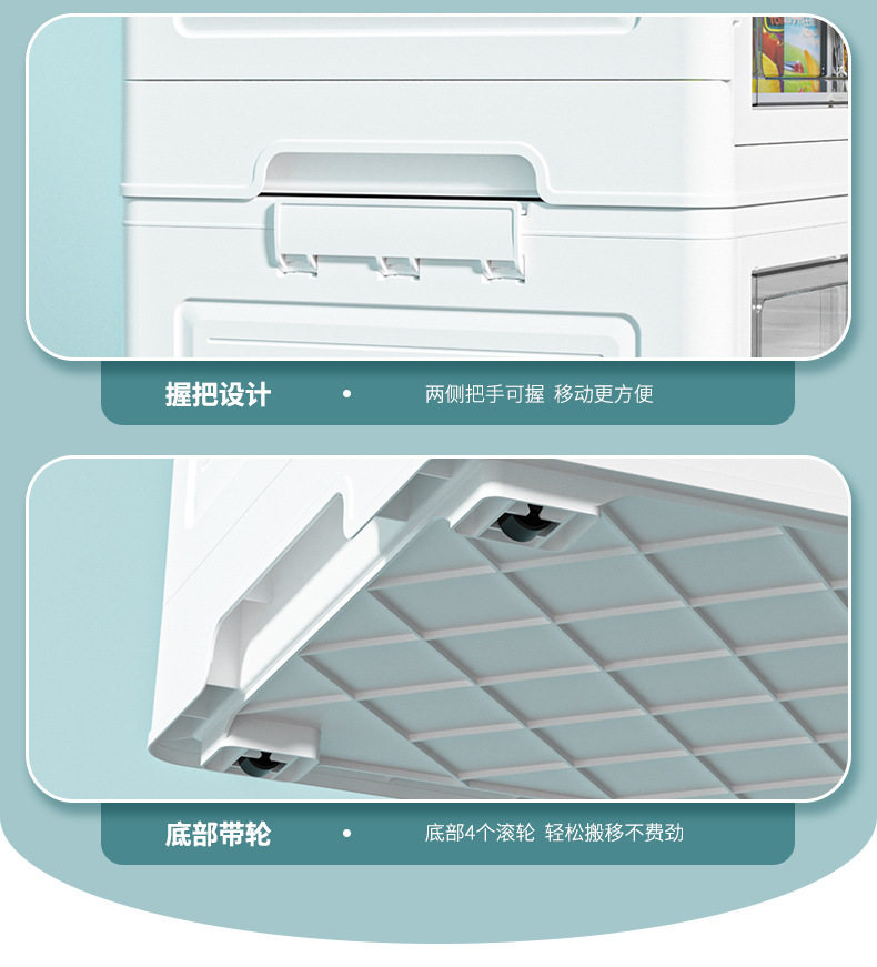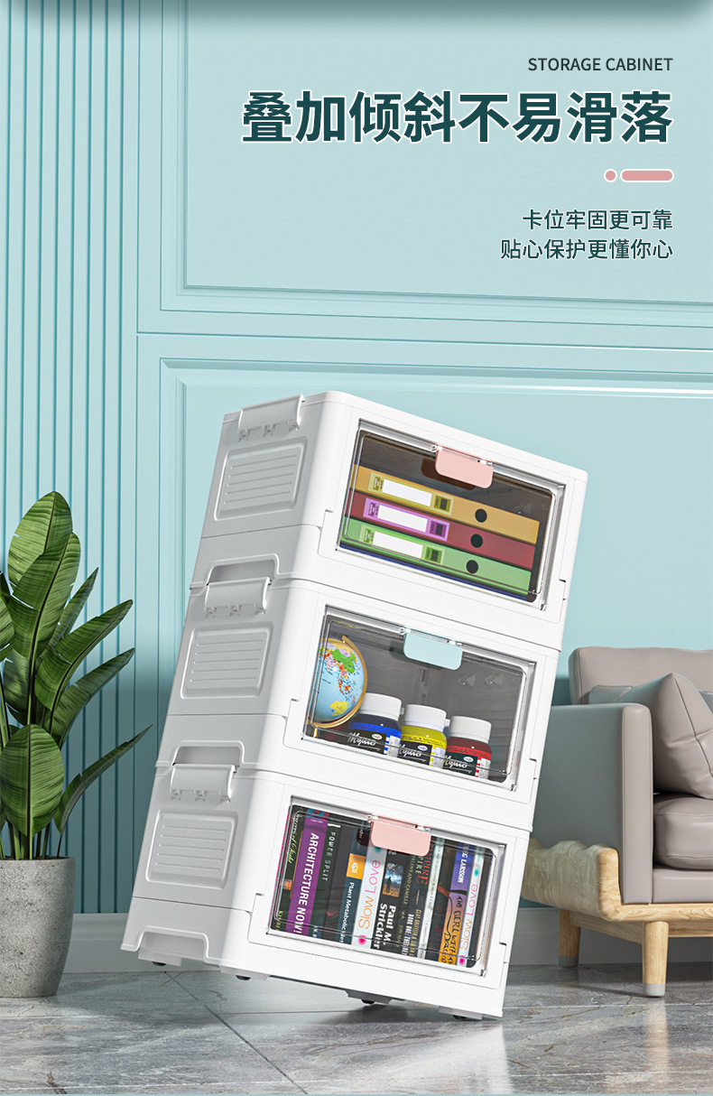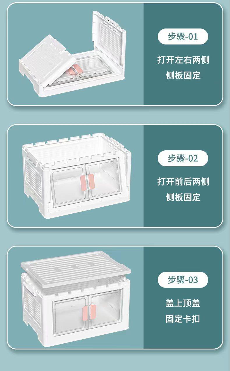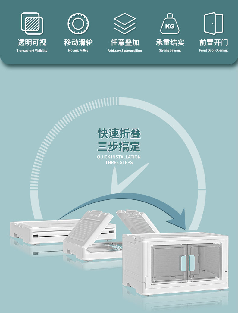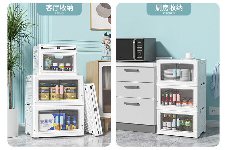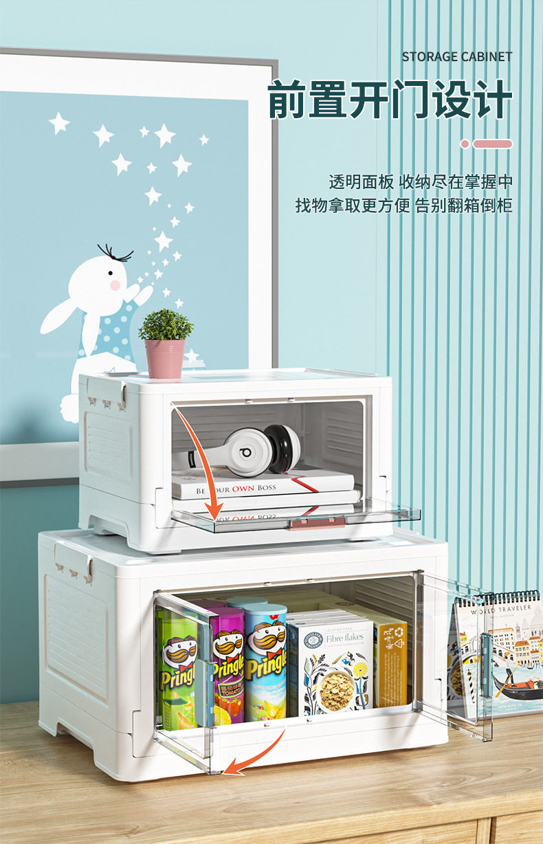 Folding Storage Box Transparent Side Double Door Wheeled Storage Cabinet Household Sundries Toys Snacks Organizing Car Box