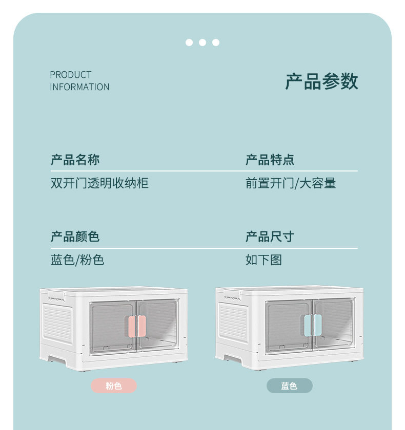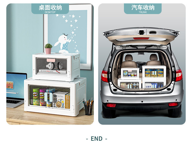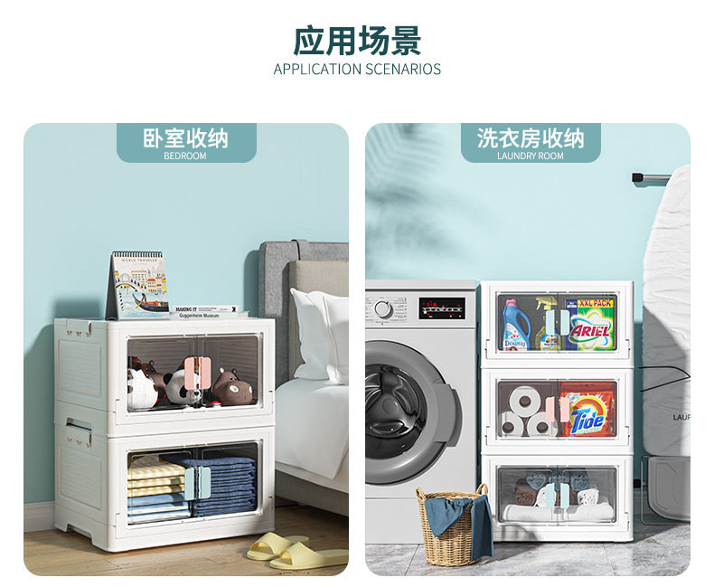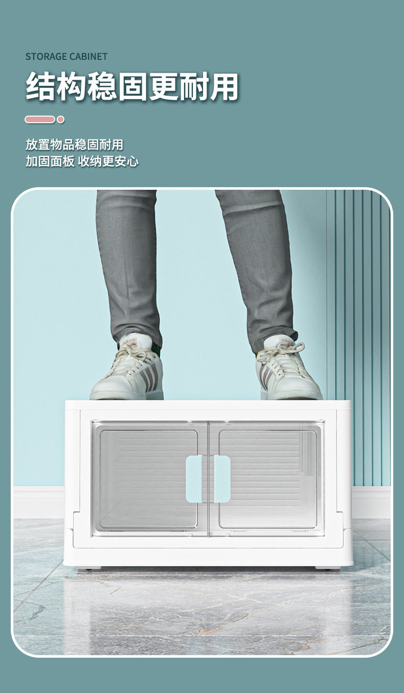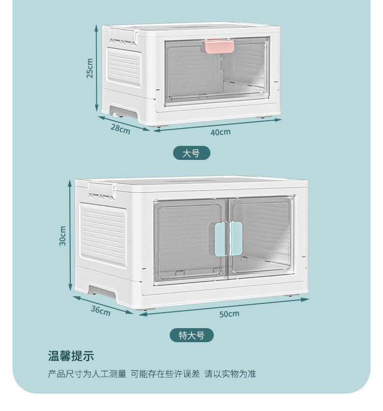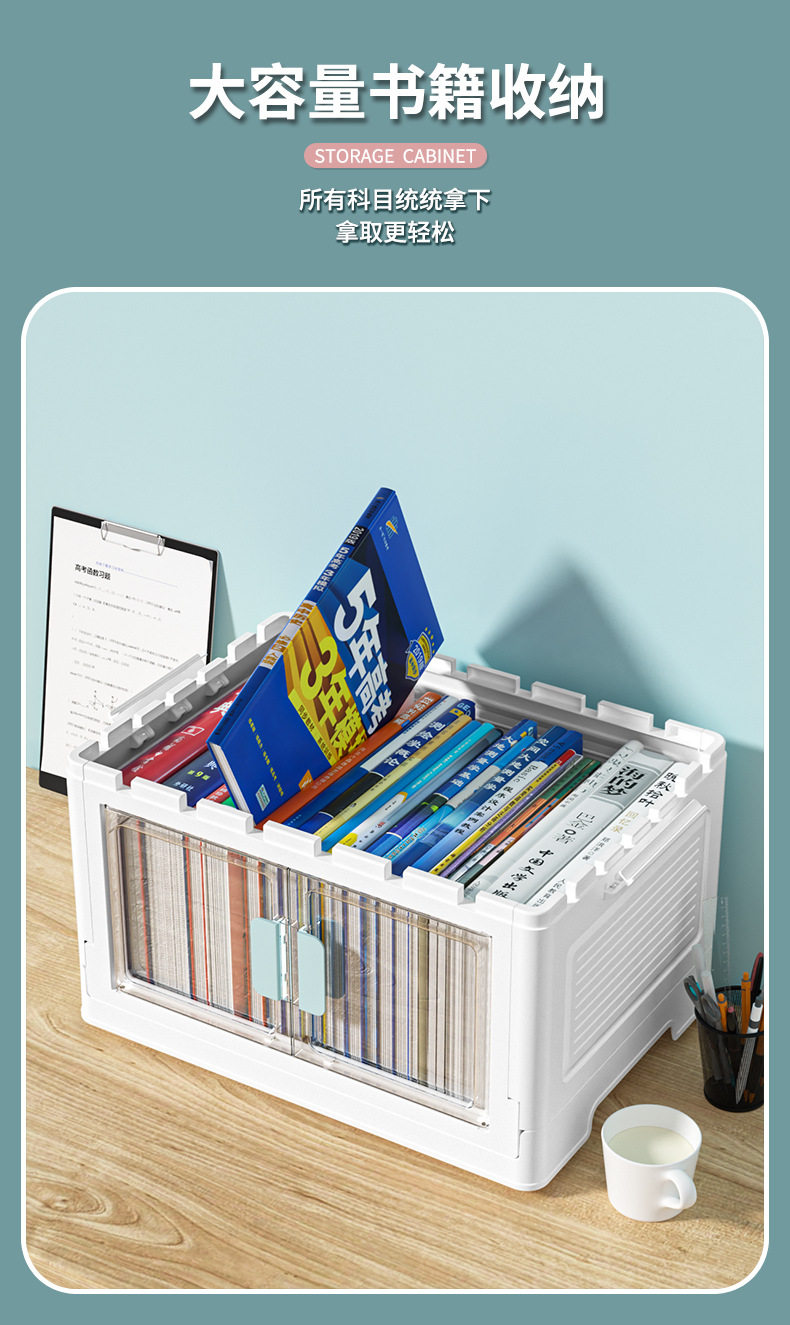 Folding Storage Box Transparent Side Double Door Wheeled Storage Cabinet Household Sundries Toys Snacks Organizing Car Box