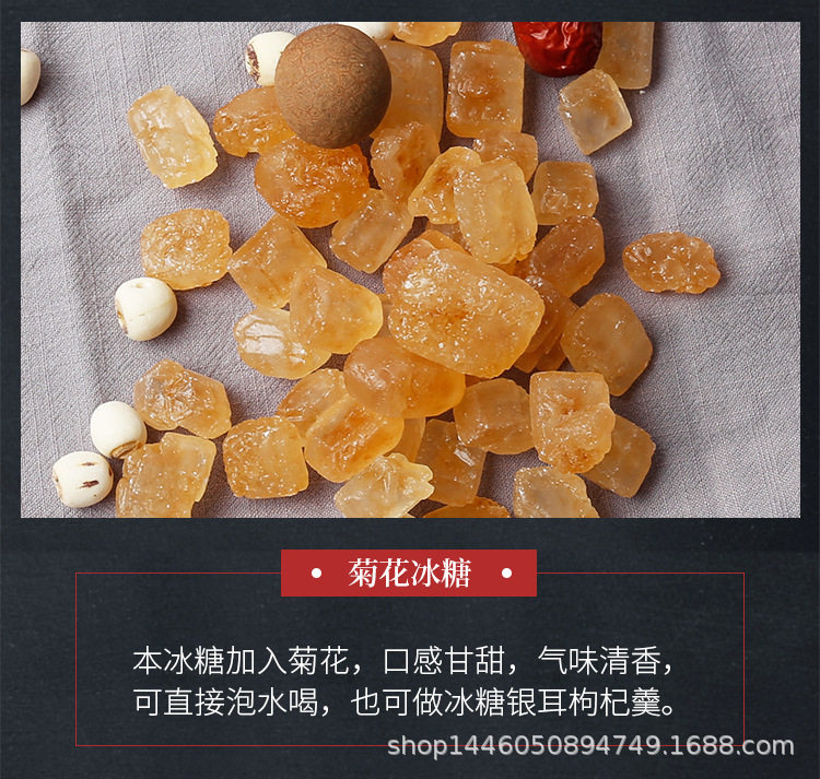 | Packaging specifications | Chrysanthemum rock candy 358g,Pear juice rock sugar 358g,Yellow rock sugar 300g,Yellow rock sugar 300g*3 bags,Yellow rock sugar 300g*5 bags |