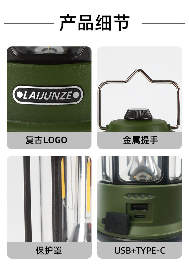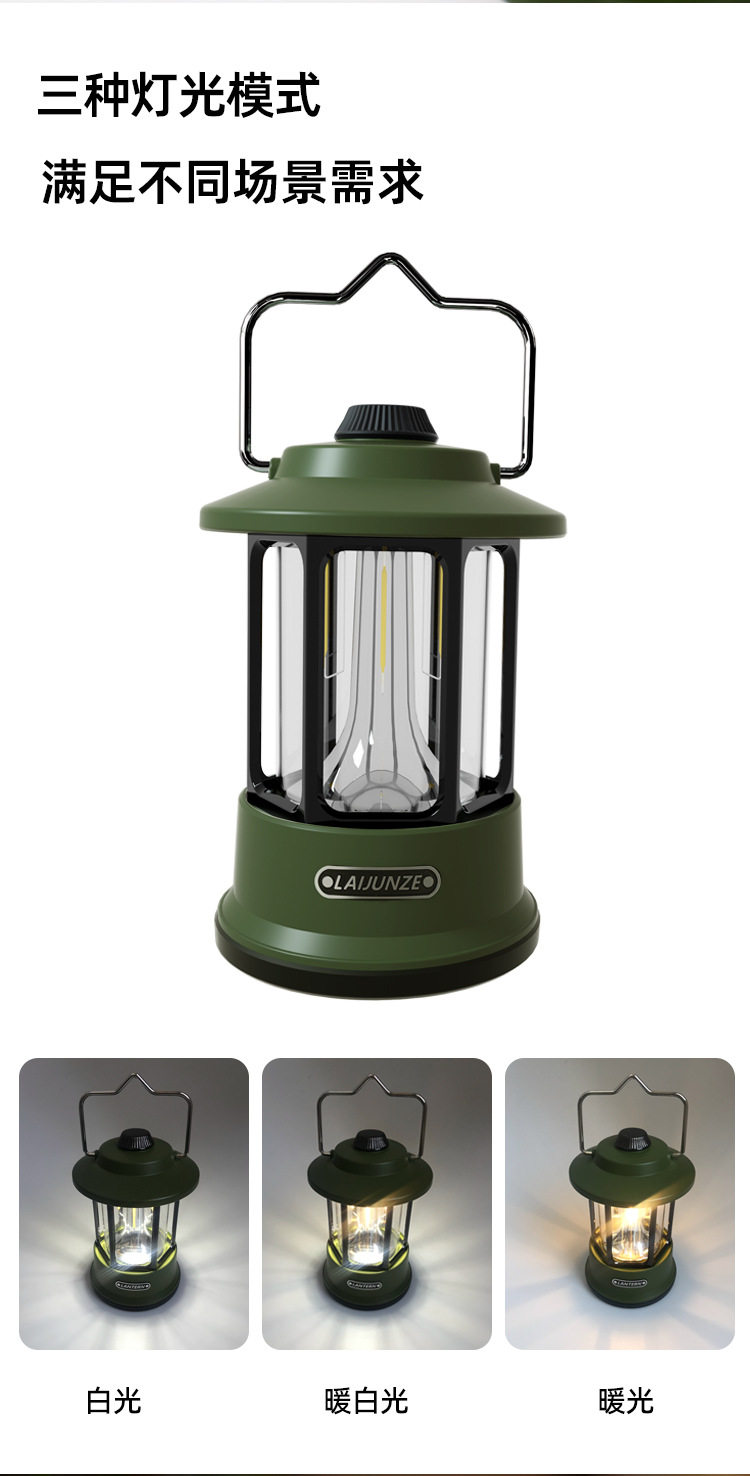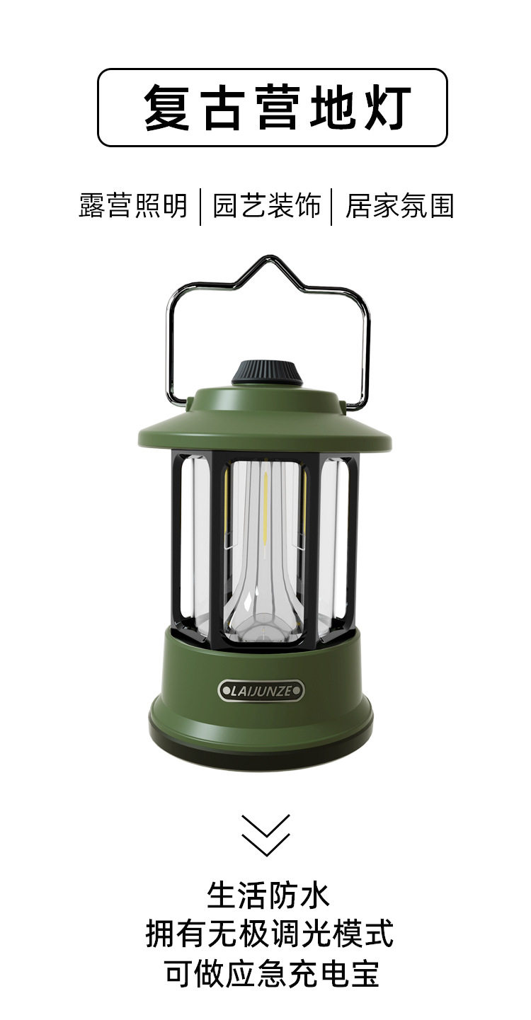 Cross-Border Retro Camping Lamp Portable Lamp Outdoor Camping Retro Lamp Lighting Rechargeable Tent Lamp Camp Lantern