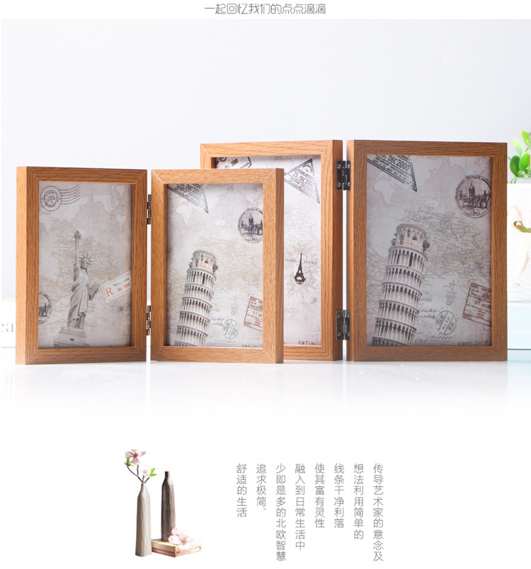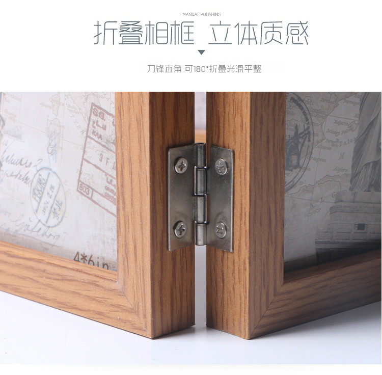 Factory wholesale two folding double-sided photo frame retro combination table 6 inch 7 inch conjoined photo studio photo frame frame ornaments