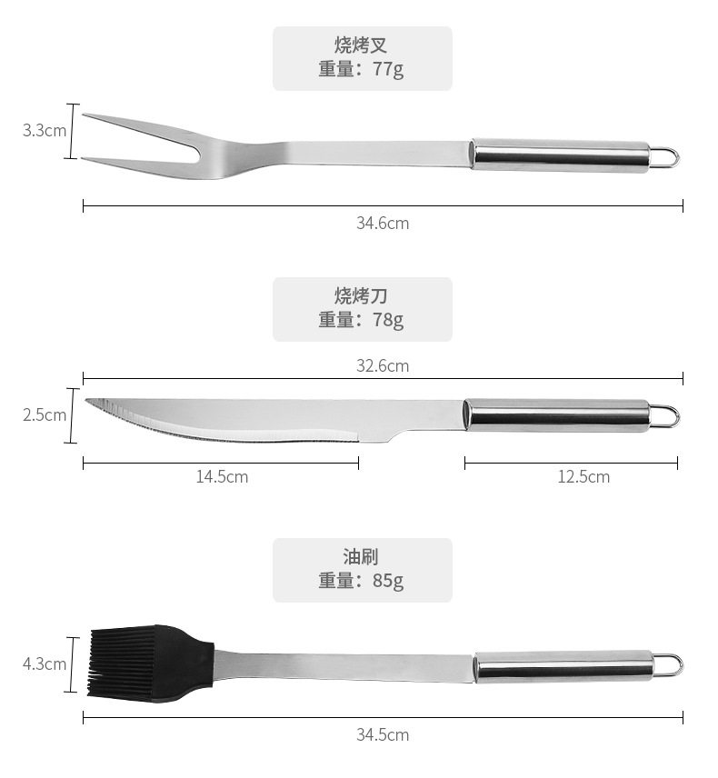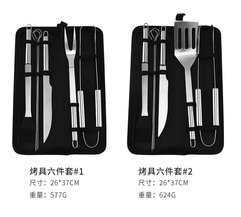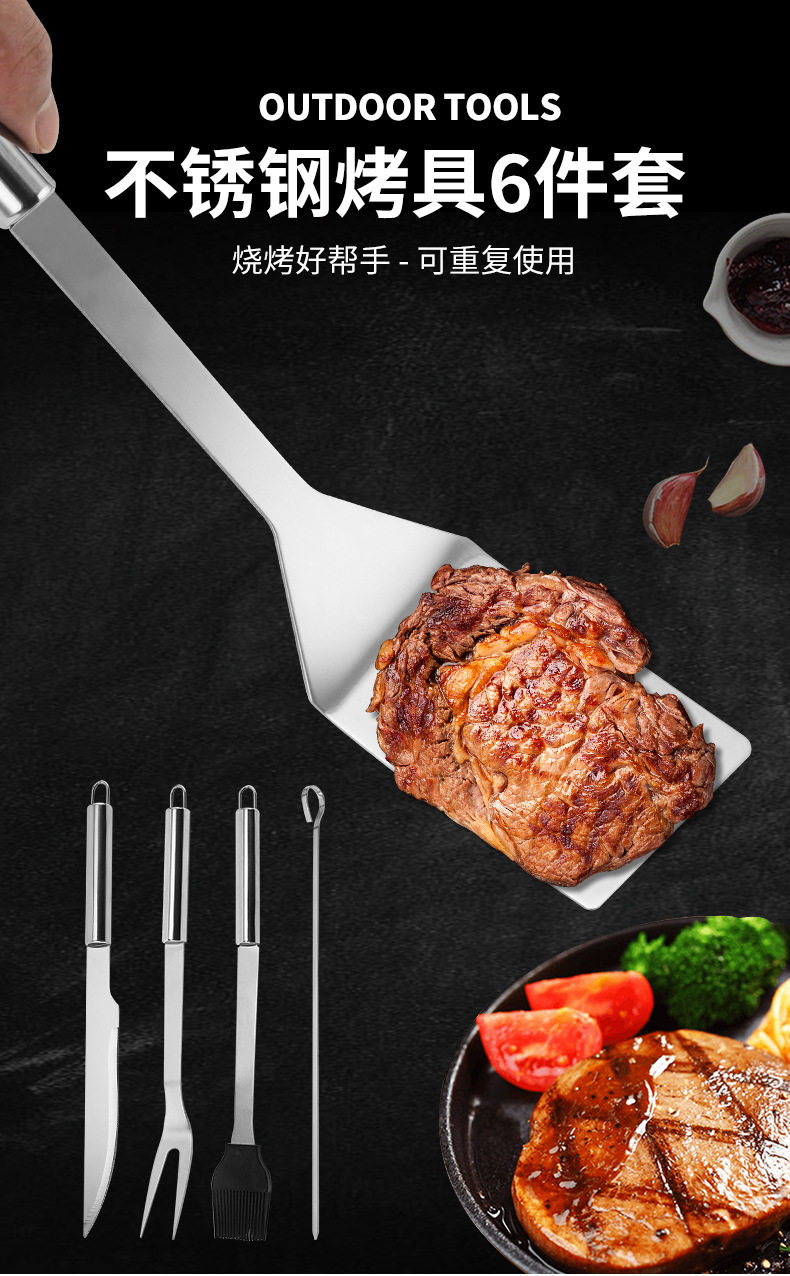 Stainless Steel Grill Bbq Set Portable Bagged Outdoor Barbecue Tool 6-Piece Set Outdoor Portable