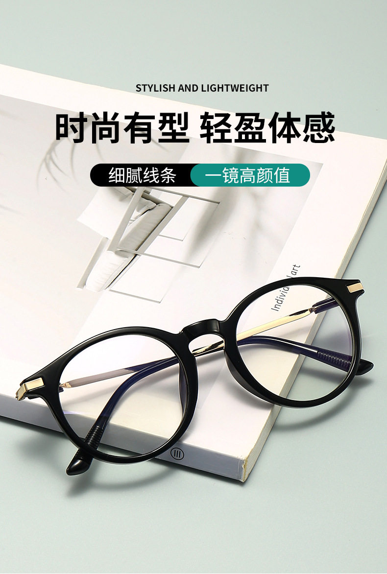 2413 New Myopia Glasses for Men and Women, Korean Style Round Retro Frames, Student Glasses, Finished Prescription Anti-Blue Light Glasses