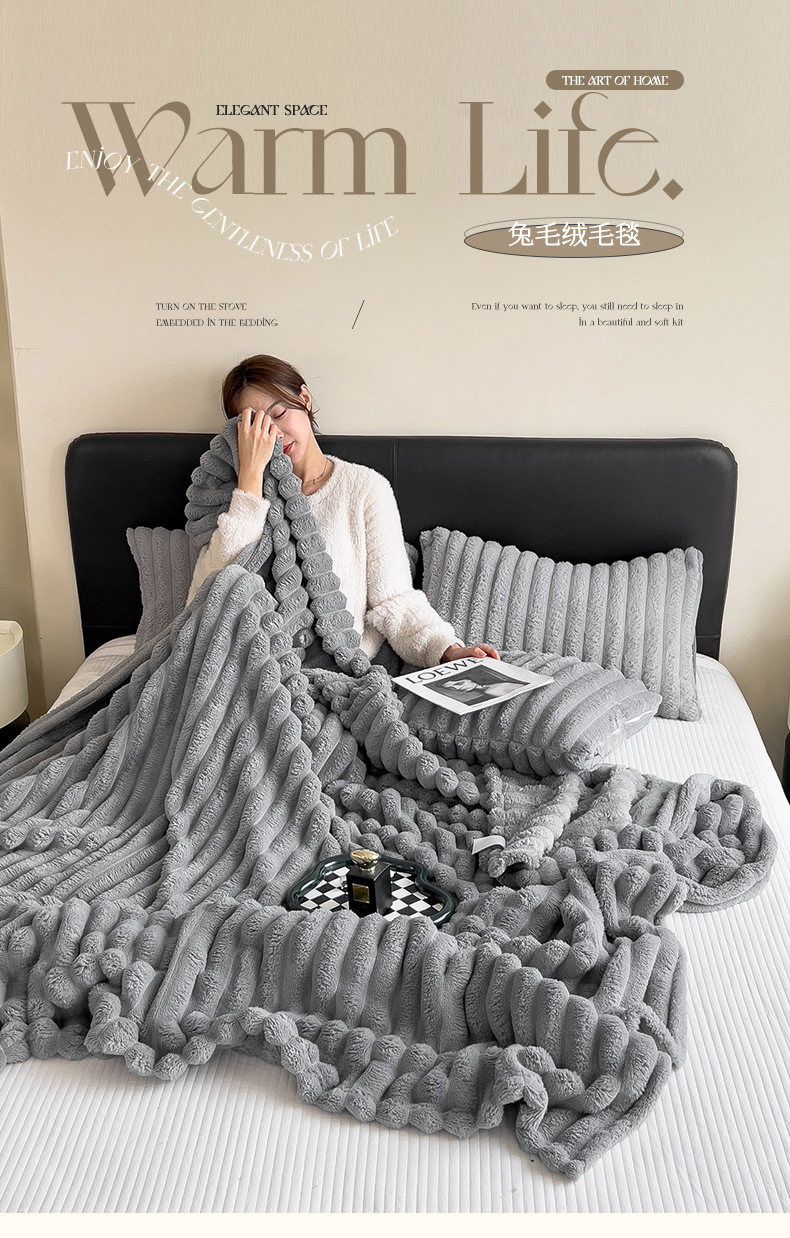 Cross-Border Foreign Trade Popular Rabbit Blanket, Flannel Blanket, Thickened Coral Velvet Blanket, Office Nap Blanket, Air-Conditioning Blanket
