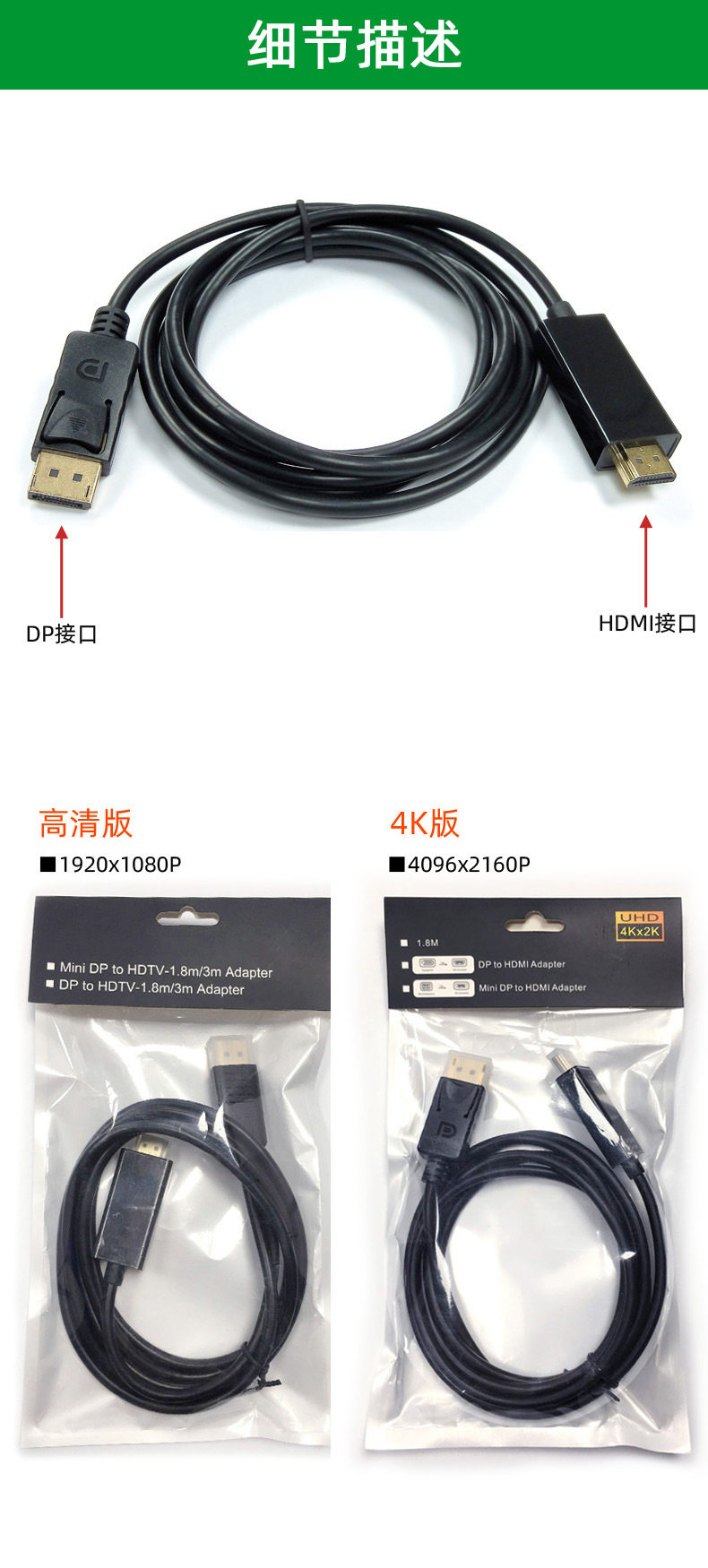| Color | 1.8 m 1080P,1.8 m 4K |