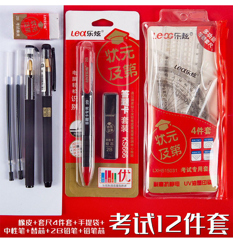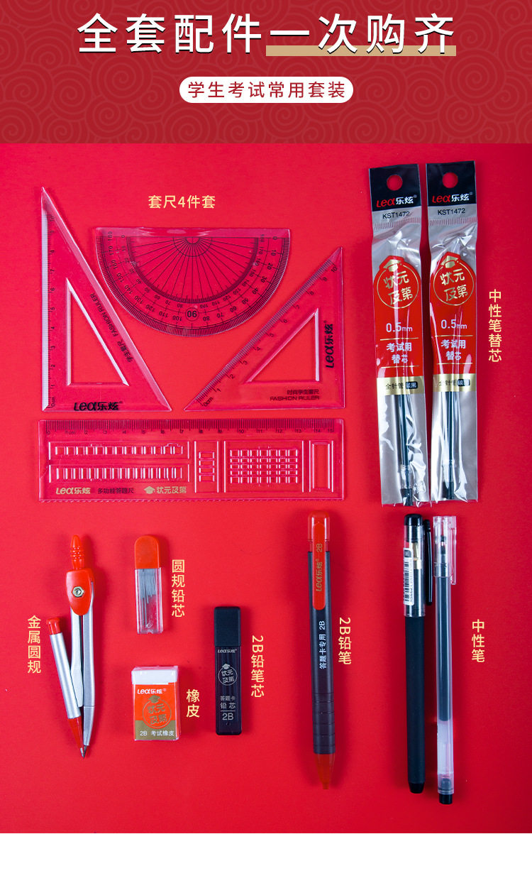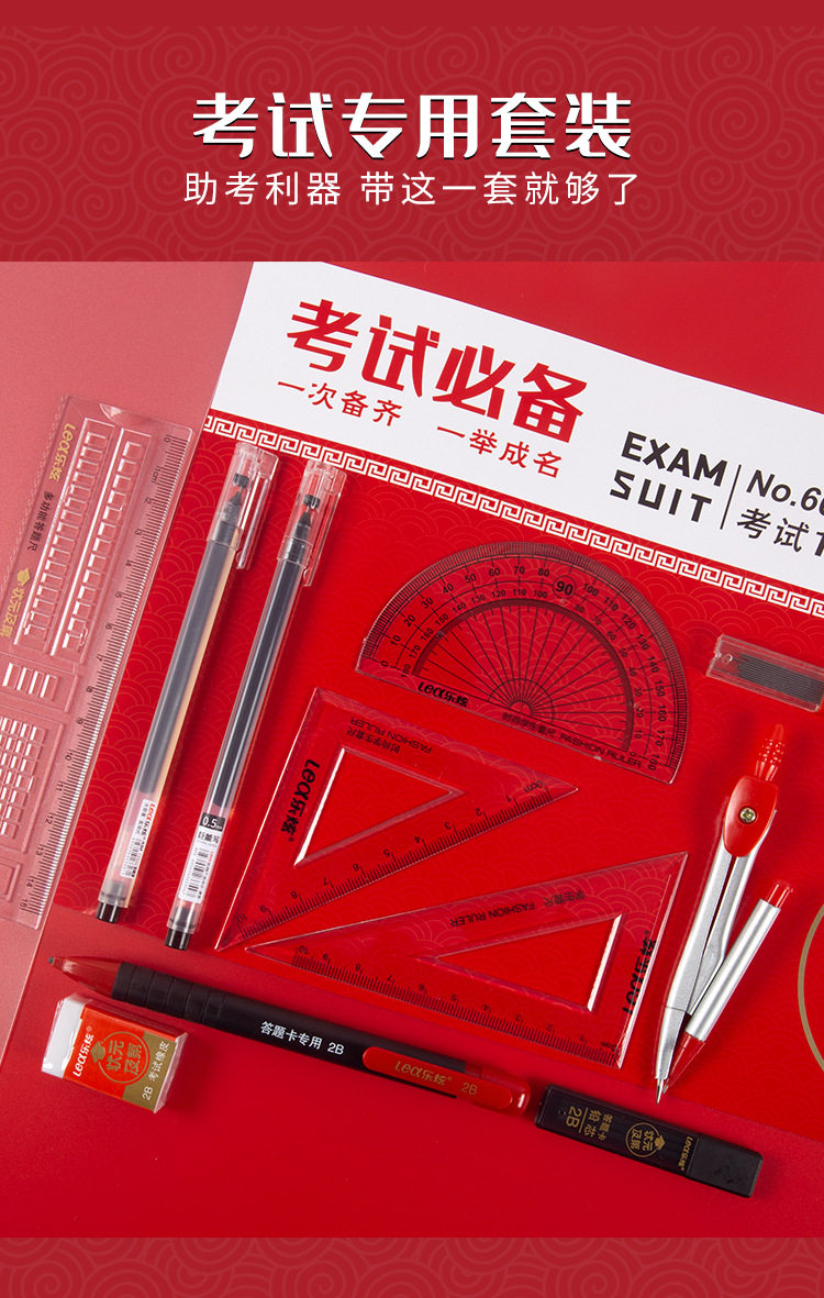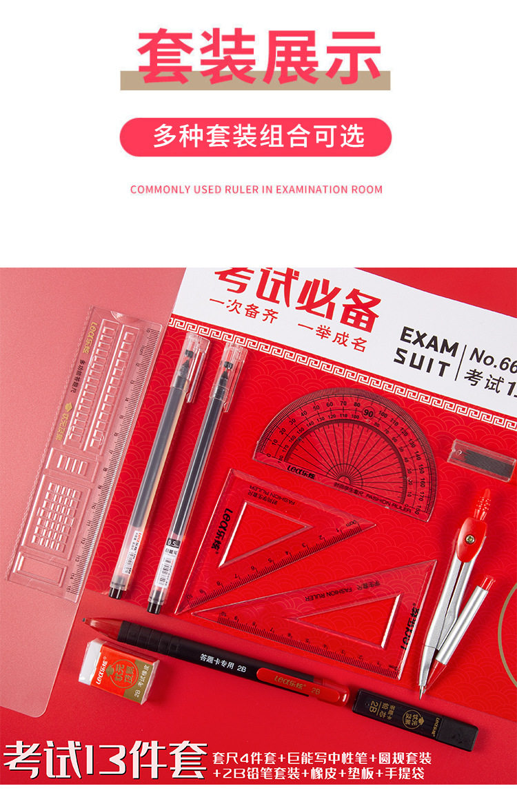 Le Xuan 13 gel pen stationery examination suit wholesale Confucius temple blessing high school entrance examination answer card ruler compasses