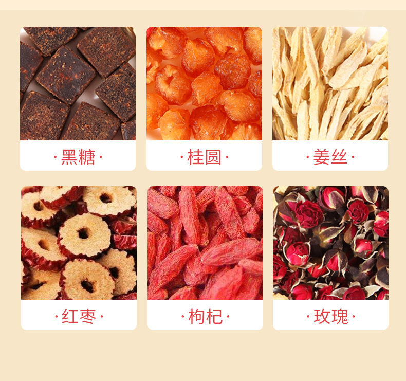Brown Sugar Ginger Jujube Tea, Rose Longan Goji Berry Combination Herbal Tea for Women, Qi and Blood Ginger Jujube Tea, Brown Sugar Ginger Tea