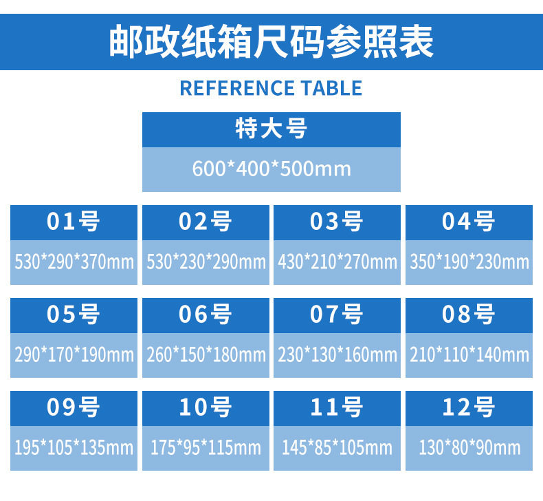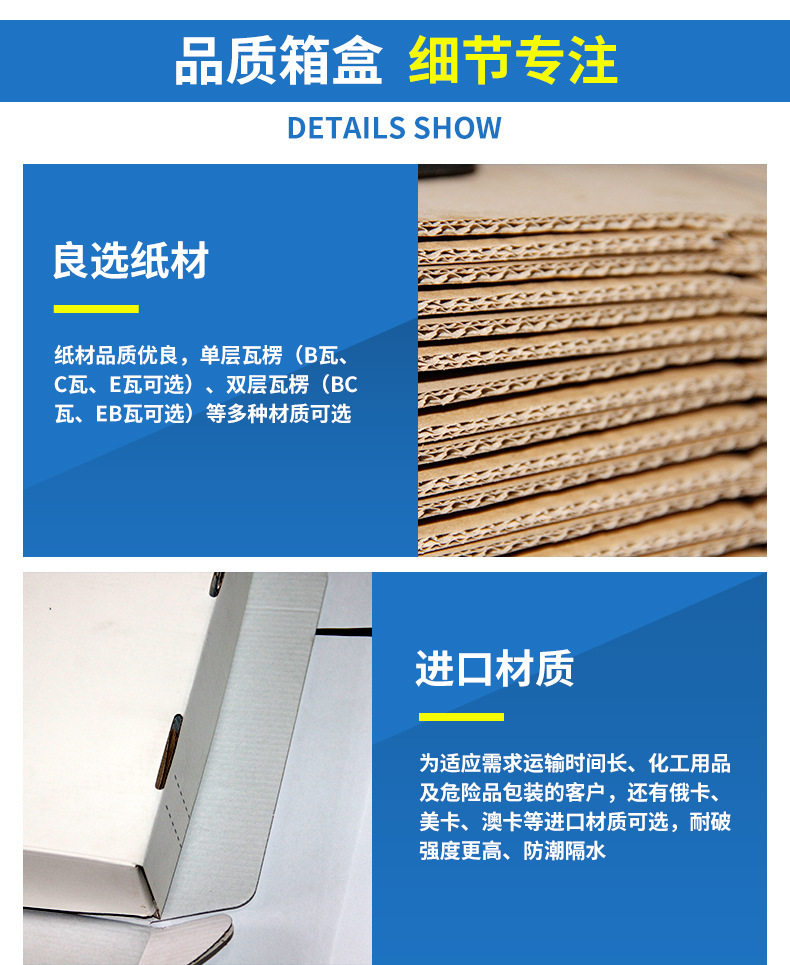 | Specification model | 1#: 53*29*37cm; three layers of extra hard,1#: 53*29*37cm; five layers of extra hard,2#: 53*23*29cm; three layers of extra hard,2#: 53*23*29cm; five layers of extra hard,3#: 43*21*27cm; three layers of extra hard,3#:43*21*27cm; five layers of extra hard,4#:35*19*23cm; three layers of extra hard,4#:35*19*23cm; five layers of extra hard,5#:29*17*19cm; three layers of extra hard,5#:29*17*19cm; five layers of extra hard,6#: 26*15*18cm; three layers of extra hard,6#: 26*15*18cm; five layers of extra hard,7#: 23*13*16cm; three layers of extra hard,7#: 23*13*16cm; five layers of extra hard,8#:21*11*14cm; three layers of extra hard,8#:21*11*14cm; five layers of extra hard,9 # :19.5*10.5*13.5cm; three layers of extra hard,9#:19.5*10.5*13.5cm; five layers of extra hard,10#: 17.5*9.5*11.5cm; three layers of extra hard,10#: 17.5*9.5*11.5cm; five layers of extra hard,11#: 14.5*8.5*10.5cm; three layers of extra hard,11#: 14.5*8.5*10.5cm; five layers of extra hard,12#: 13*8*9cm; three layers of extra hard,12#: 13*8*9cm; five layers of extra hard,0#extra large size 60*40*50cm; three layers of extra hard,0#extra large size 60*40*50cm; five layers of extra hard,Consult customer service for customization13575735737;three layers of extra hard,Consult customer service for customization13575735737;five layers of extra hard,50*40*40cm; three layers of extra hard,50*40*40cm; five layers of extra hard,40*30*30; three layers of extra hard,40*30*30; five layers of extra hard |