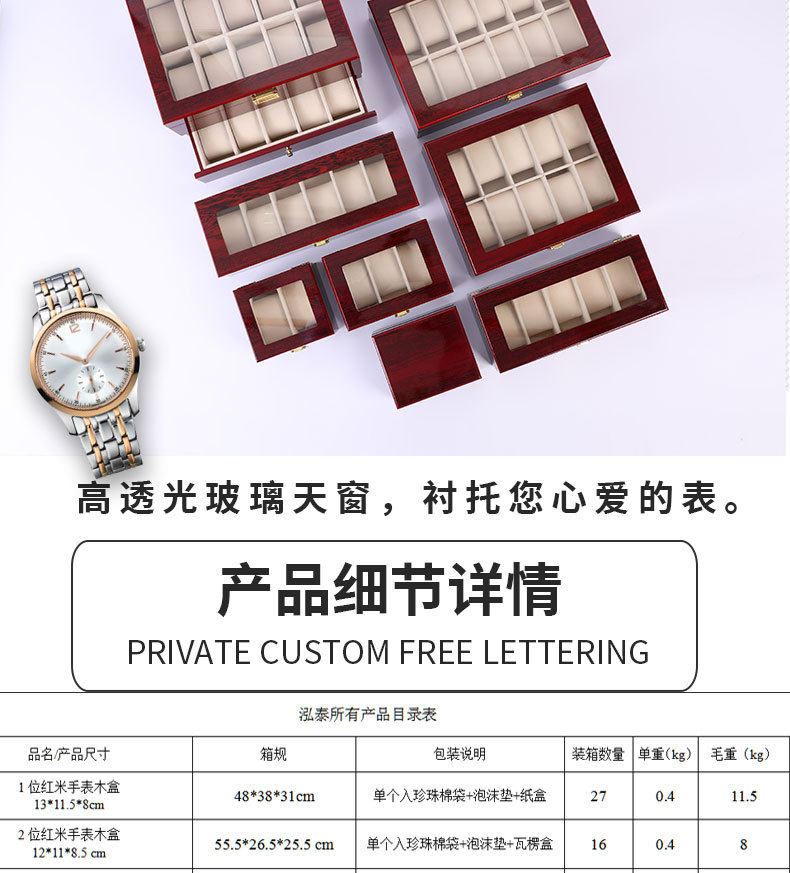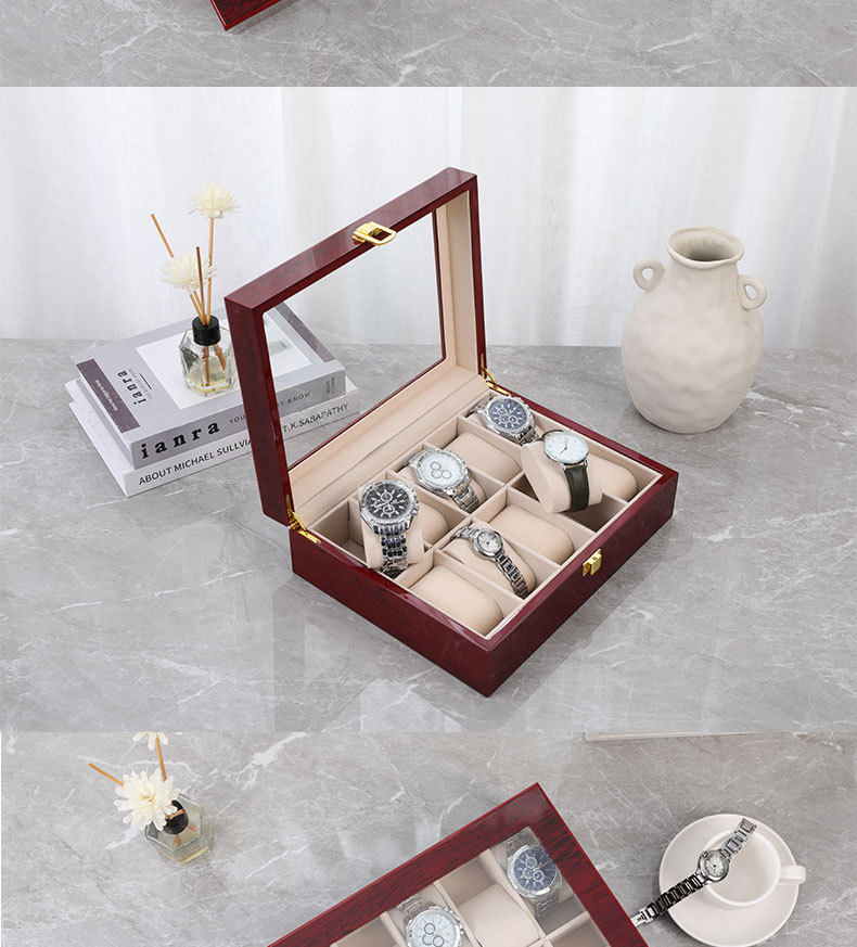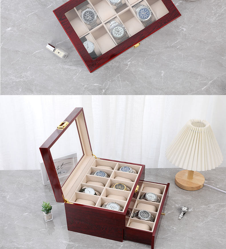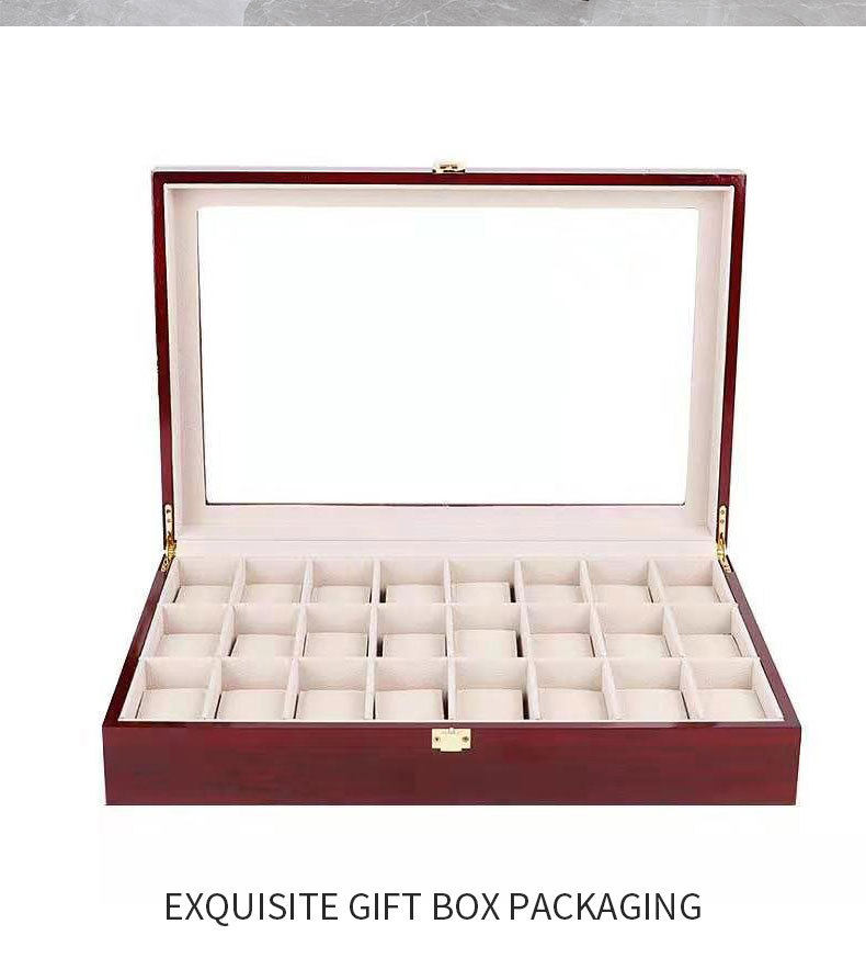 Guangdong Factory 24-Slot Red Lacquered Wooden Watch Box with Multiple Window Openings for Storage and Display, Gift Box, Watch Case, Export Special