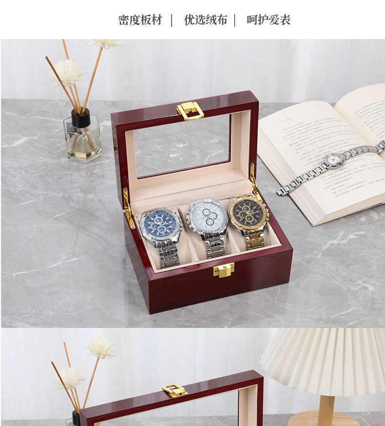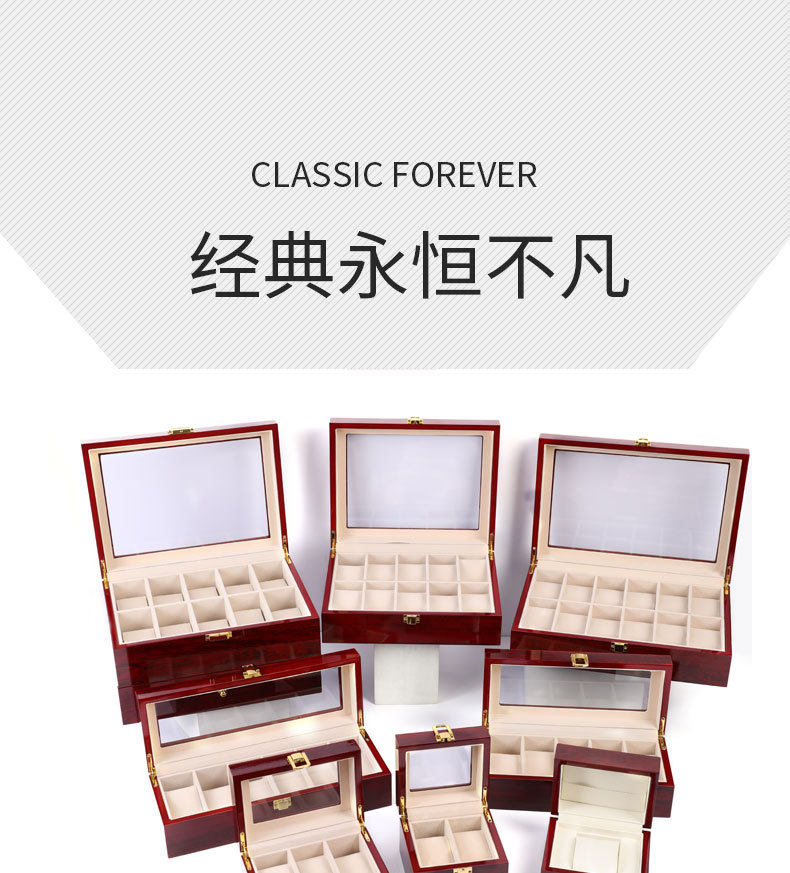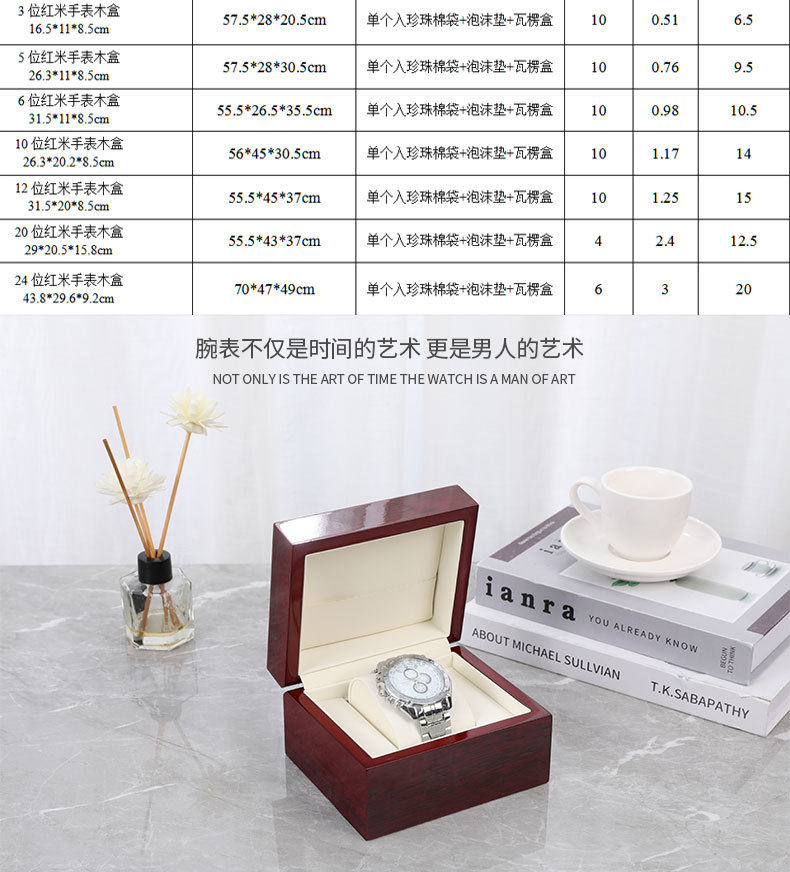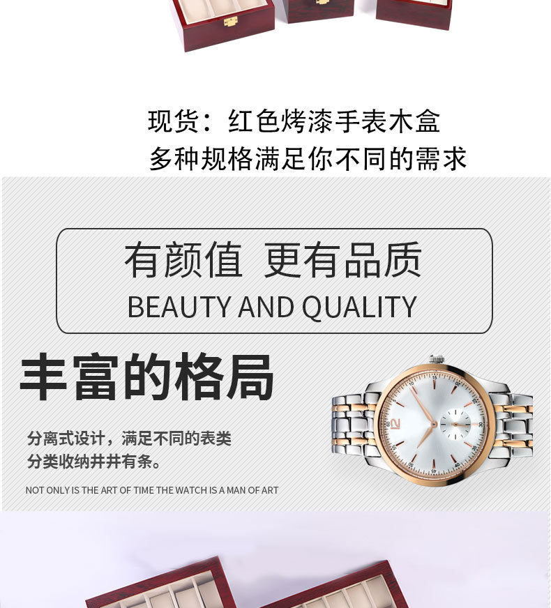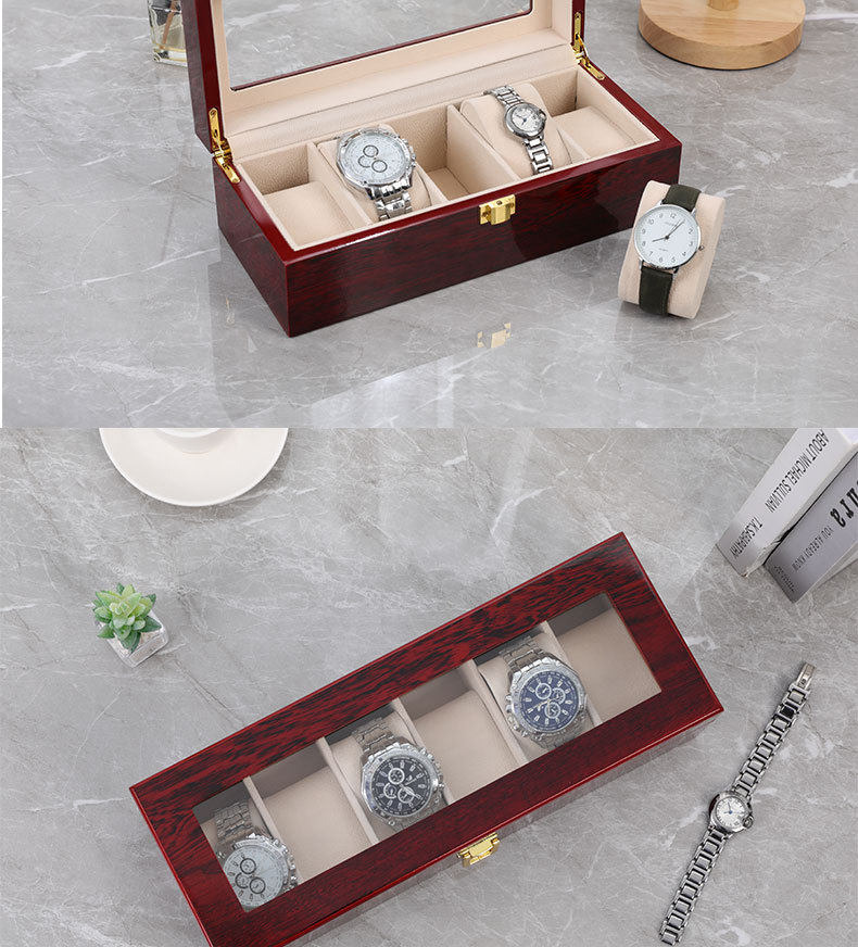 Guangdong Factory 24-Slot Red Lacquered Wooden Watch Box with Multiple Window Openings for Storage and Display, Gift Box, Watch Case, Export Special