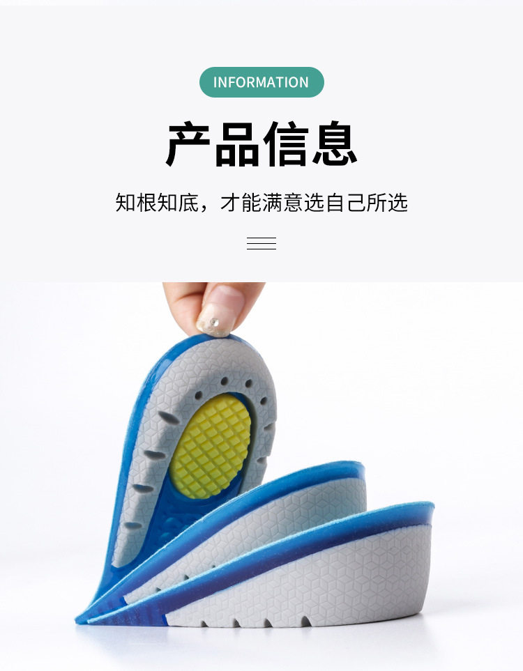 TPE heightening half cushion men's and women's soft and comfortable sports invisible honeycomb elastic not tired foot heightening insole