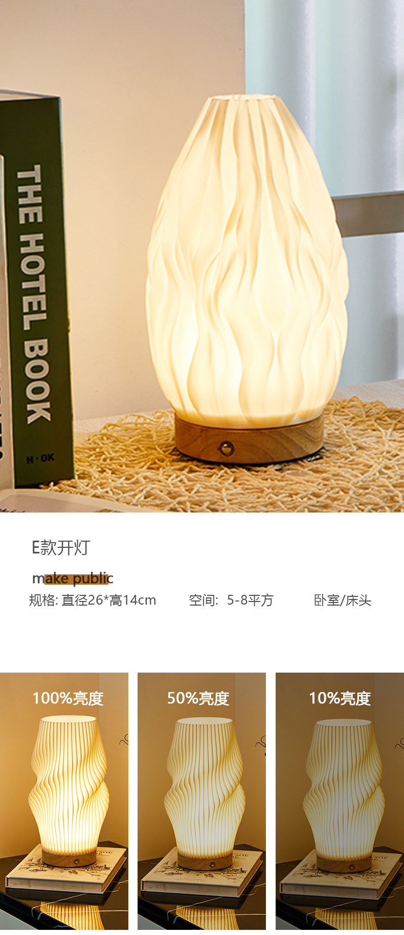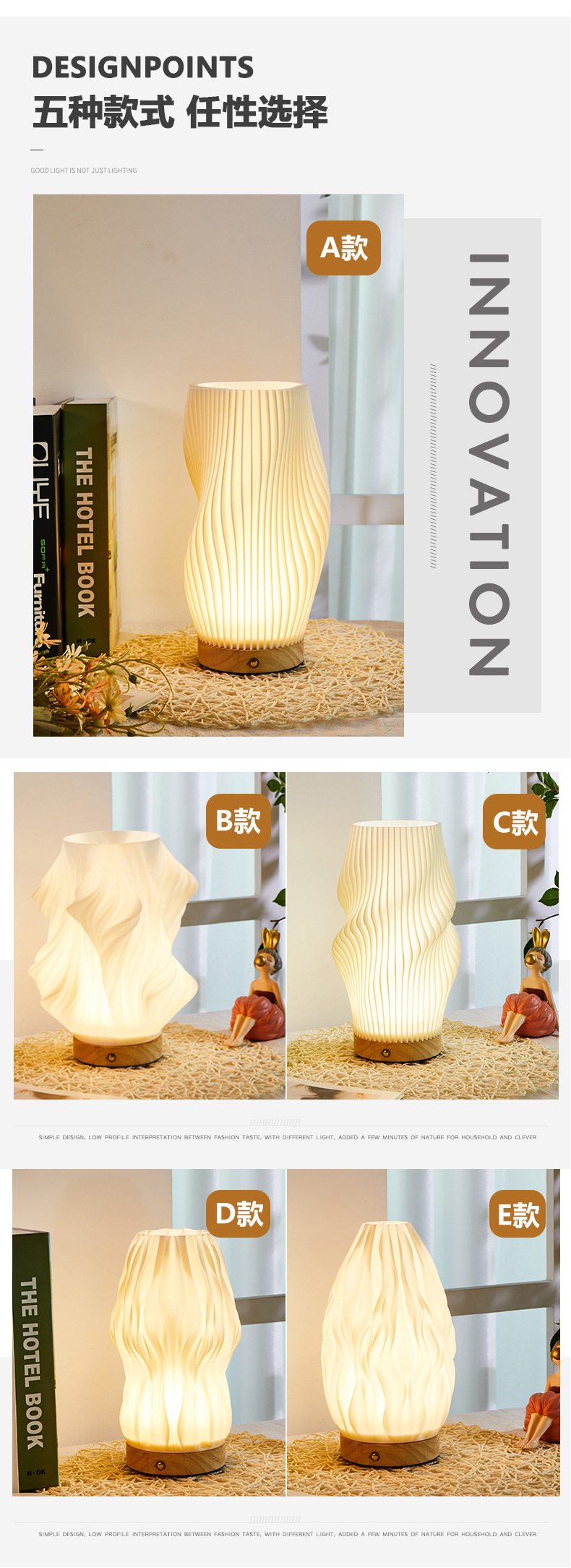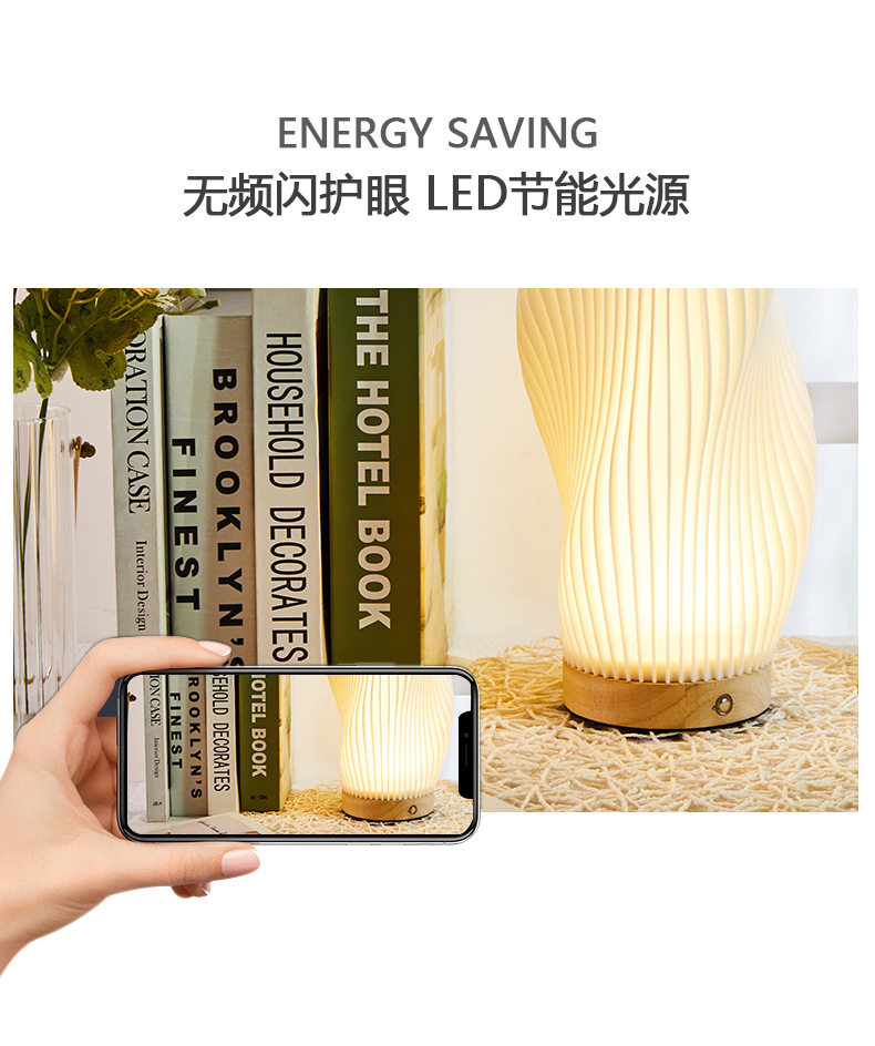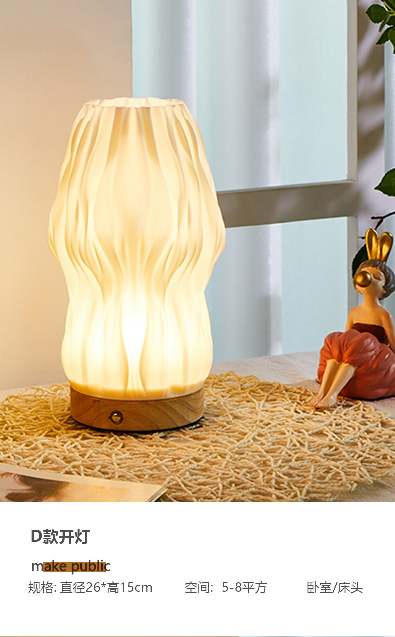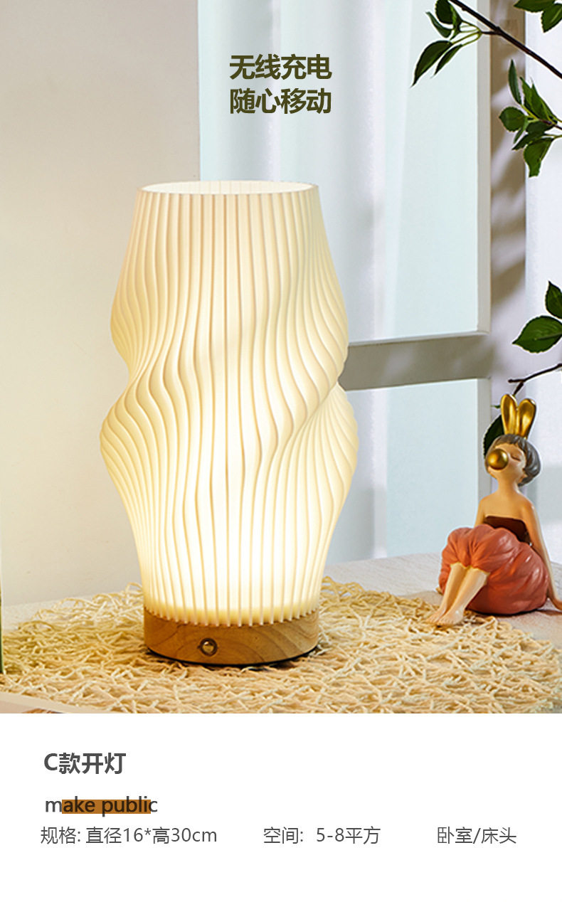 Cross-Border Scandinavian Decorative Solid Wood Rechargeable Table Lamp 3D Creative Bedside Wireless Atmosphere Lamp Ornaments Living Room Bedroom Night Light