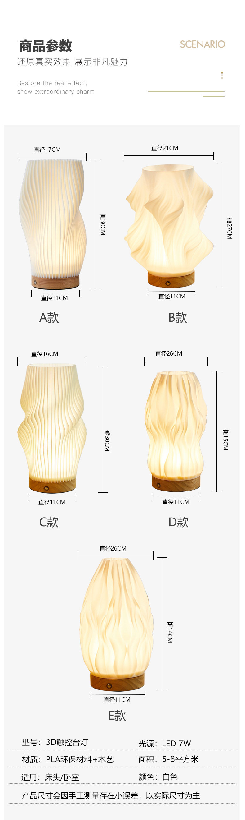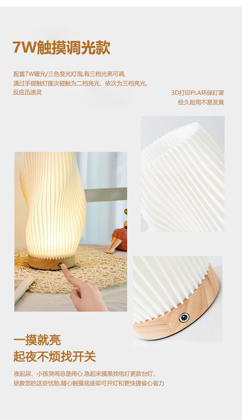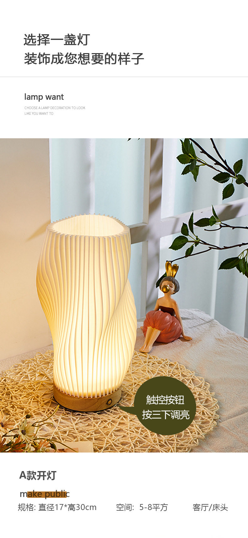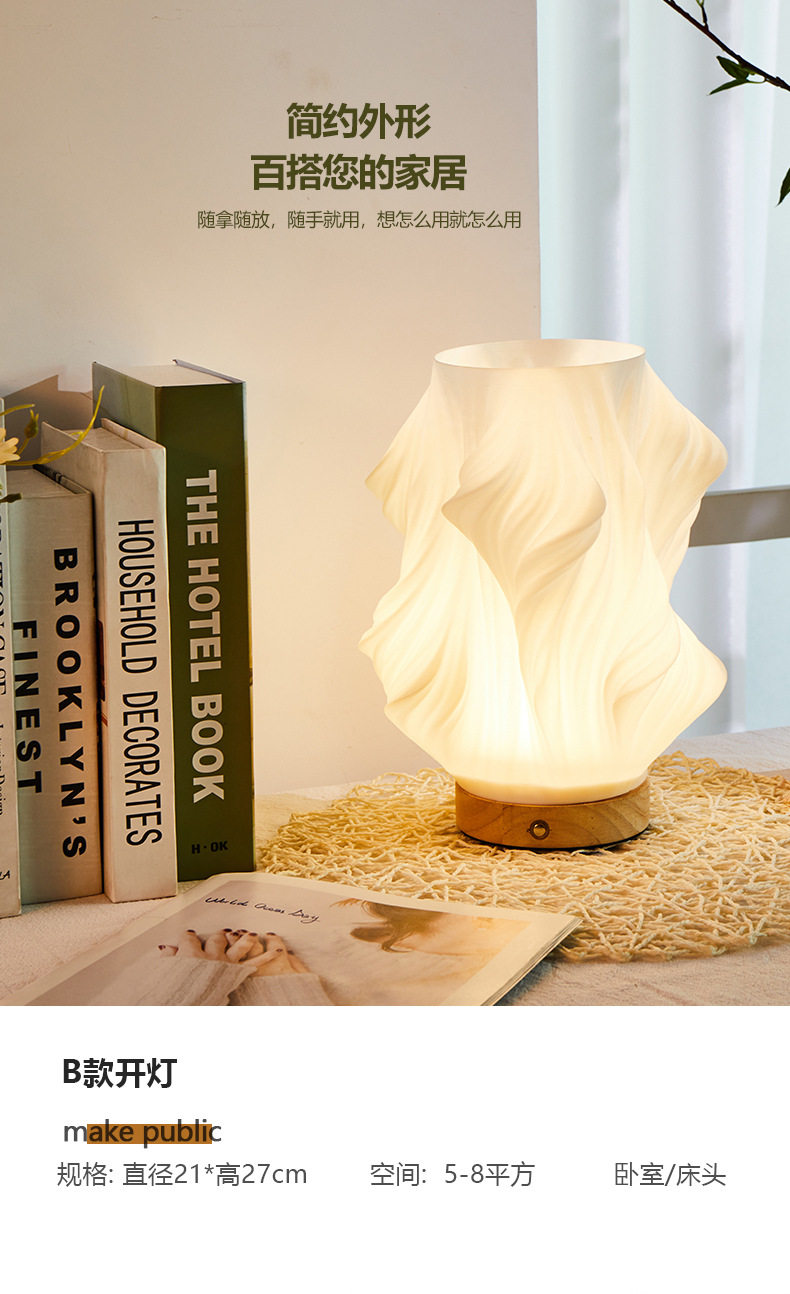 Cross-Border Scandinavian Decorative Solid Wood Rechargeable Table Lamp 3D Creative Bedside Wireless Atmosphere Lamp Ornaments Living Room Bedroom Night Light