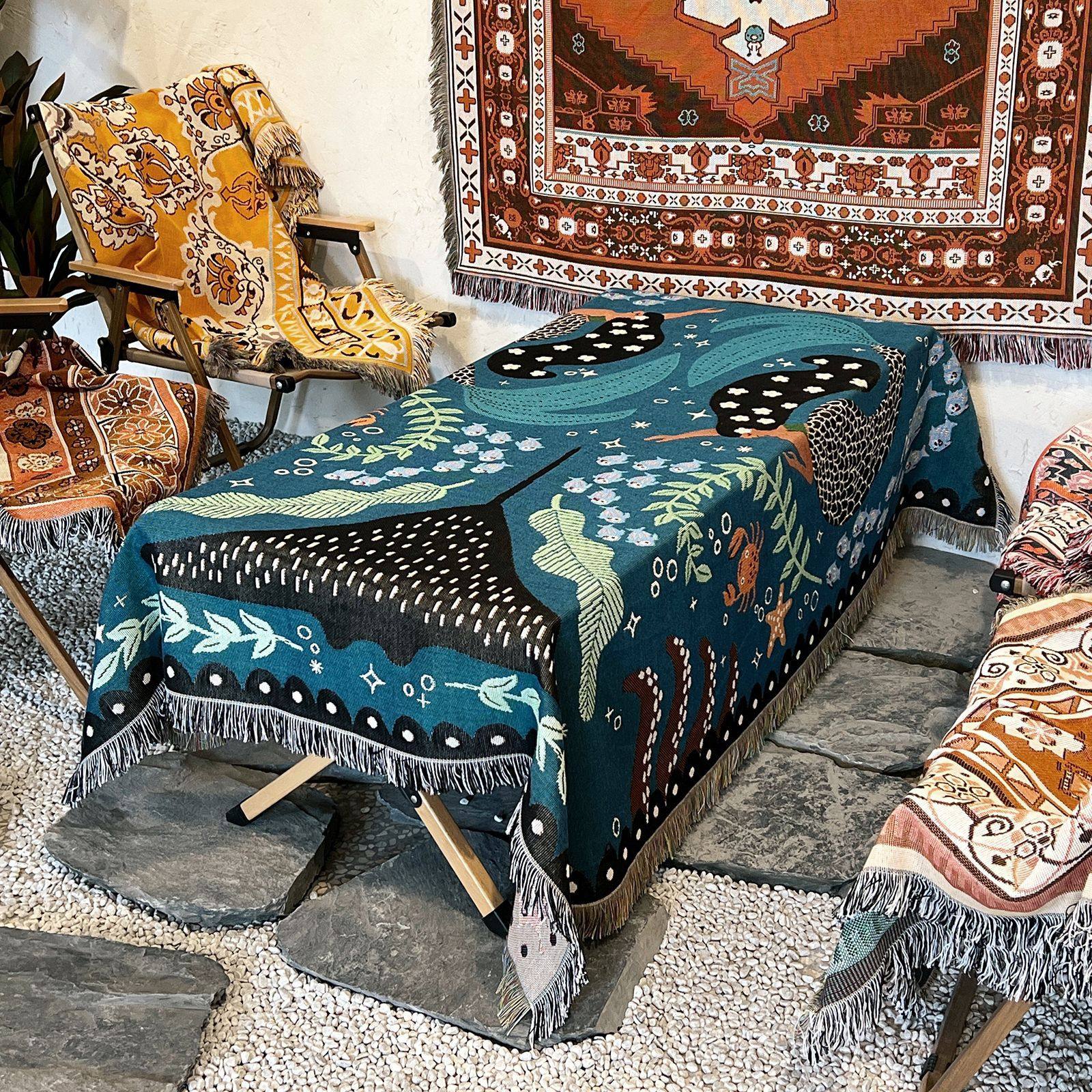 Camping Blanket Outdoor Blanket picnic blanket Sofa Blanket Line Blanket Nap Blanket Bohemian Indian Blanket