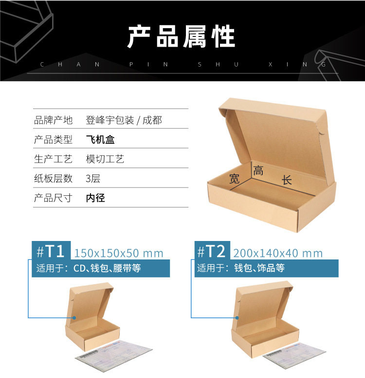 Chengdu factory wholesale aircraft box express box small rectangular packaging packaging carton t2 color flat carton