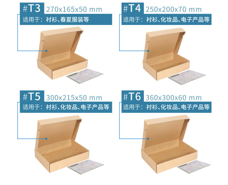 | Specifications and models | T1 (150*150*50mm); three layers of super hard (e corrugated),T2 (200*140*40mm); three layers of super hard (e corrugated),T3 (270*165*50mm); three layers of super hard (e corrugated),T4 (250*200*70mm); three layers of super hard (e corrugated),T5 (300*215*50mm); three layers of super hard (e corrugated),T6 (360*300*60mm); three layers of super hard (e corrugated) |