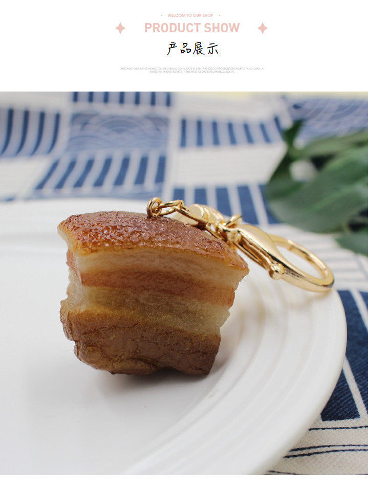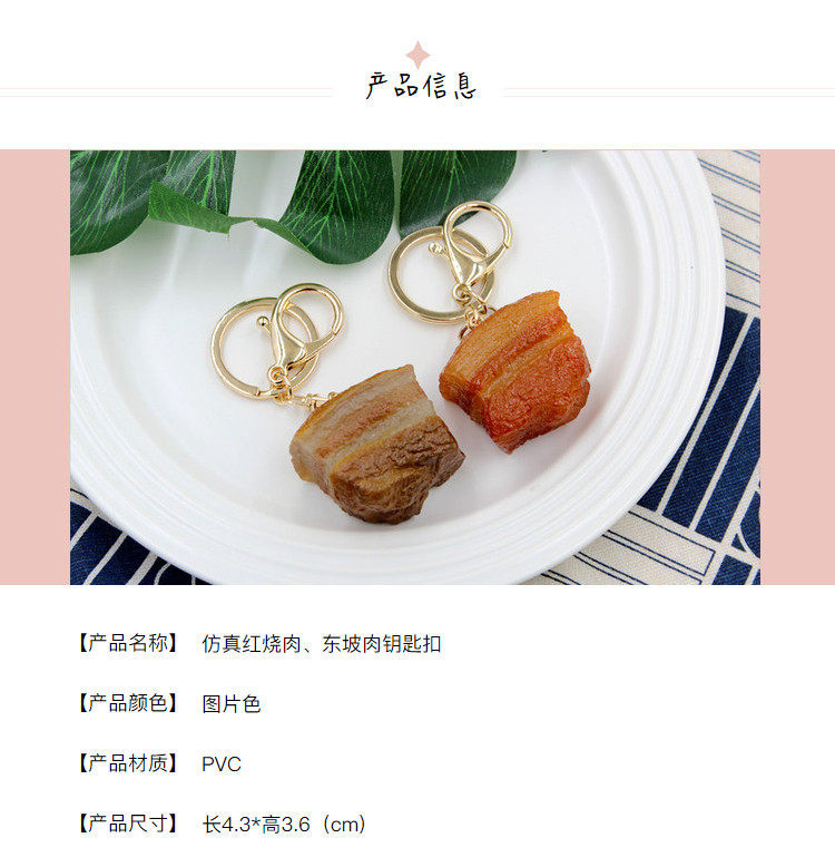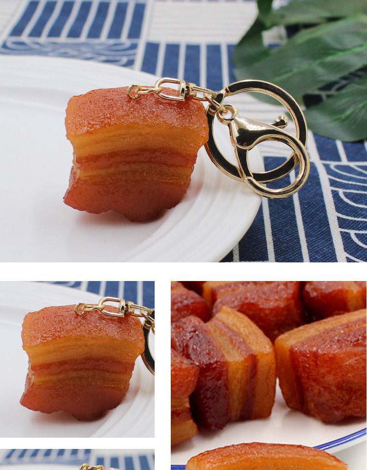 Student Day Creative Personality Simulation Broced Pork Keychain Gift Dongpo Pendant Food Bag Bag Key Hanging Ornaments