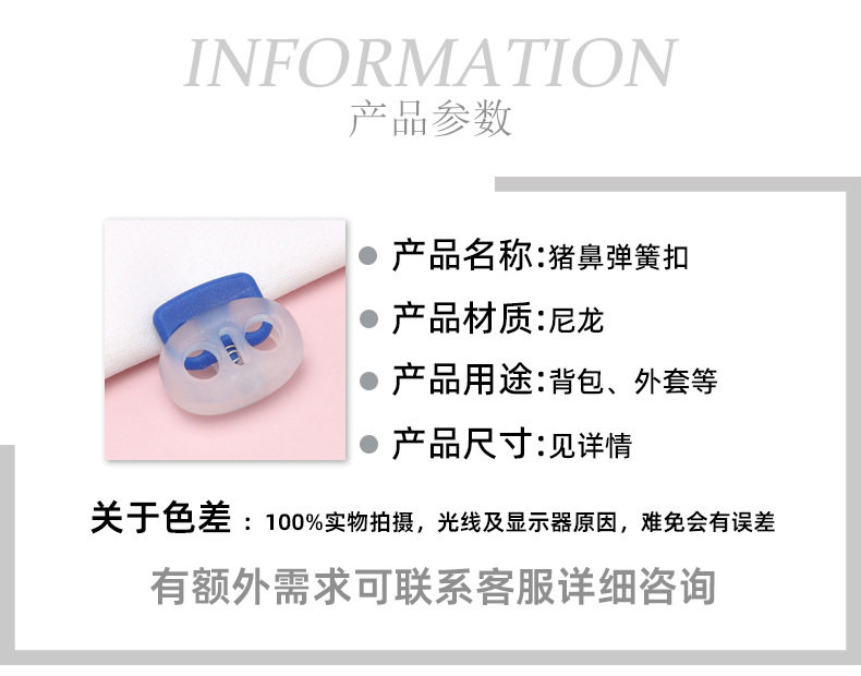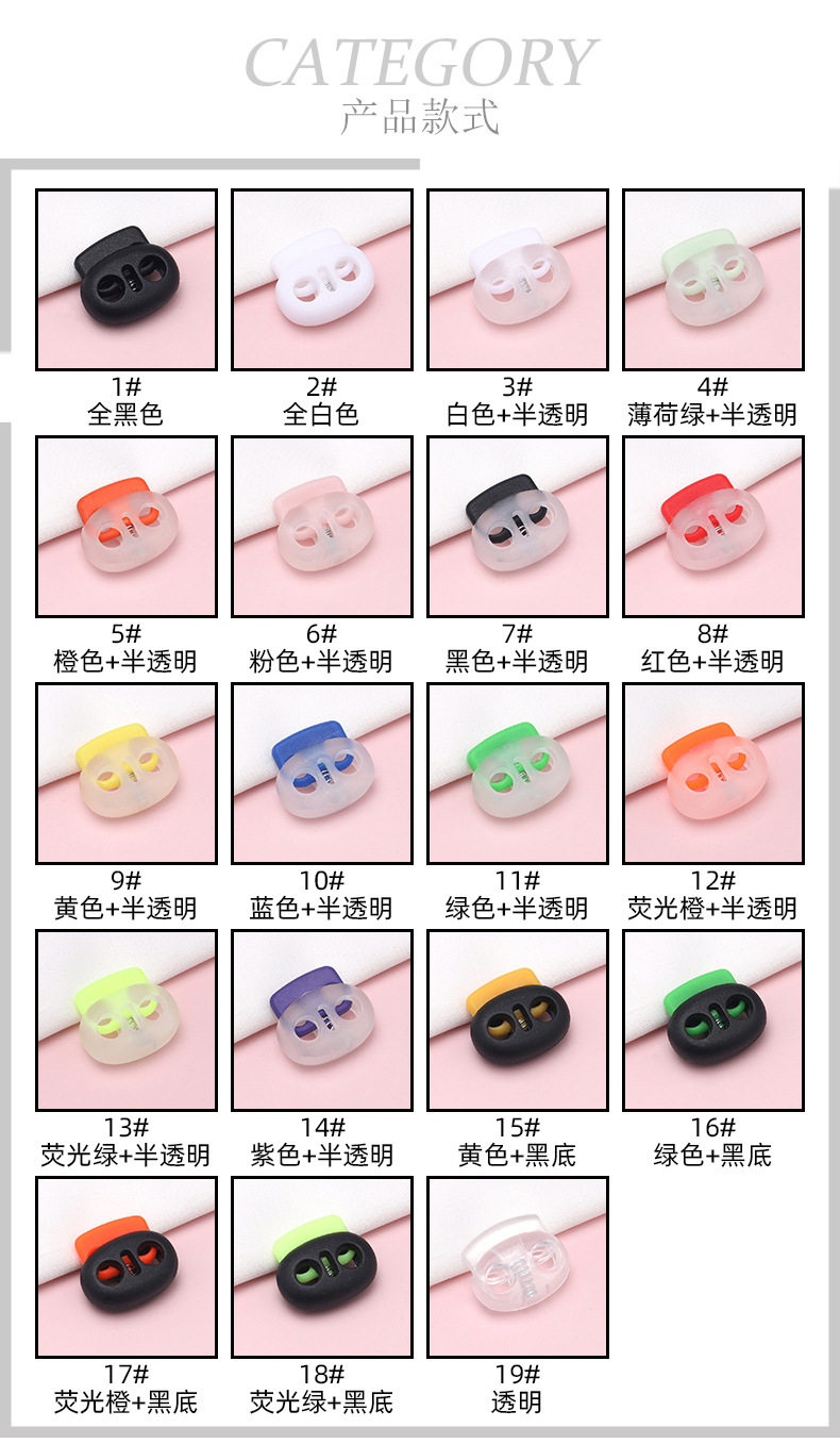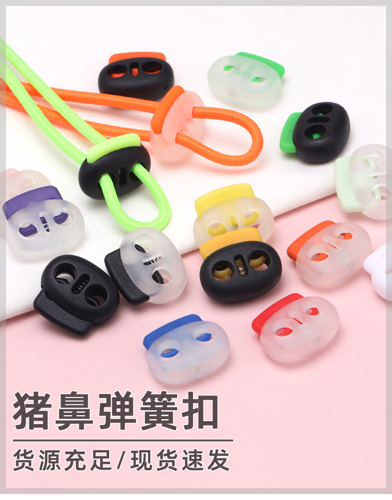 Colorful plastic spring buckle double-hole pig nose buckle nylon shoelace anti-slip buckle shoes backpack elastic rope adjustable buckle
