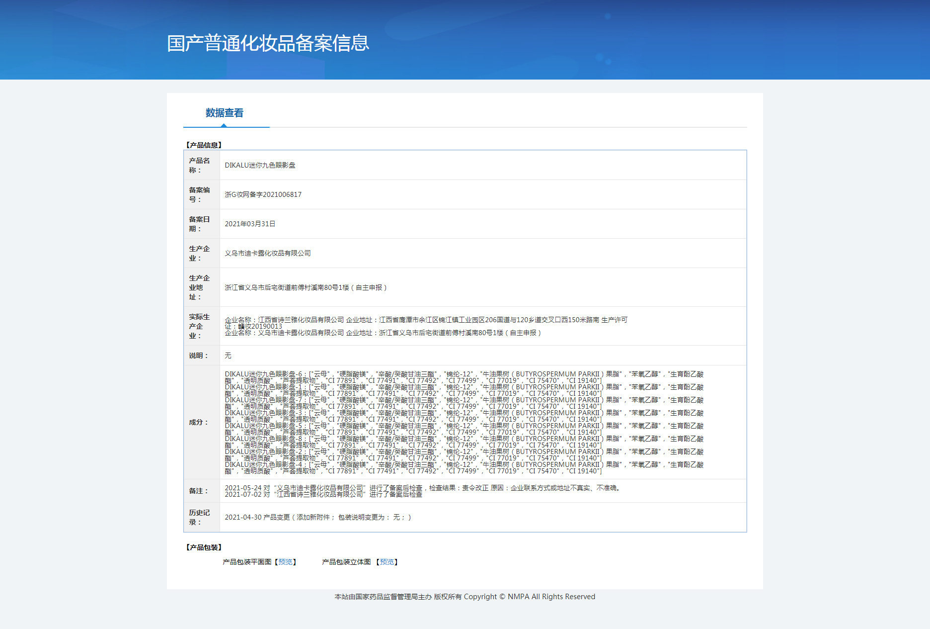 | Production license number | Gan makeup 20190625 |