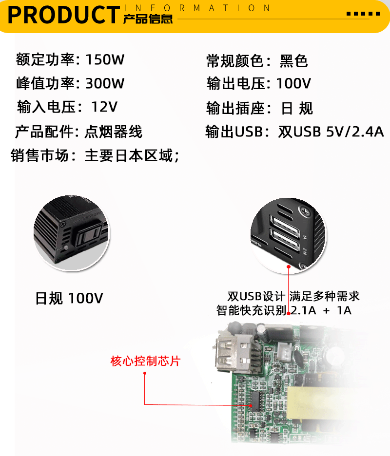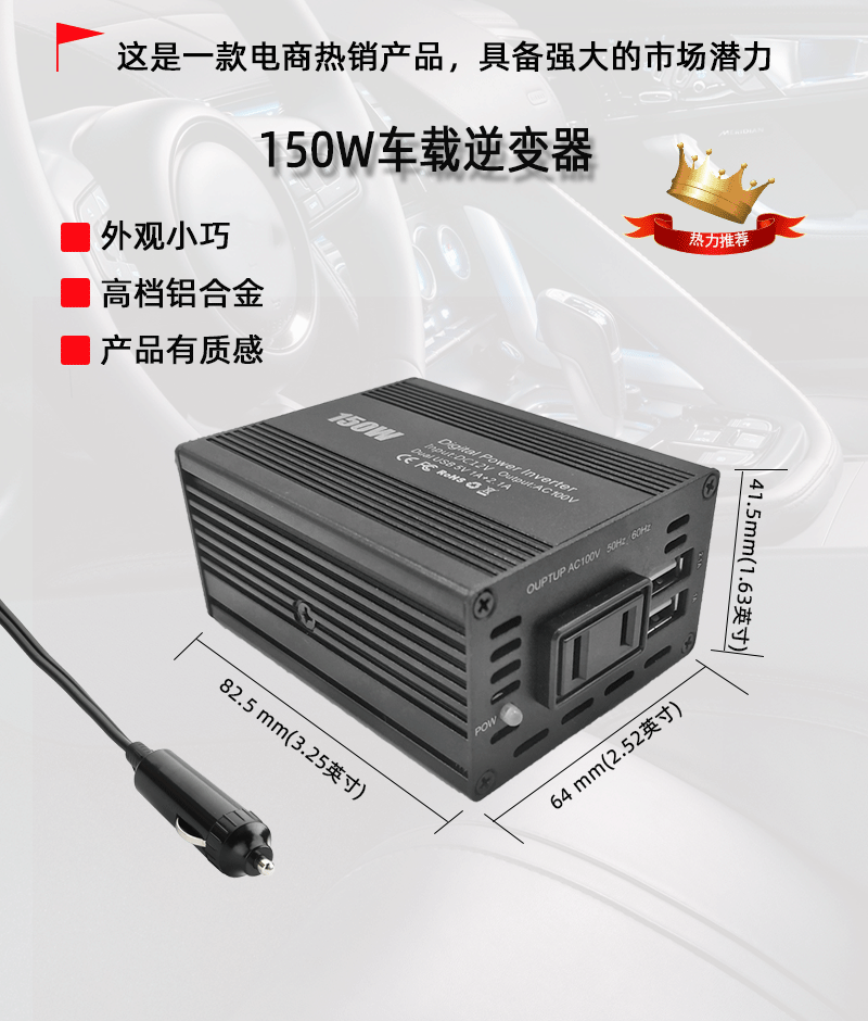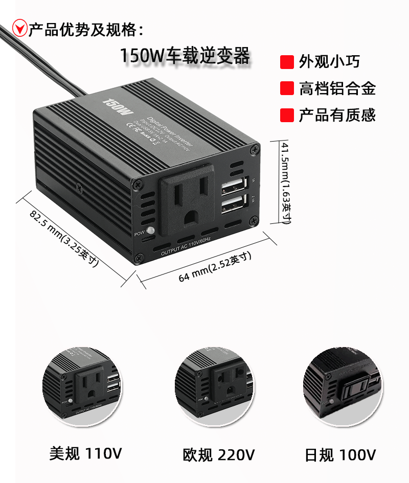 150W car inverter power converter dual USB12V to 110V220V100V US gauge European gauge