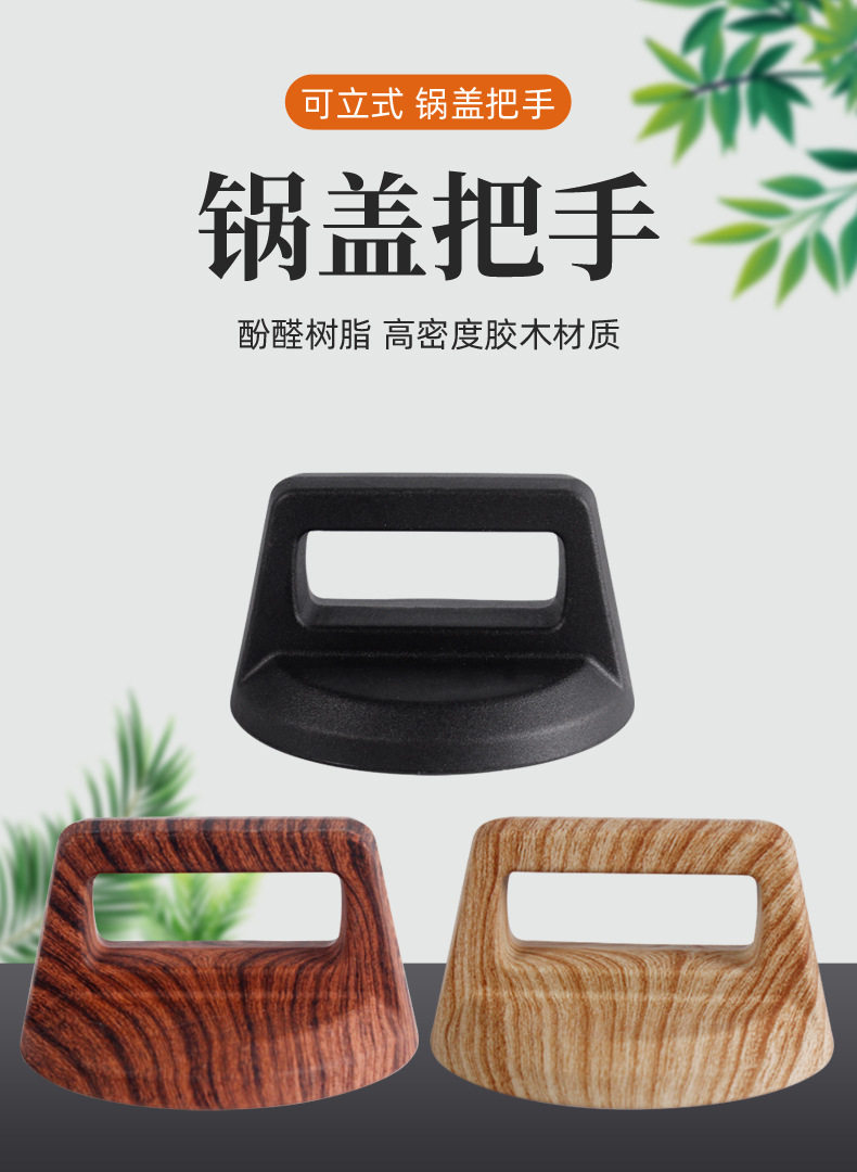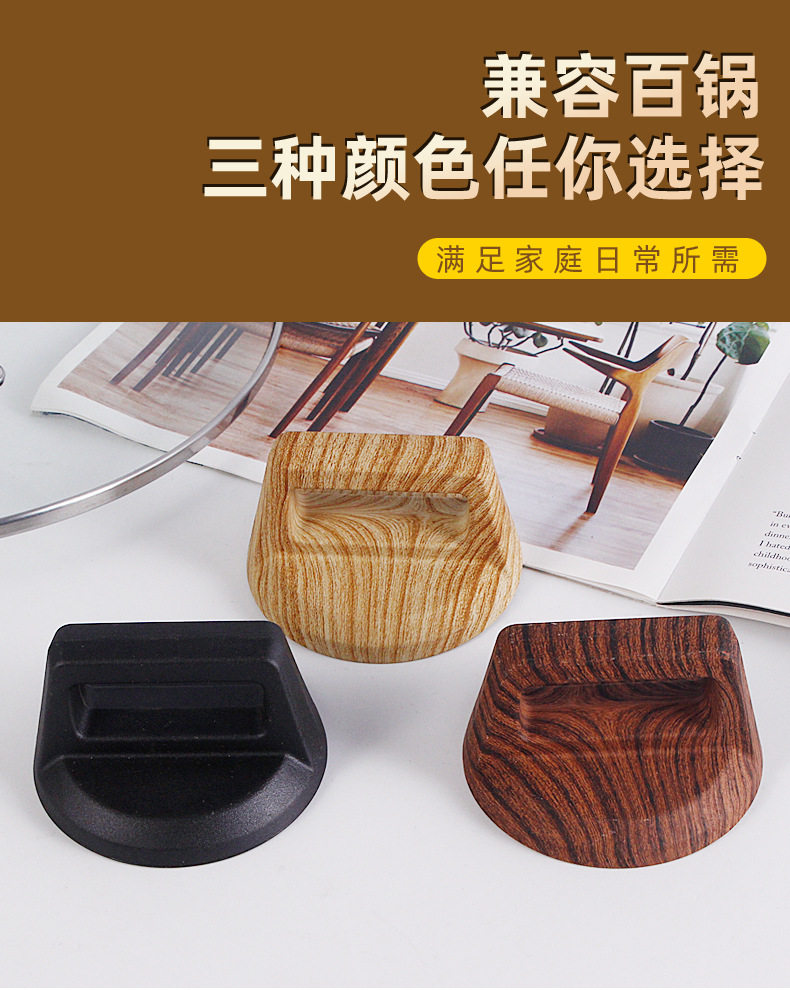 Pot Lid Handle Universal Wood Grain Square Lid Pot Knob Kitchen Simple and Comfortable High Temperature Resistant Anti-Scalding Pot Lid Top Bead Accessories