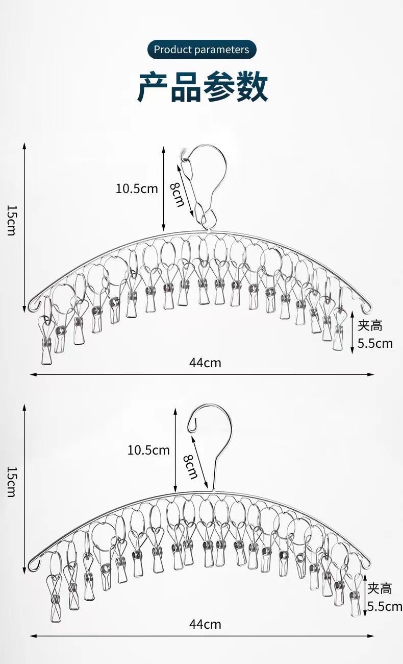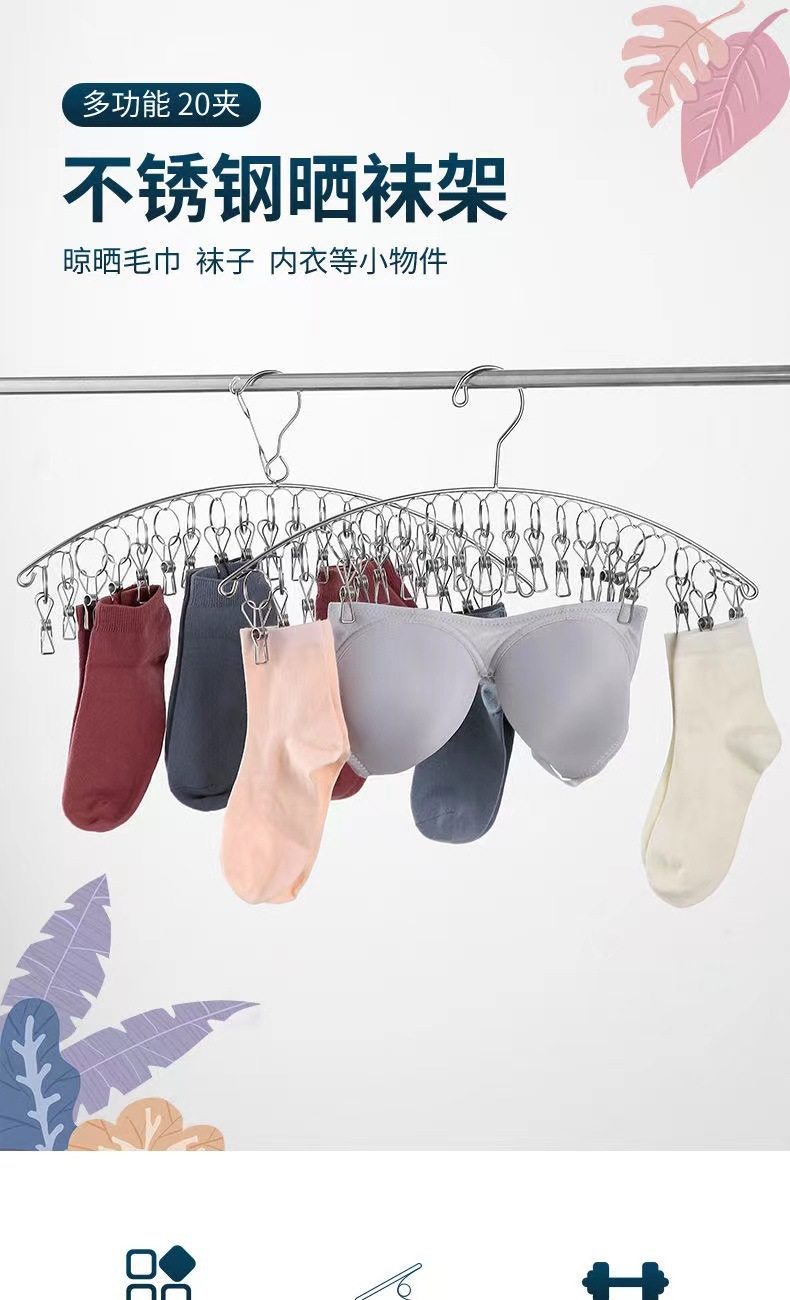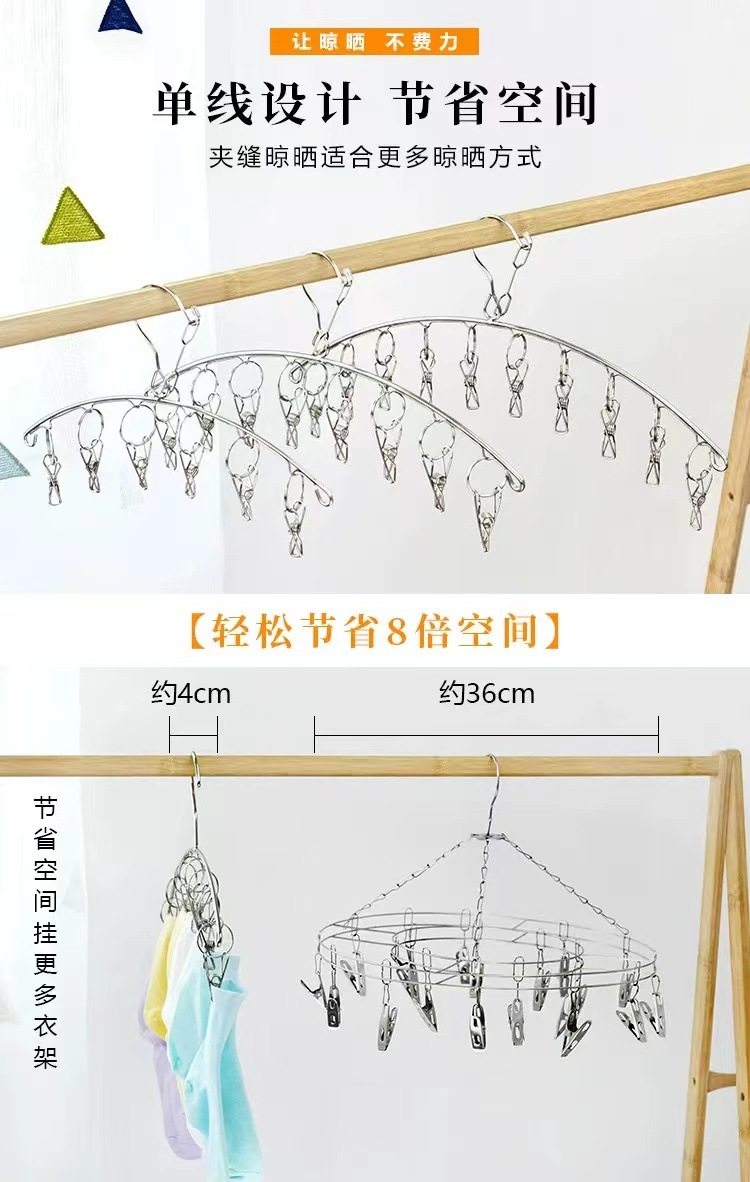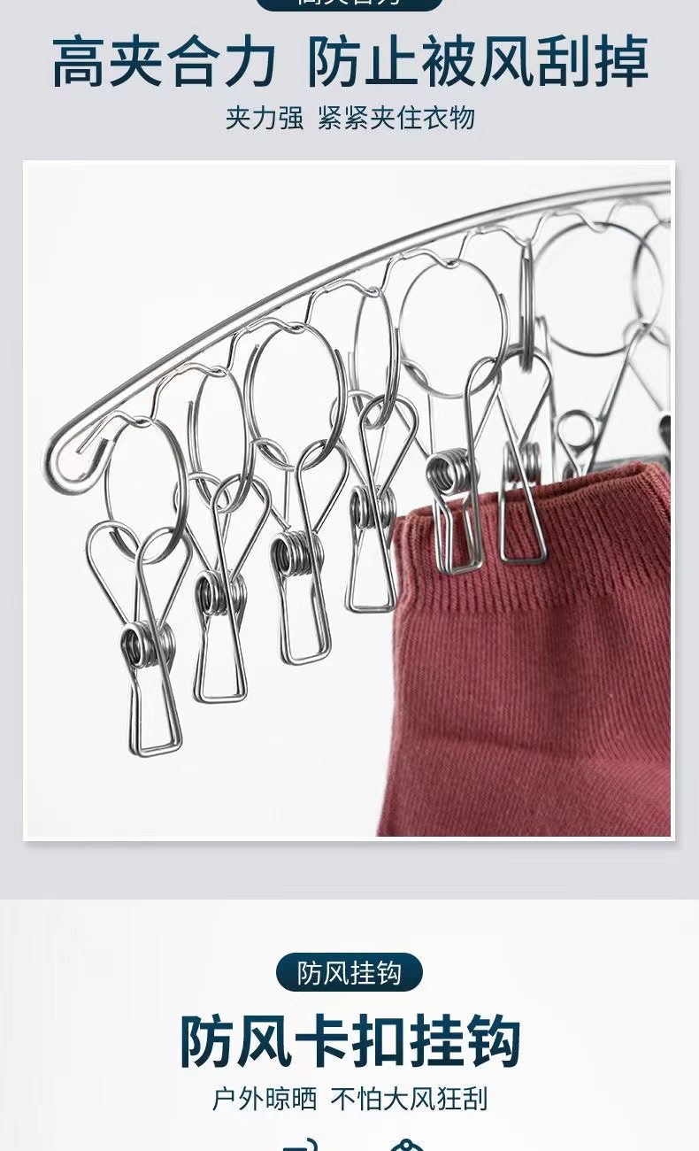 Stainless Steel Hosiery Rack Arc Hosiery Rack Multifunctional Clothes Rack Multi-clip Windproof Hanger Drying Clip Windproof Hanger