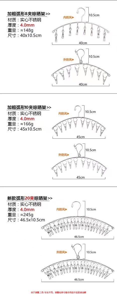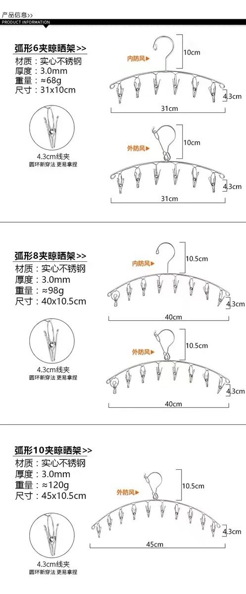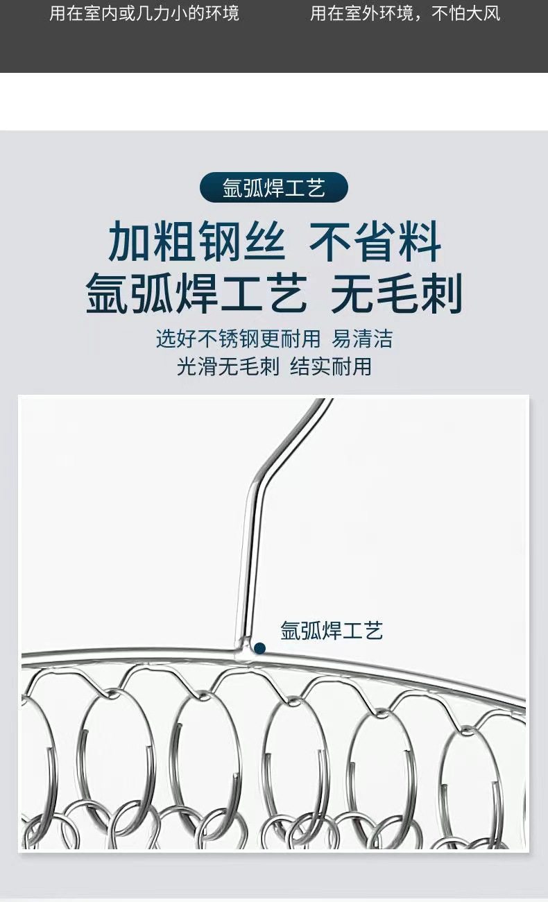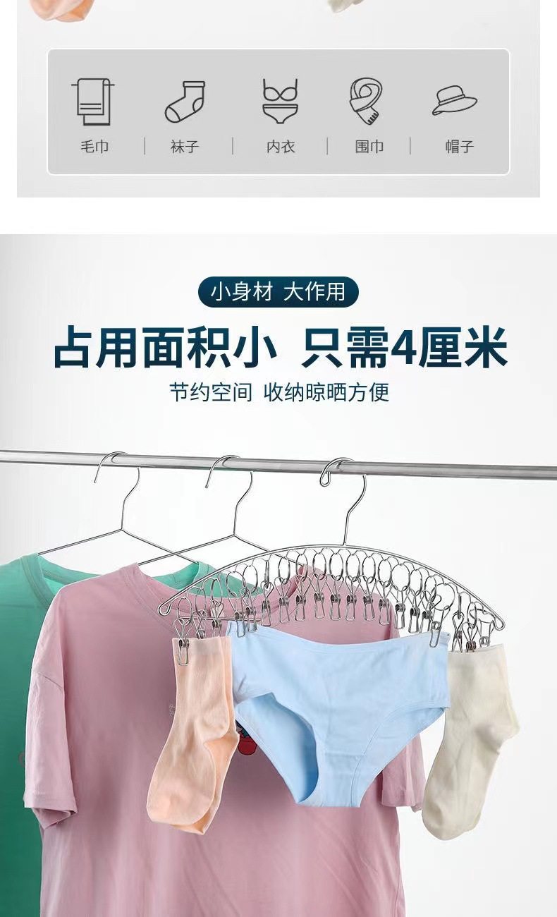 Stainless Steel Hosiery Rack Arc Hosiery Rack Multifunctional Clothes Rack Multi-clip Windproof Hanger Drying Clip Windproof Hanger