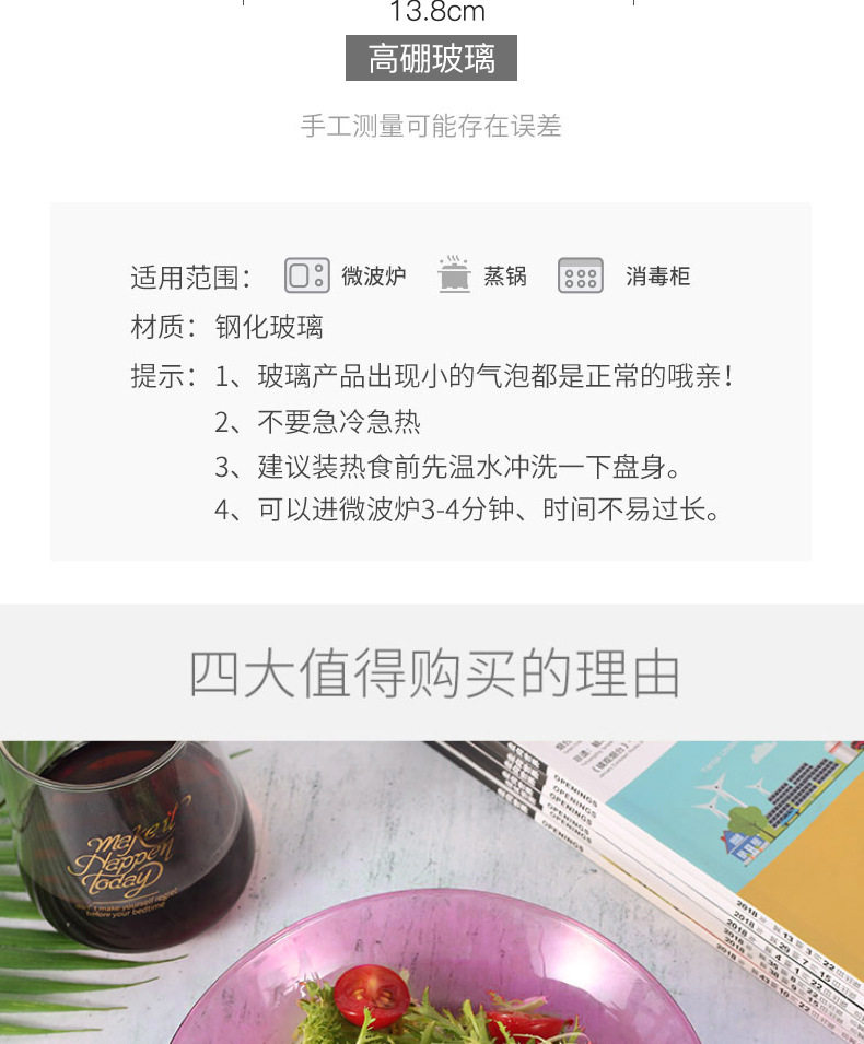 | Color | Purple tempered deep plate -1,Amber high boron deep plate -1 piece |
