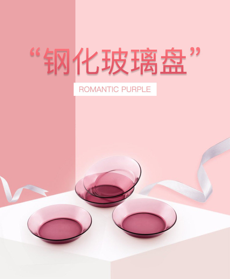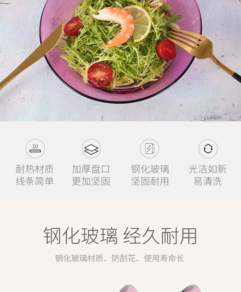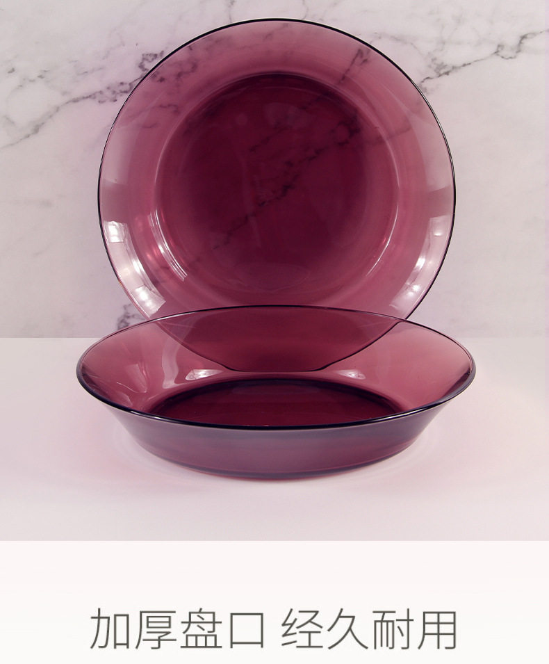 Tempered Glass Purple Dessert Cake Plate Pasta Plate Fried Rice Tray Dish Vegetable Salad Fruit Plate Western Food Plate
