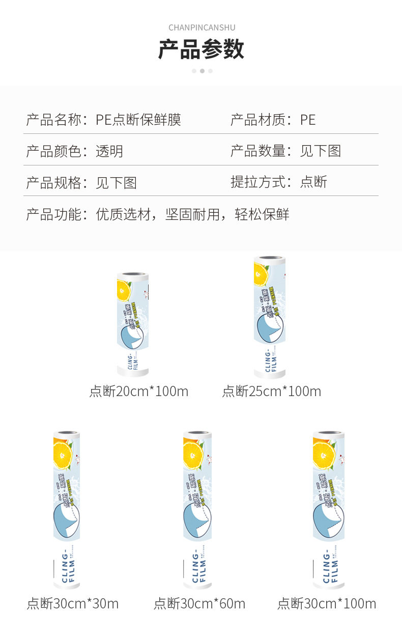 Fresh-keeping film household wholesale large number of disposable point-and-break kitchen refrigerator PE fresh-keeping film microwave oven high temperature resistant