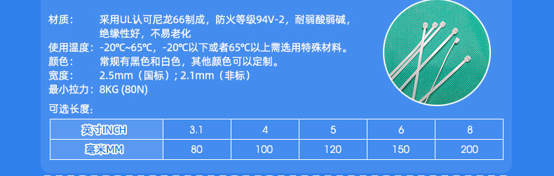Factory custom cable tie white self-locking 3*4*5*8*100*150*200*300 cold-resistant cable tie