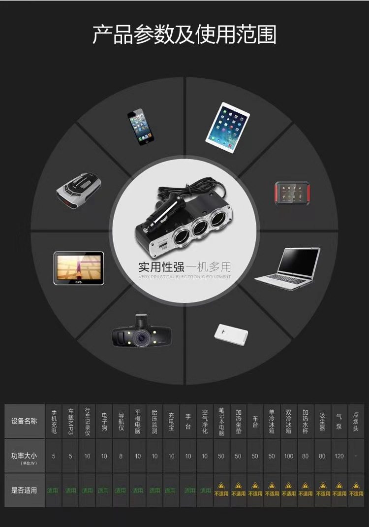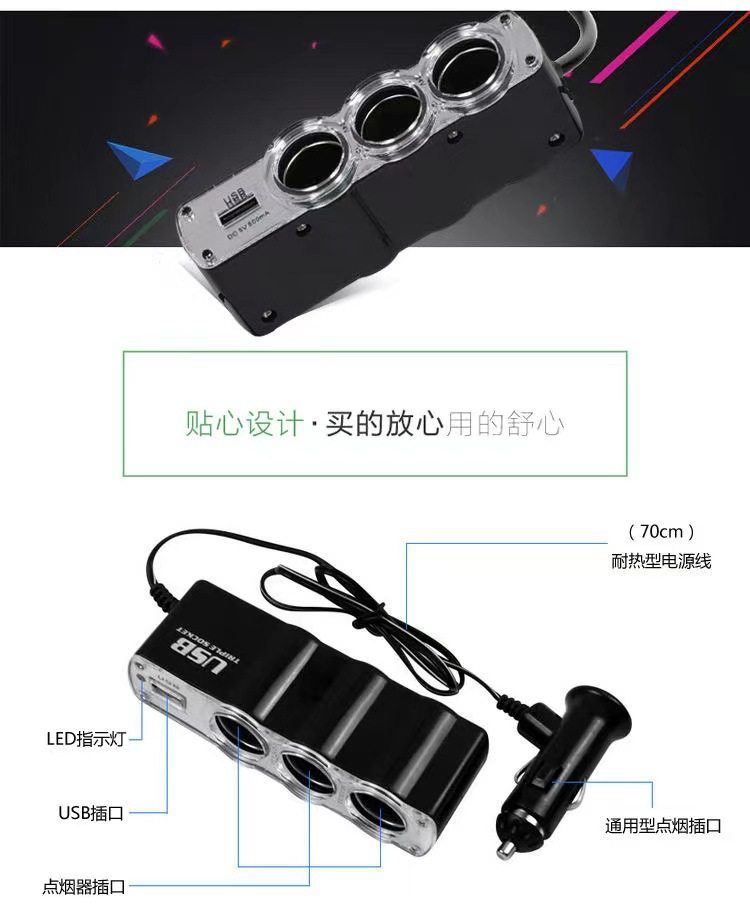 Factory direct car cigarette lighter 12/24v Universal car three cigarette lighter car cigarette lighter