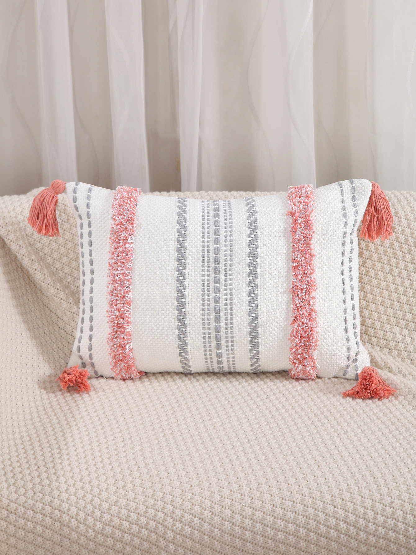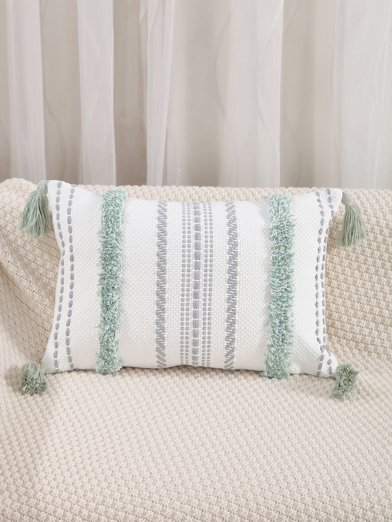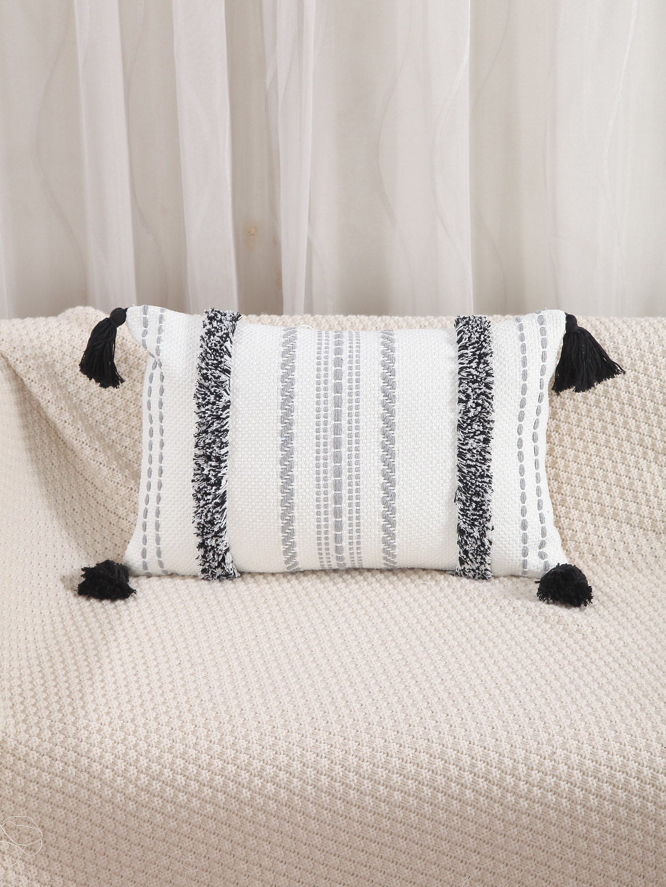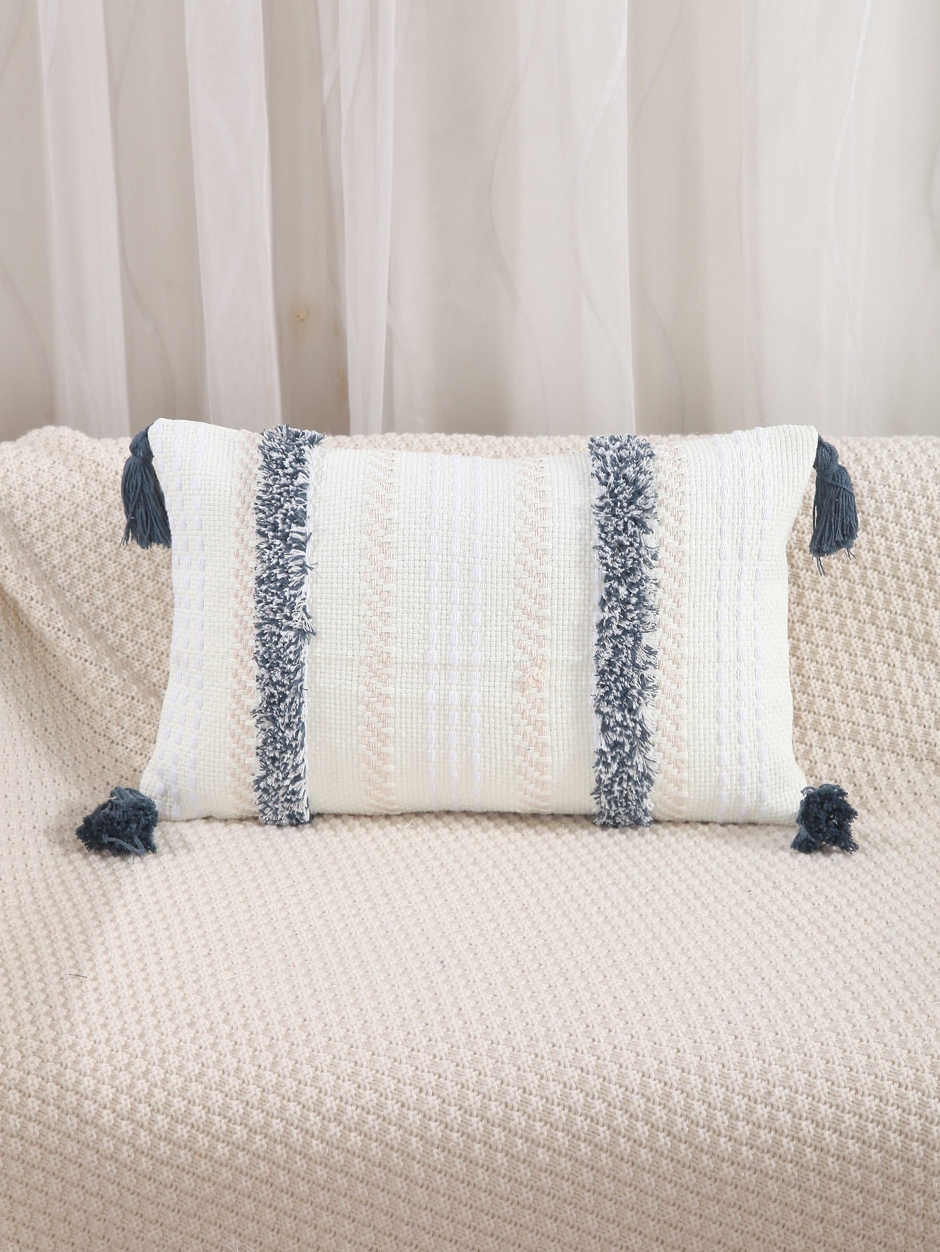 New Cotton Gauze Jacquard Tufted Tassel Pillow Case Office Lumbar Pillow Home Sofa Bedside Cushion Wholesale