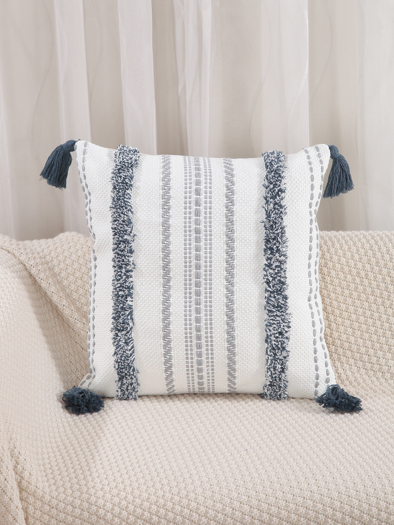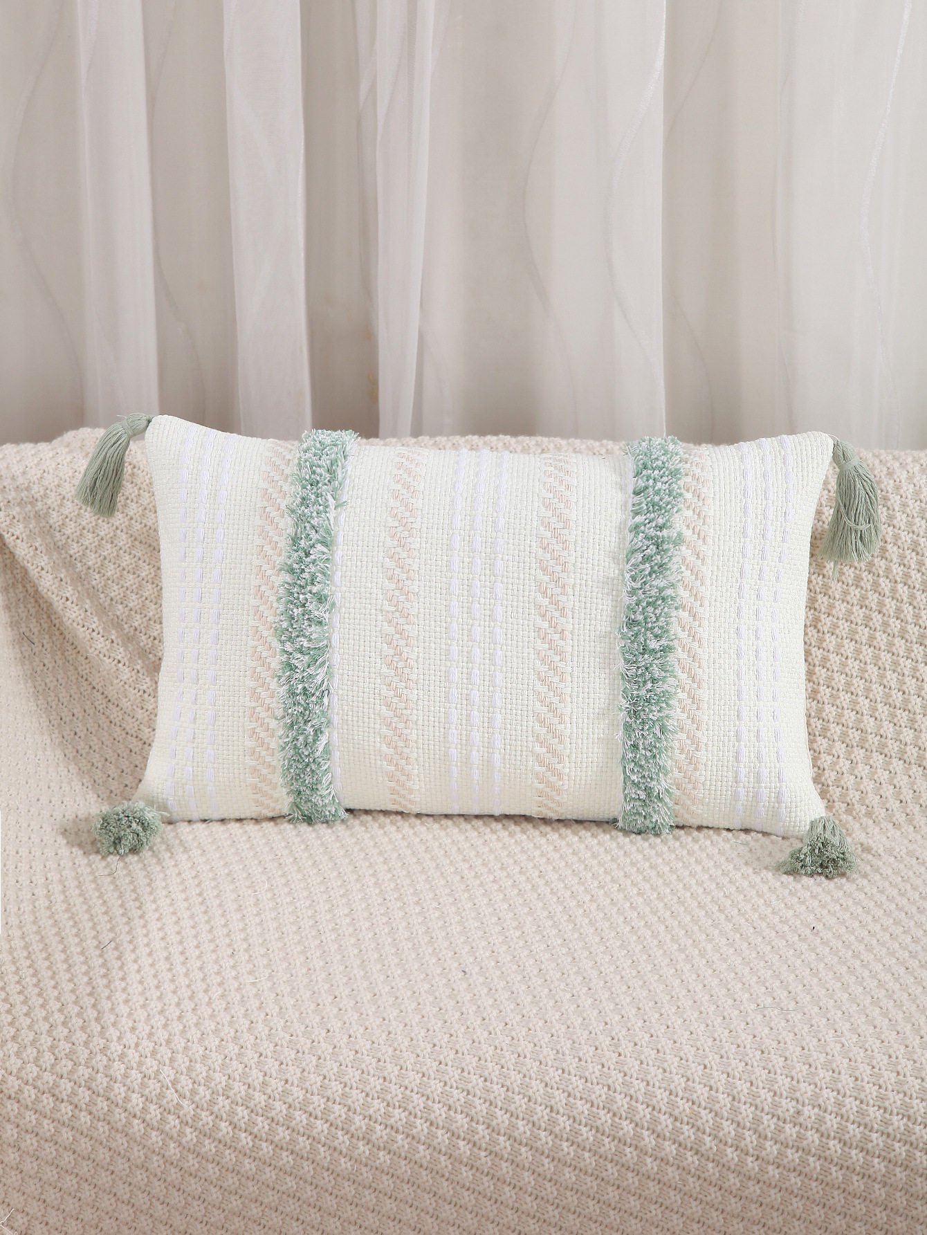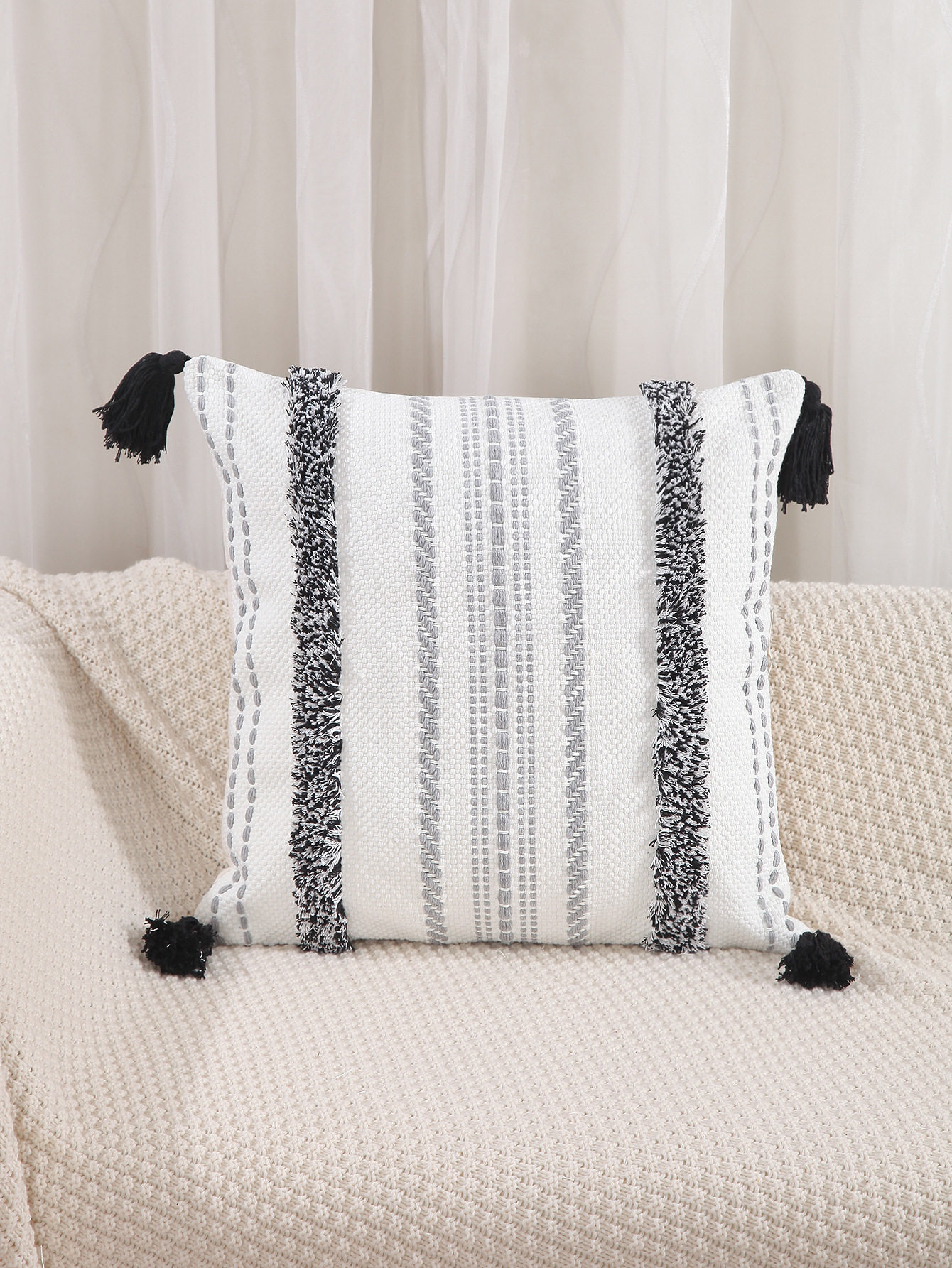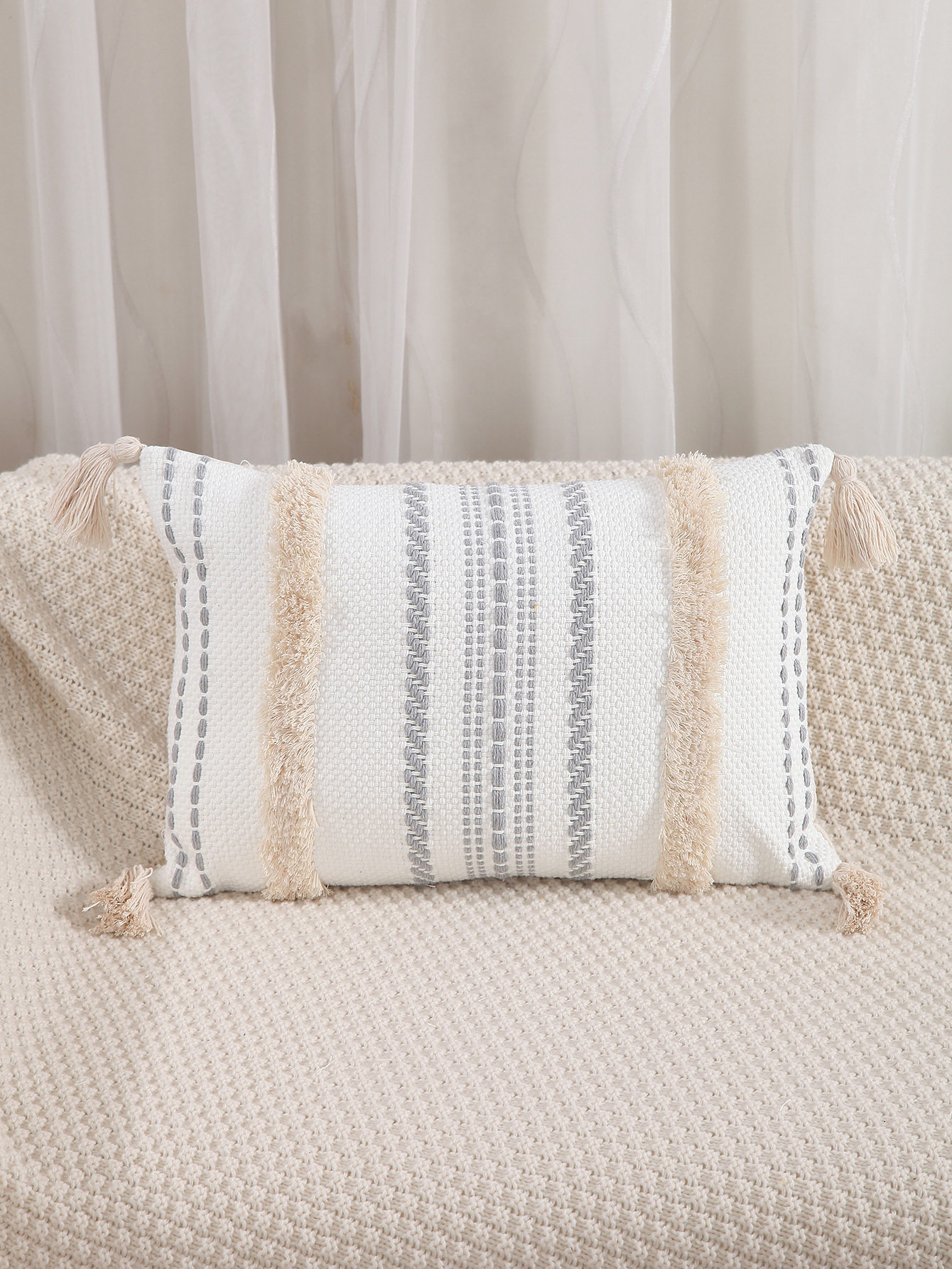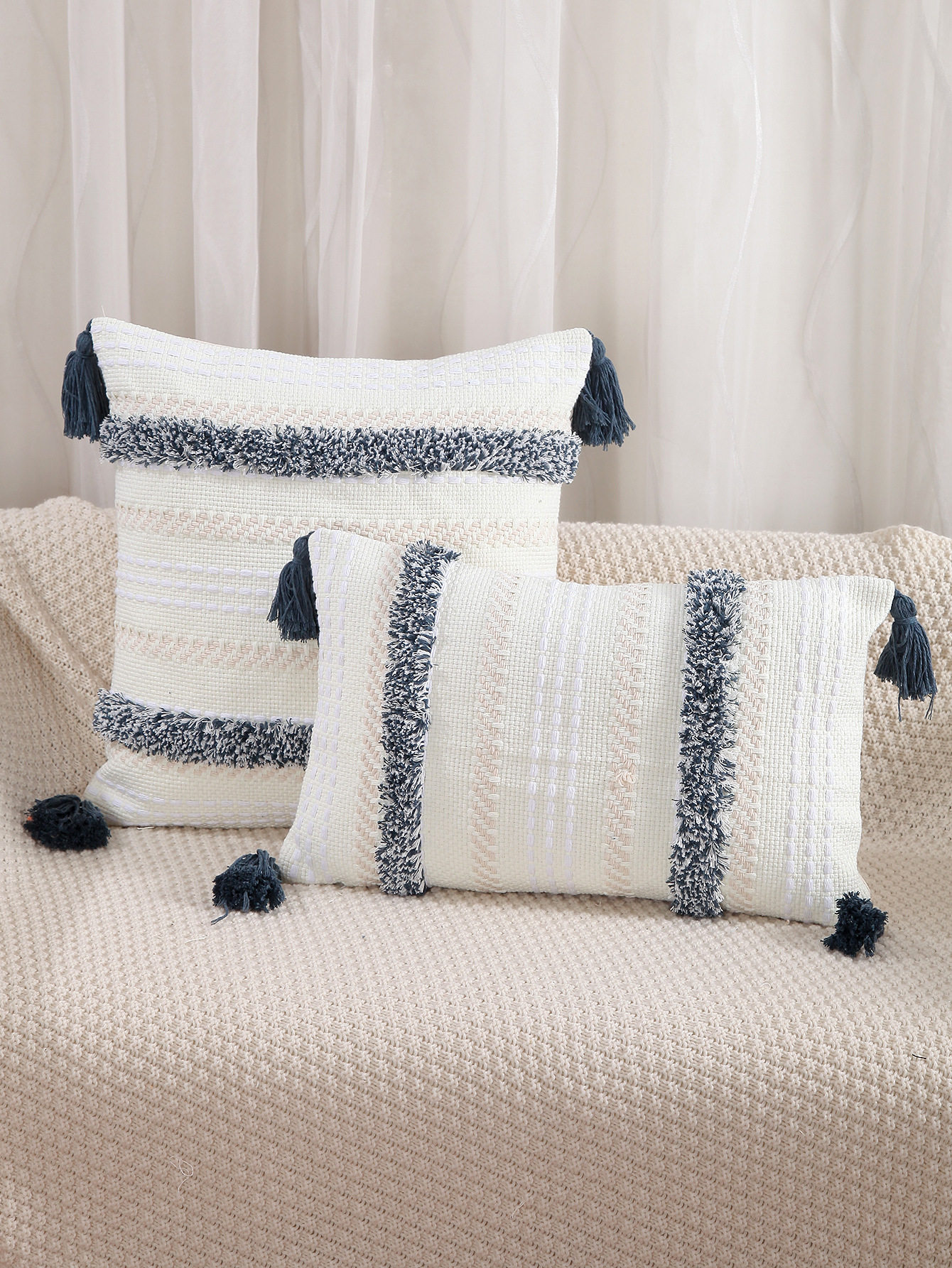 New Cotton Gauze Jacquard Tufted Tassel Pillow Case Office Lumbar Pillow Home Sofa Bedside Cushion Wholesale