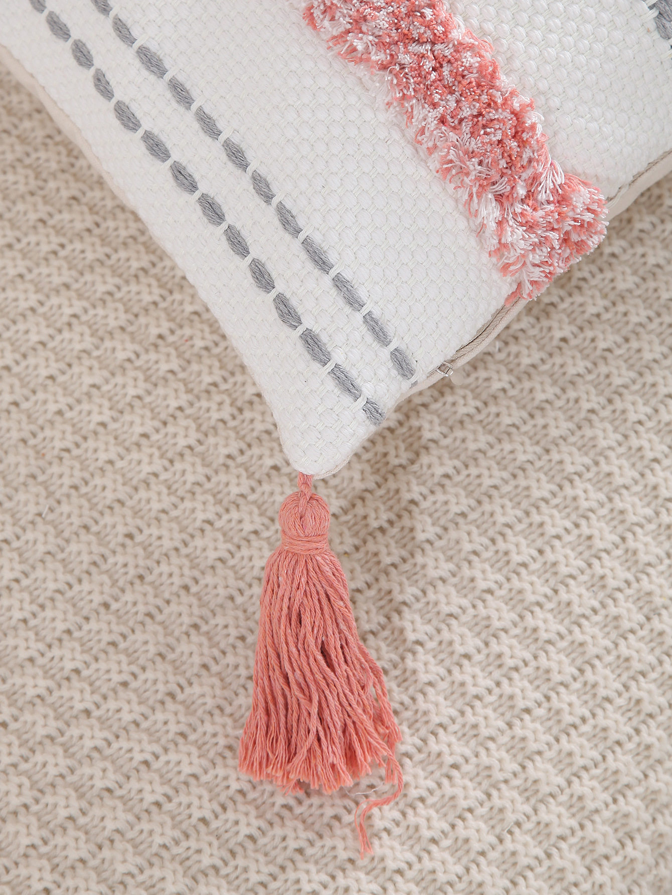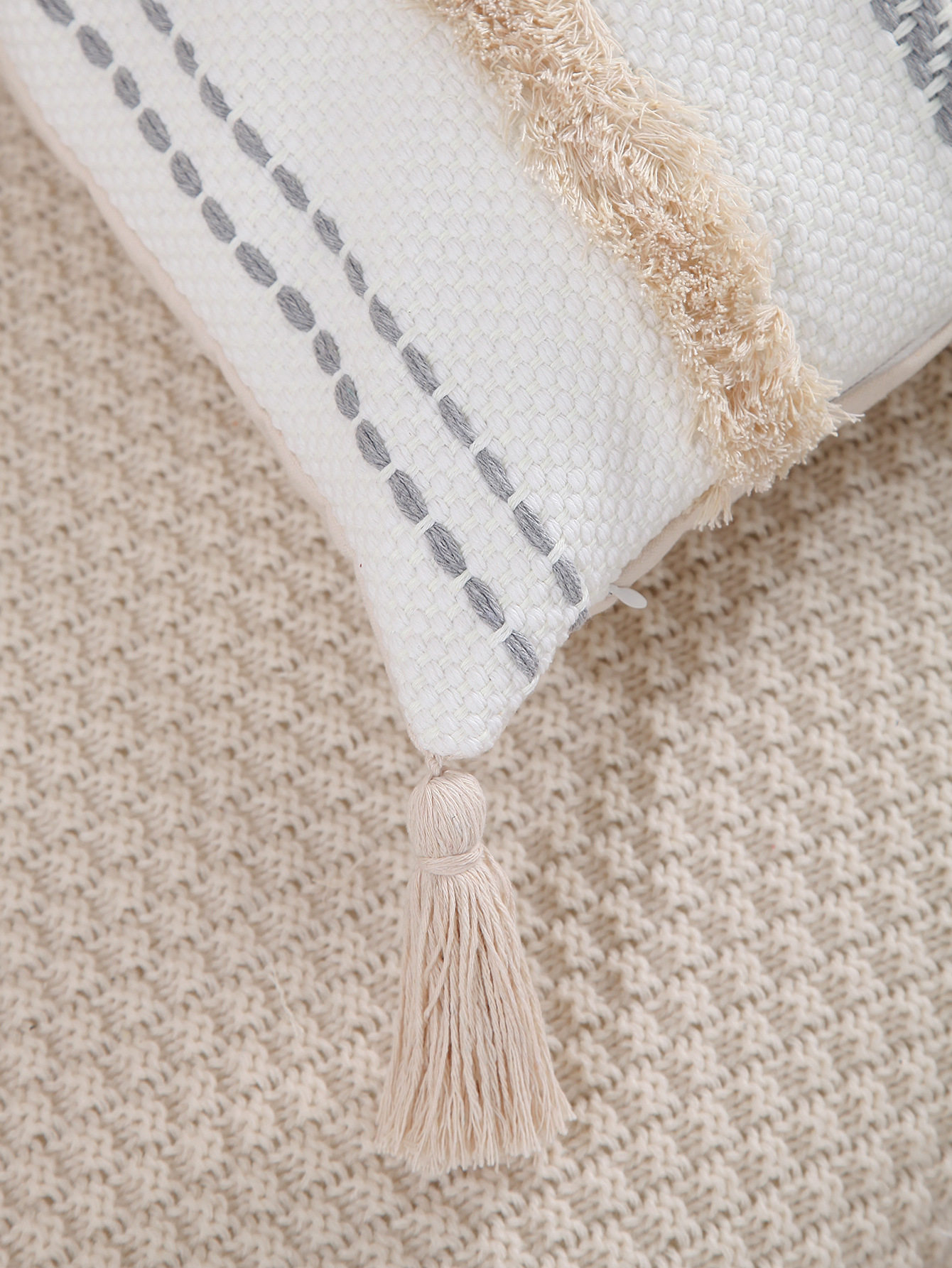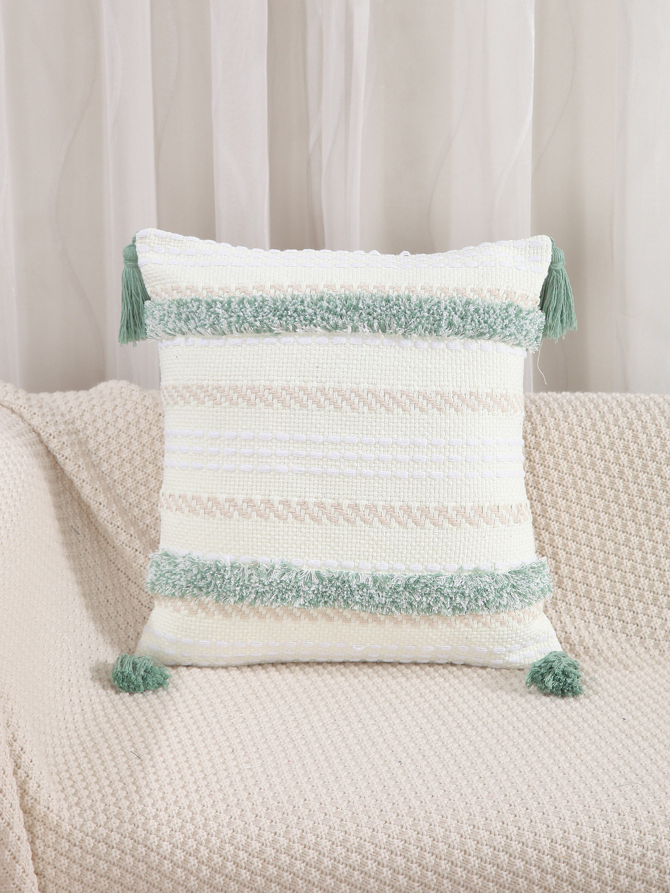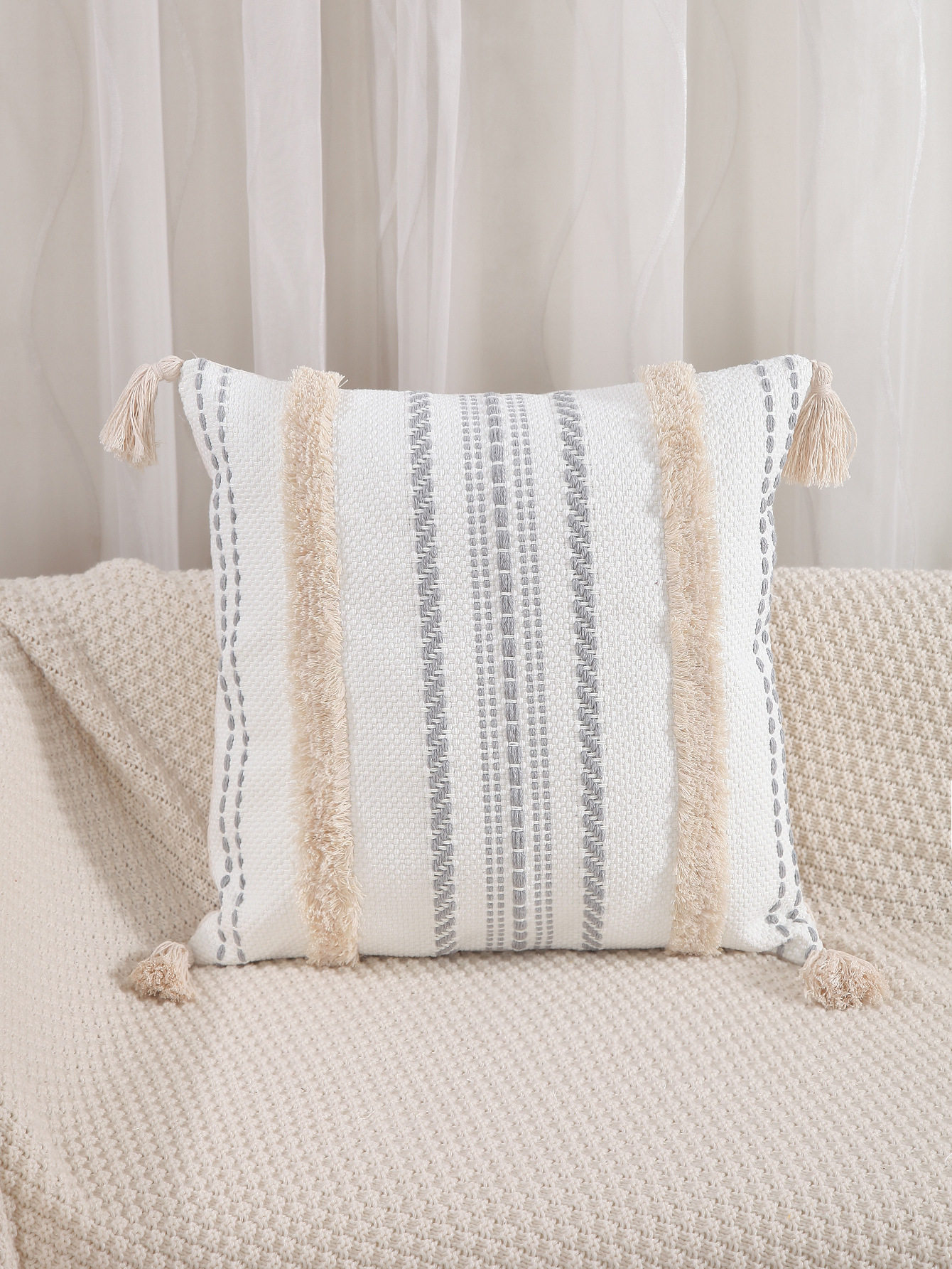 New Cotton Gauze Jacquard Tufted Tassel Pillow Case Office Lumbar Pillow Home Sofa Bedside Cushion Wholesale