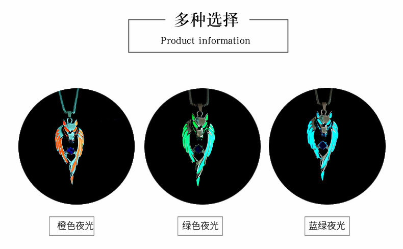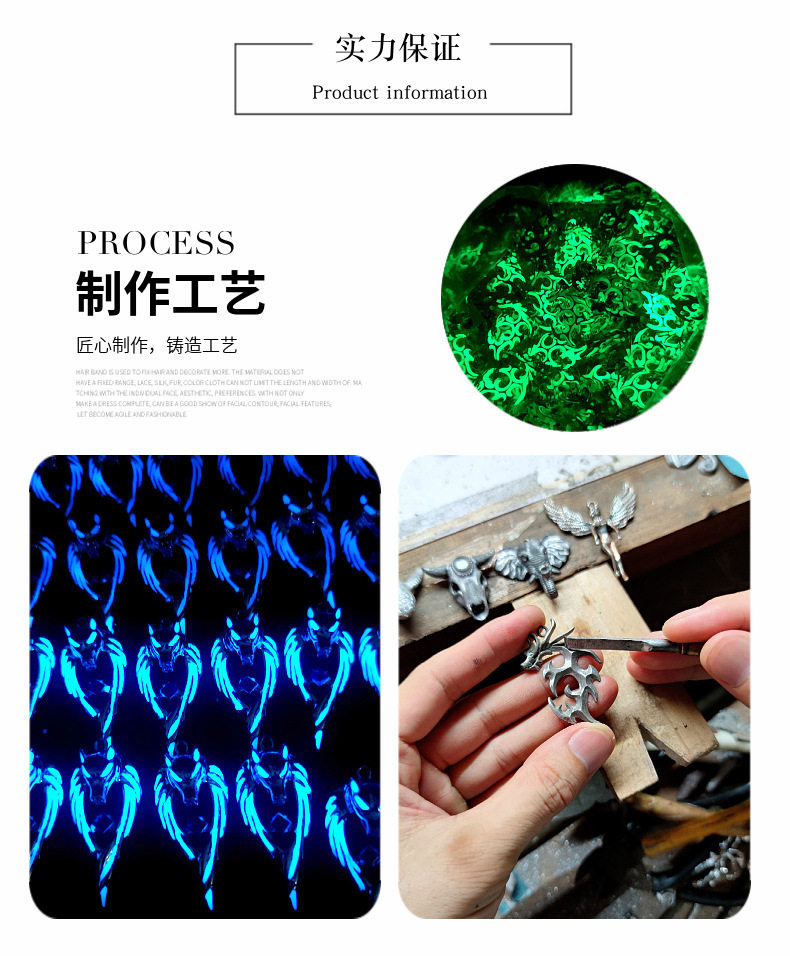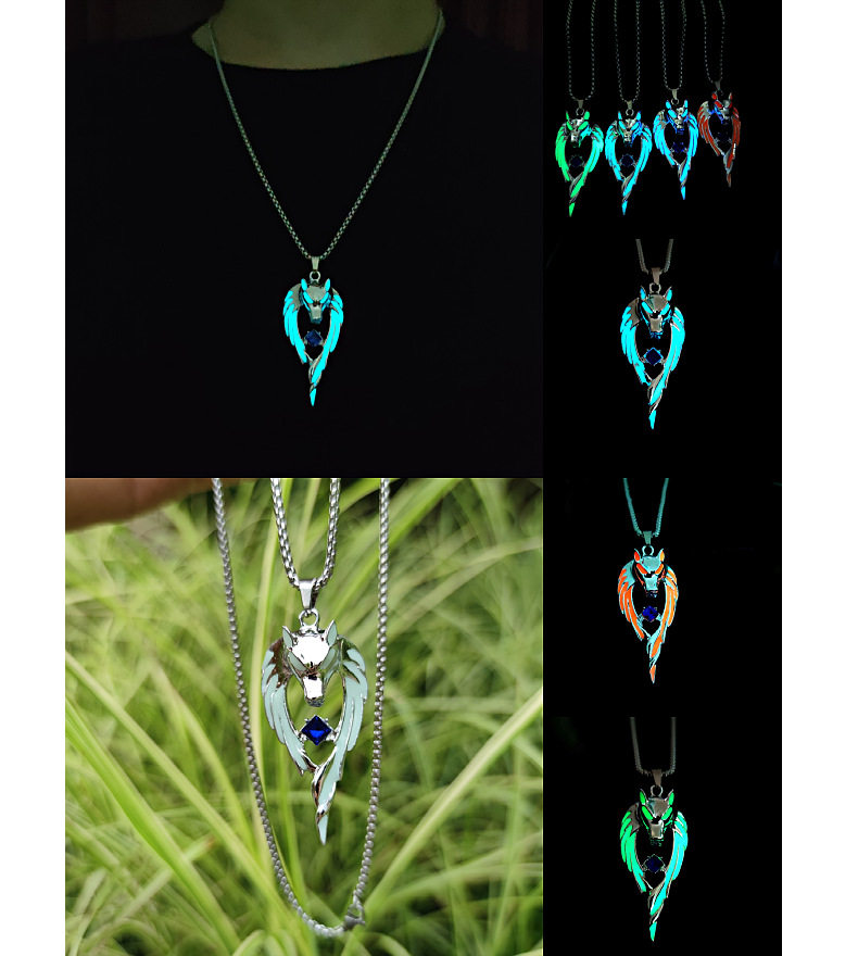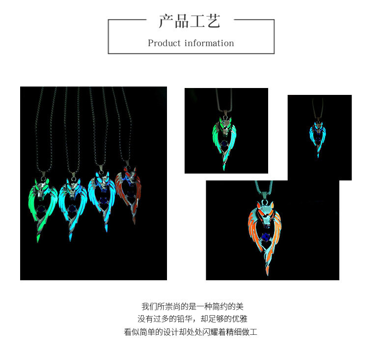 2022 New Product Douyin Popular Retro Hip-Hop Street Trendy Men's Luminous Wolf Totem Northern Realm Wolf King Luminous Pendant Men