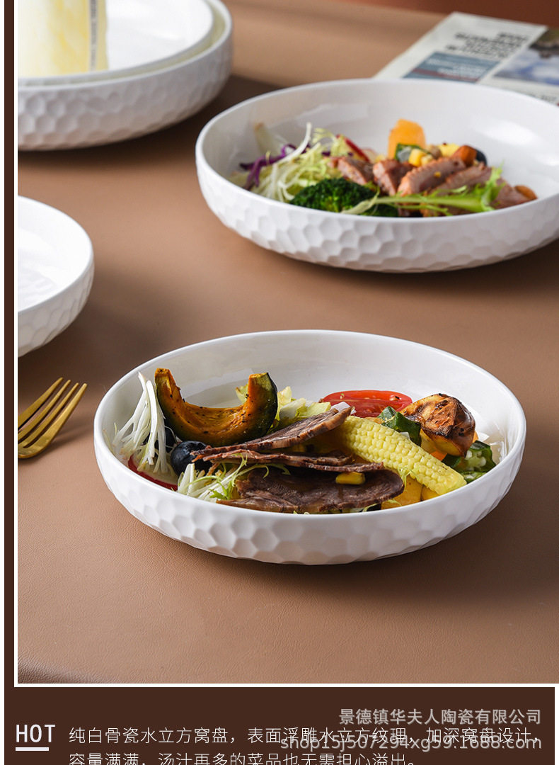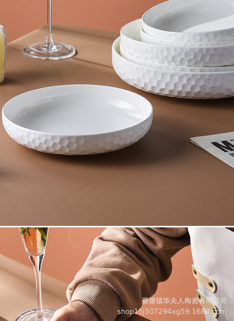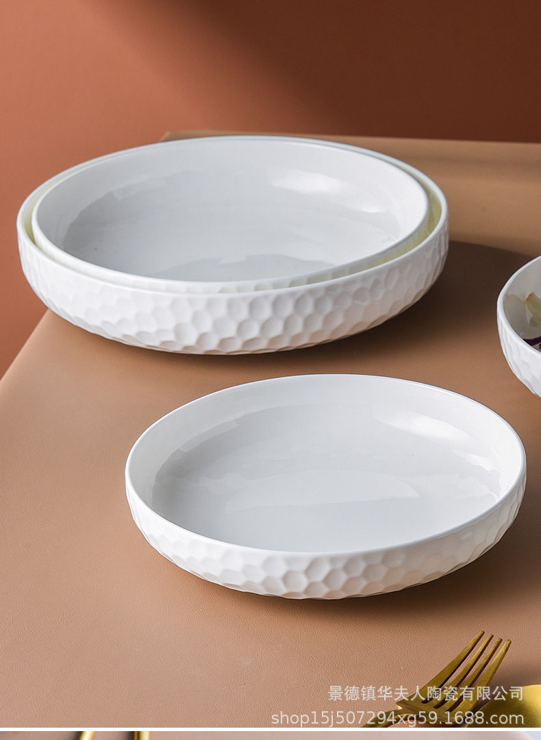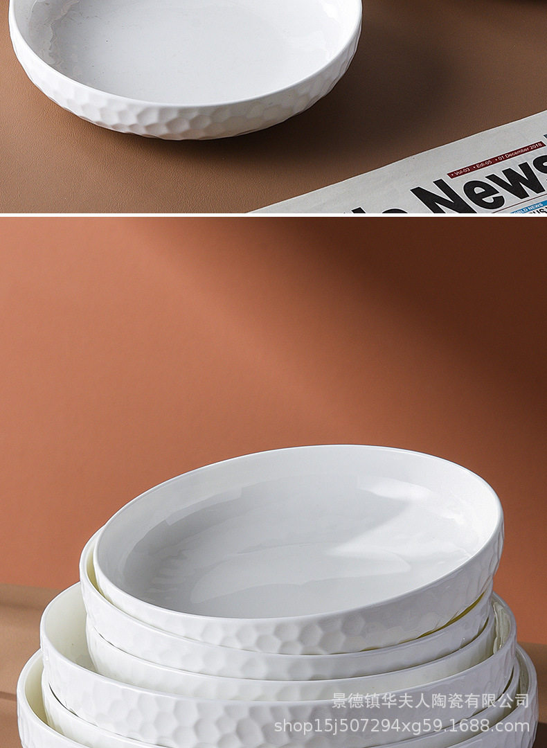 Jingdezhen Bone China Pure White Ceramic Dish Creative Household Tableware Simple Chinese Soup Plate Round Dish Deep Plate
