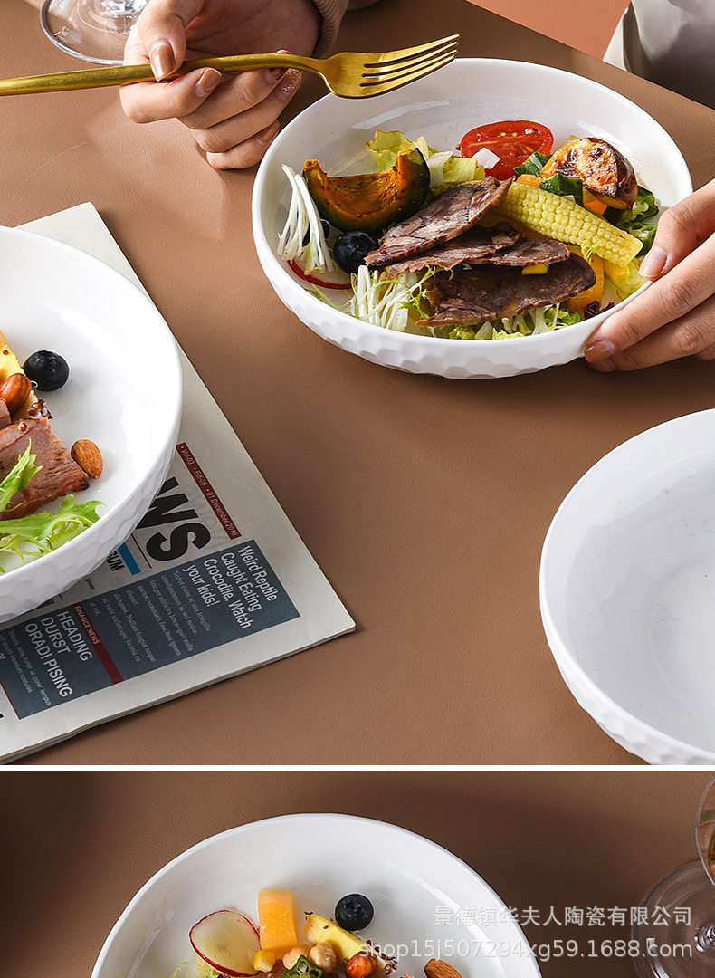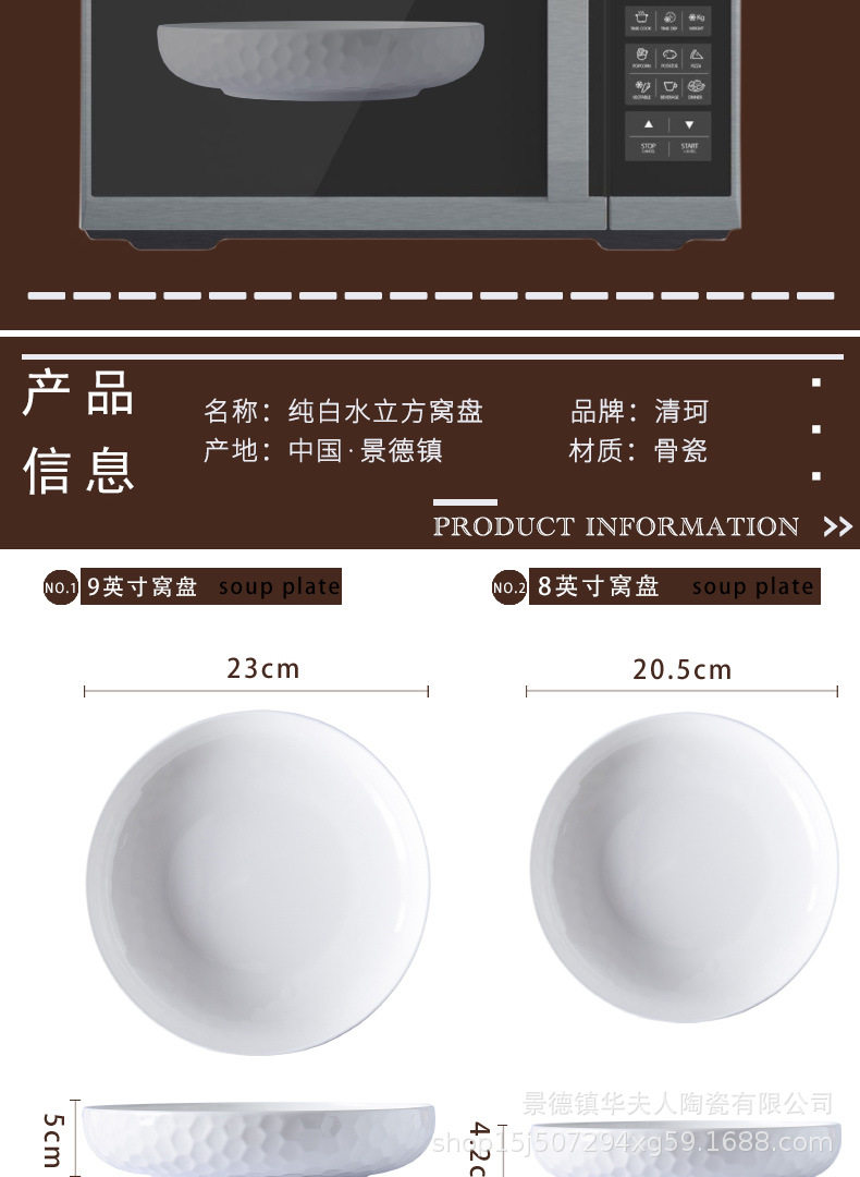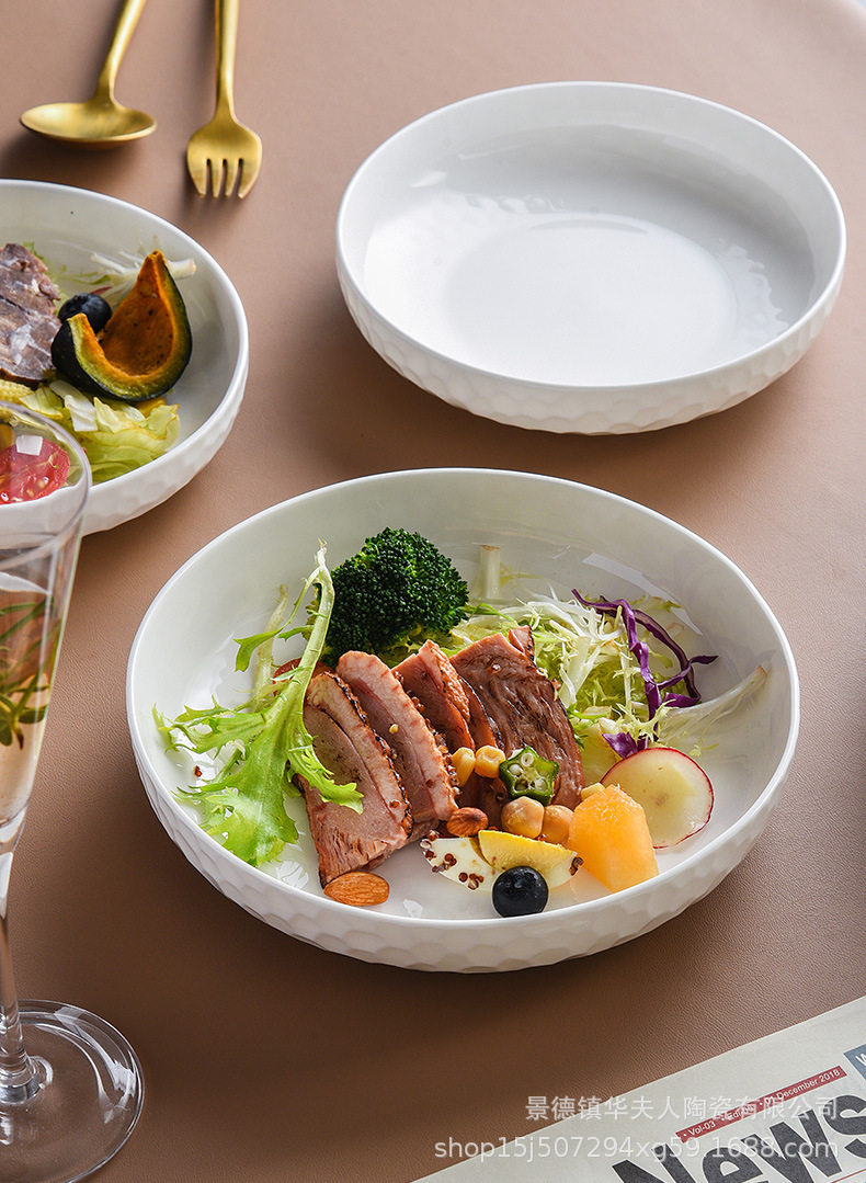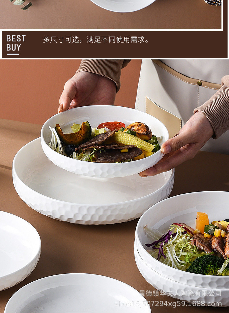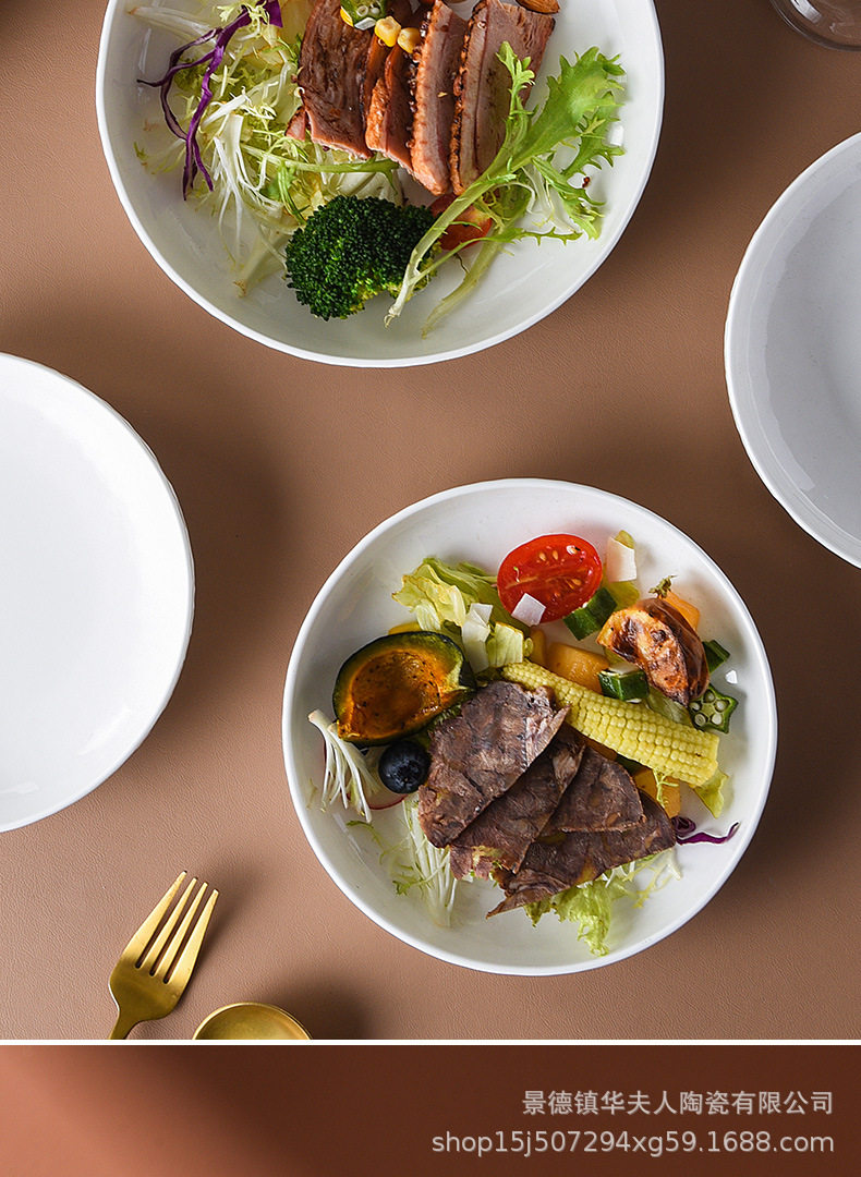 Jingdezhen Bone China Pure White Ceramic Dish Creative Household Tableware Simple Chinese Soup Plate Round Dish Deep Plate