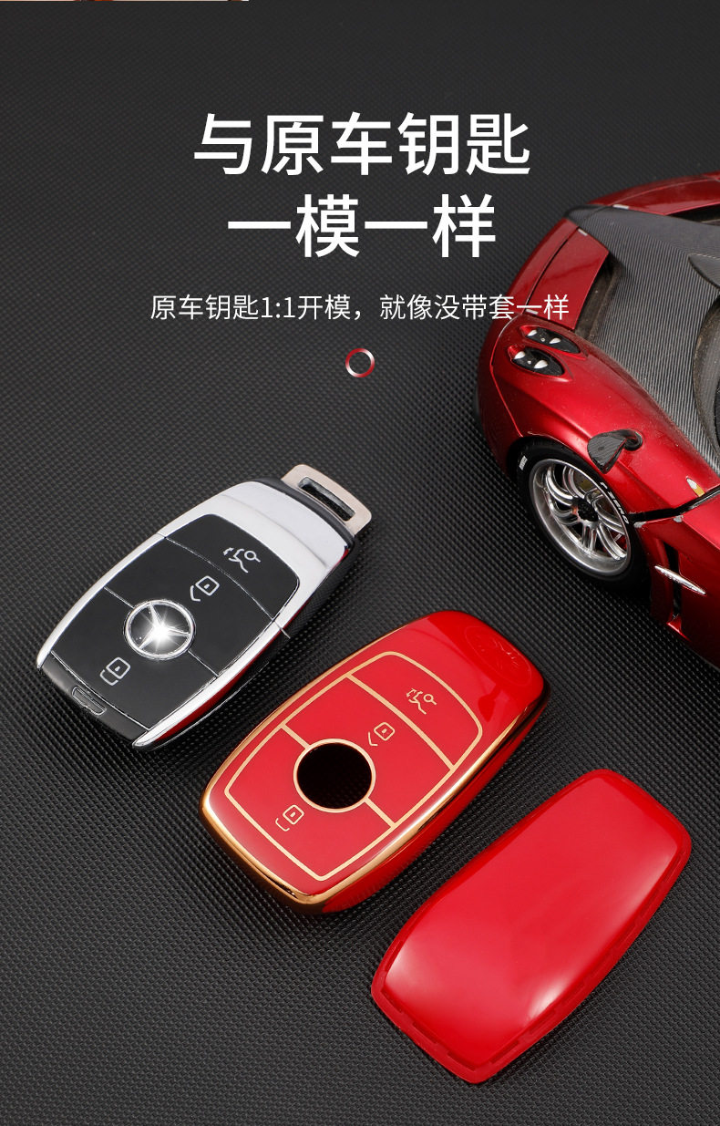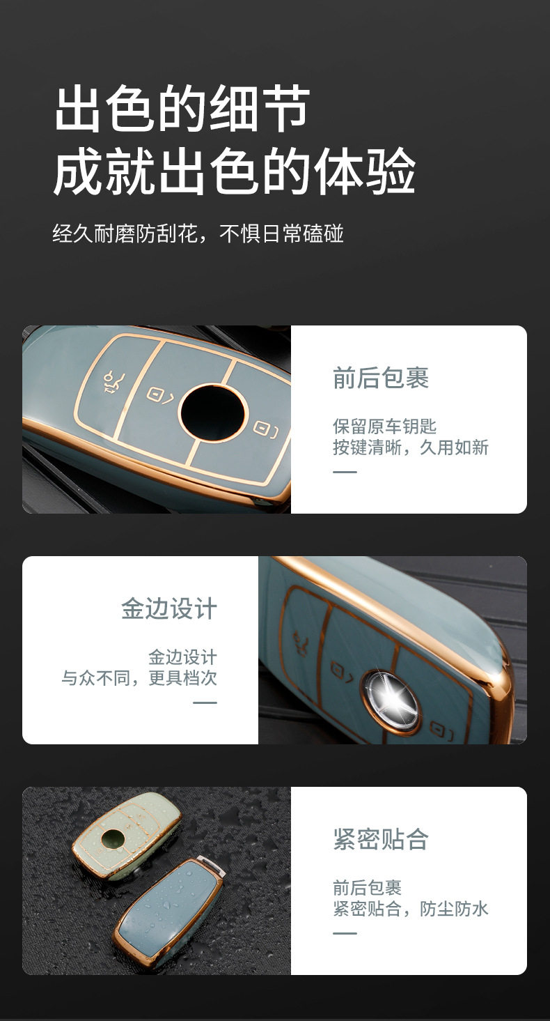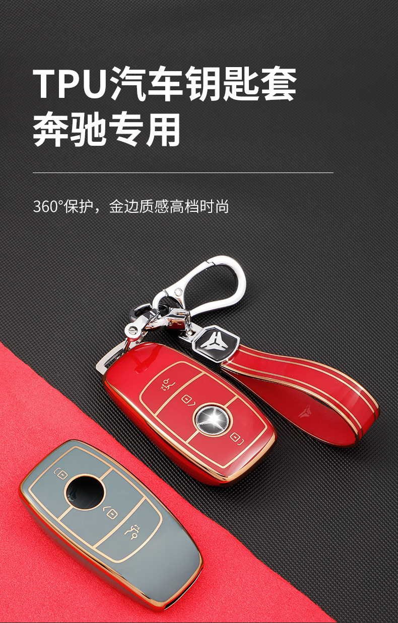 Mercedes-Benz car key case suitable for e300 e260 New e several golden edge car key case C- Class key case