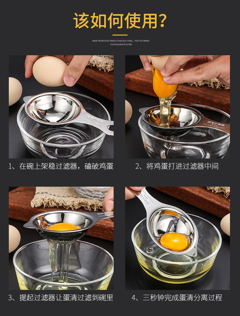 | Specifications | 304 egg white separator [silver]],304 egg white separator [gold]],304 egg white separator [rose gold]],304 egg white separator [black]],Egg white separator [430 material] [silver] |