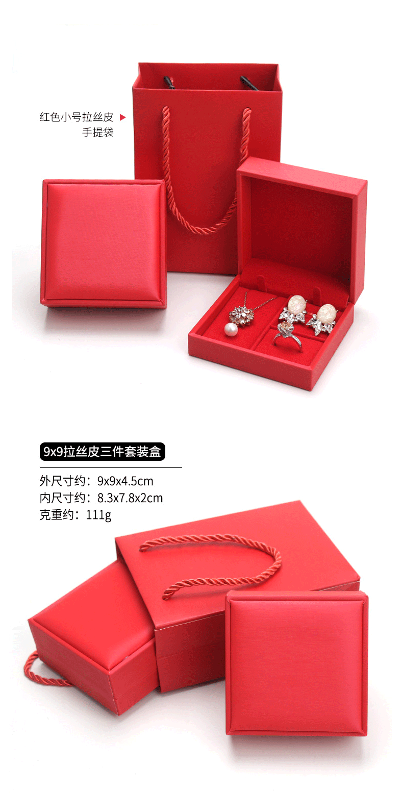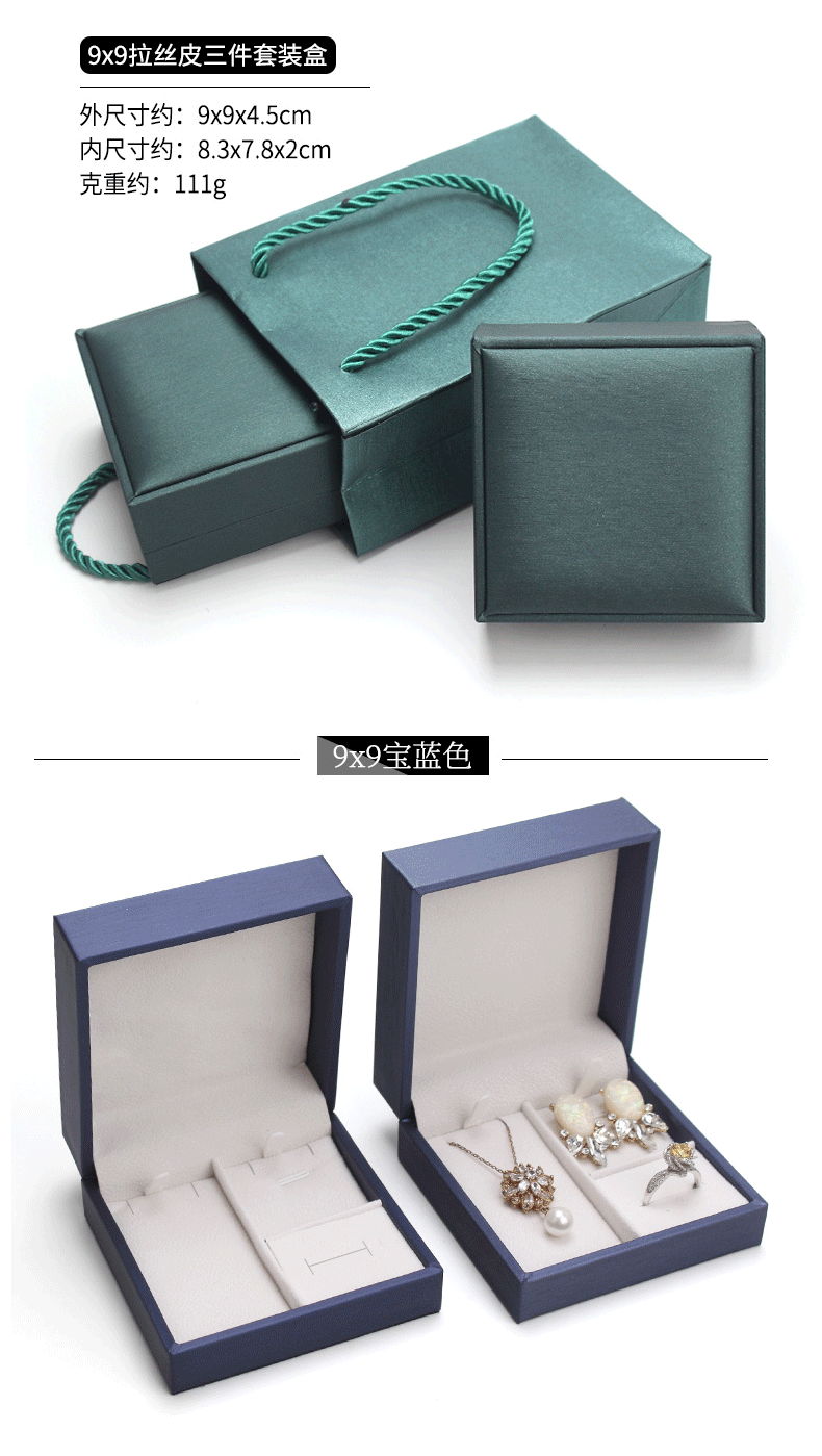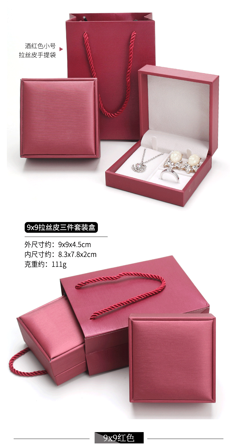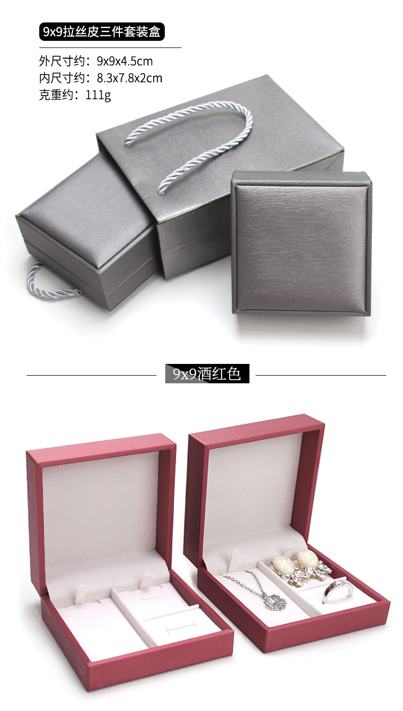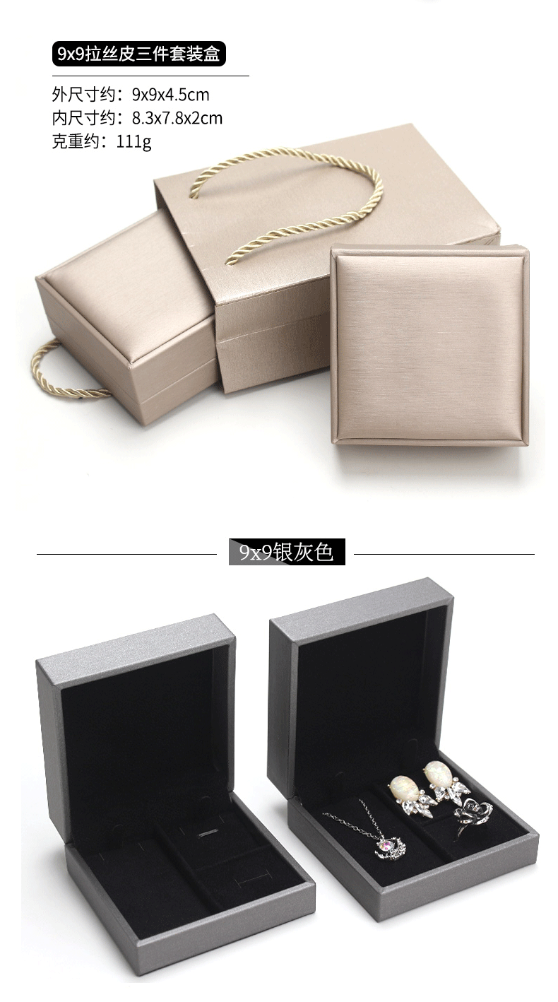 Spot brushed PU set box Jewelry pendant jewelry set box ring pendant earrings three-piece box can add LOGO