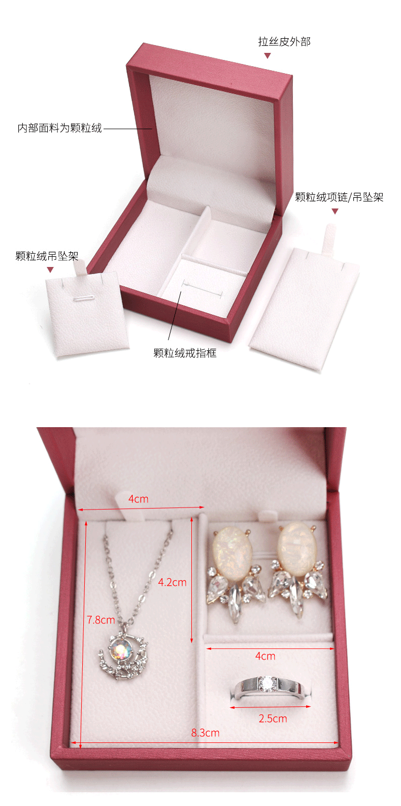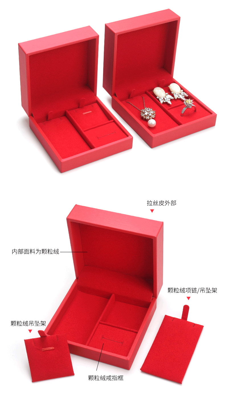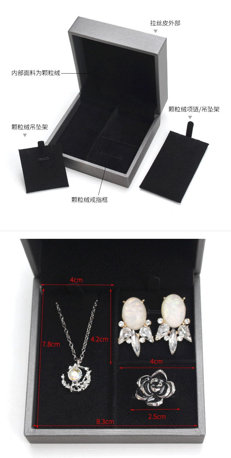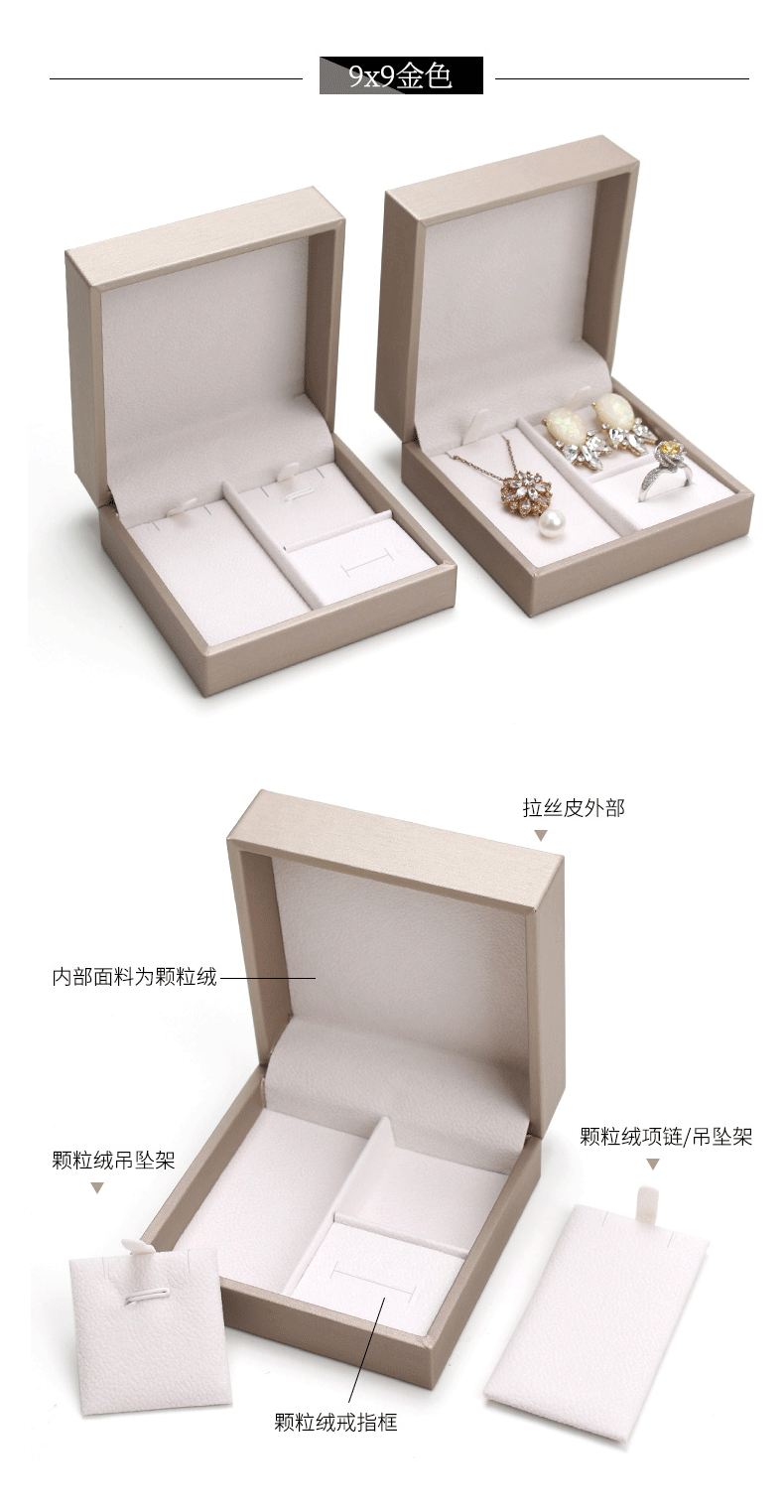 Spot brushed PU set box Jewelry pendant jewelry set box ring pendant earrings three-piece box can add LOGO