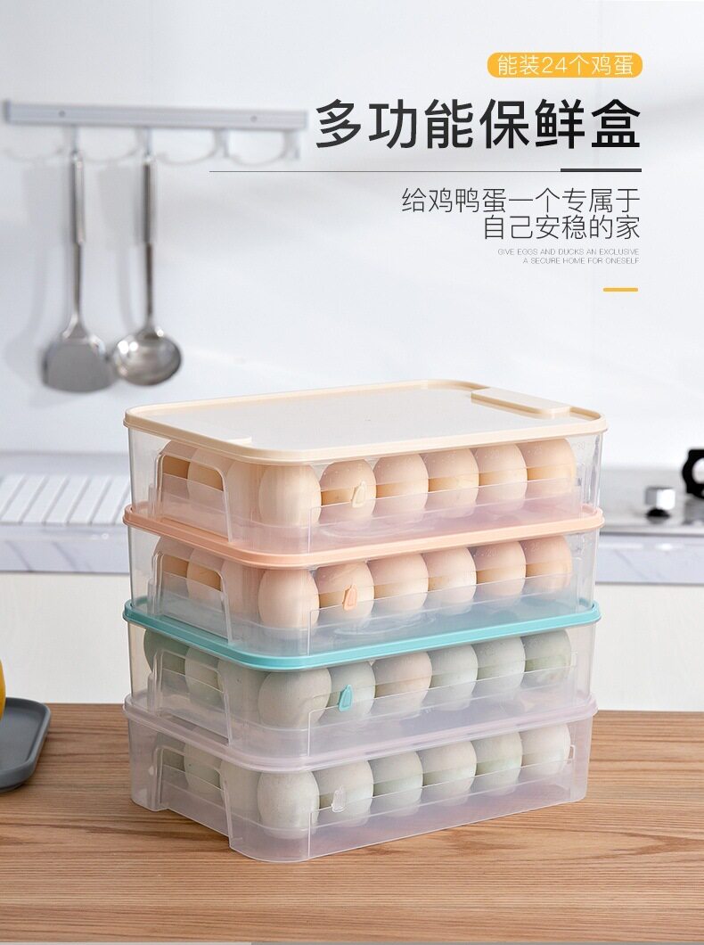Multi-Color egg box kitchen household stackable refrigerator fresh-Keeping transparent storage box plastic frozen tray