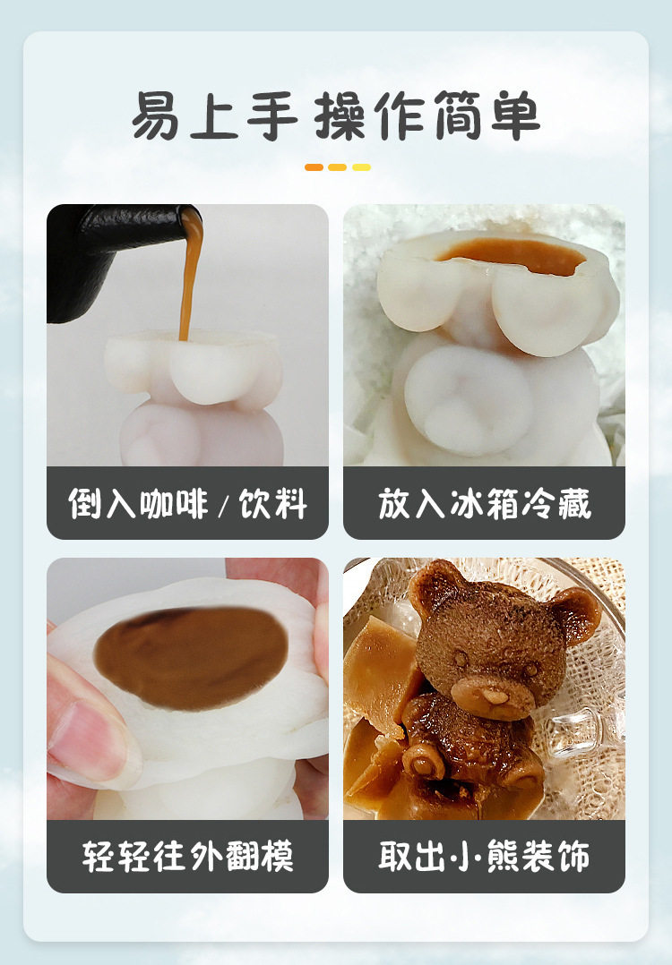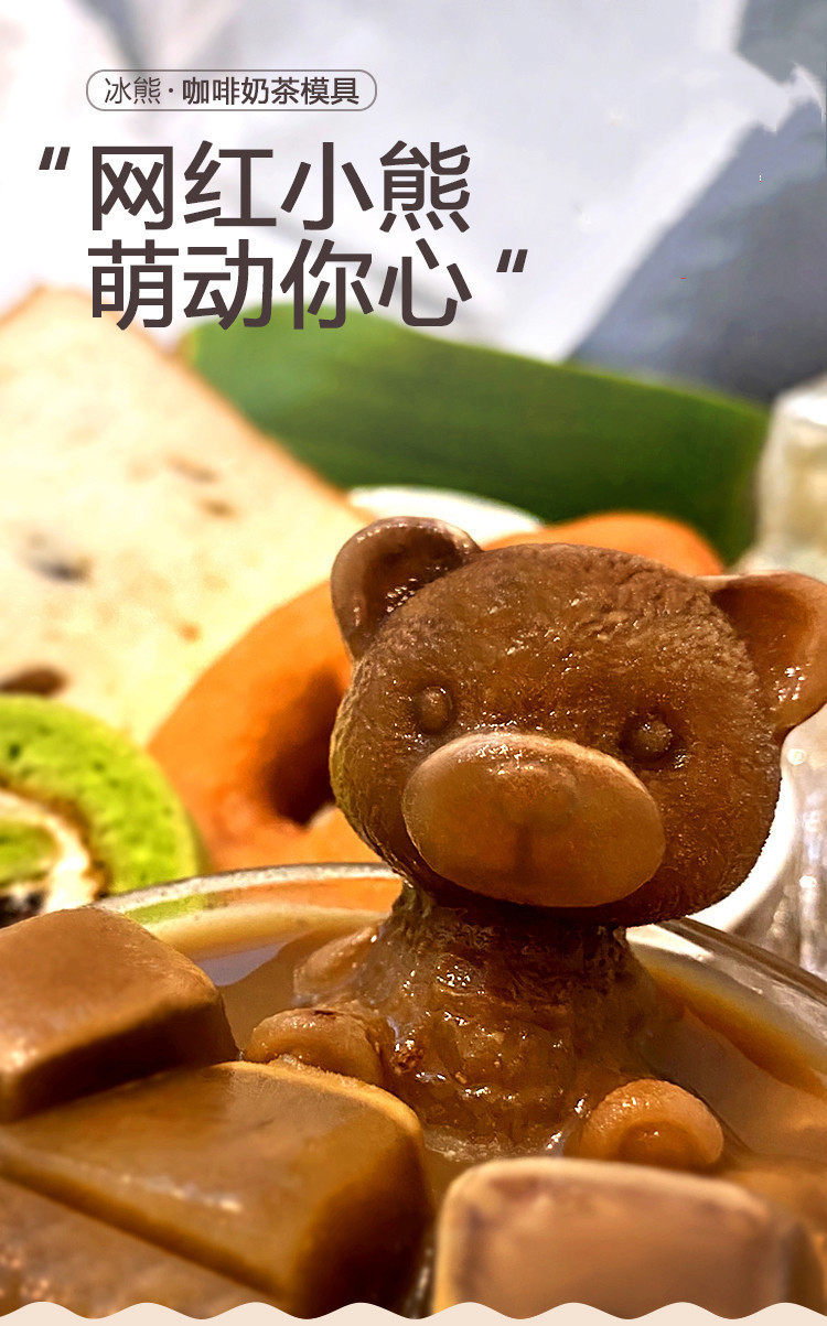 Three-dimensional Bear Ice Cube Mold Food Grade Ice Cream Coffee Mold Silicone Ice Film Ice Rod Sorbet Ice Grid Artifact
