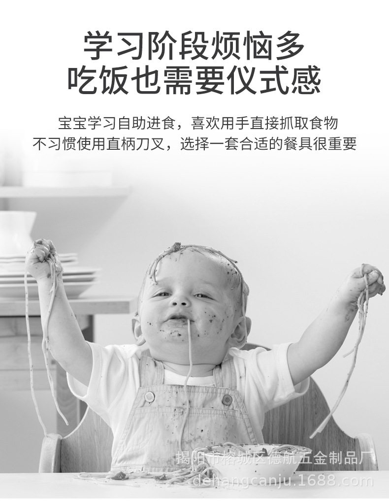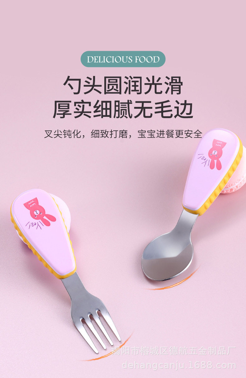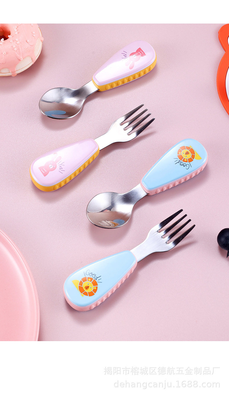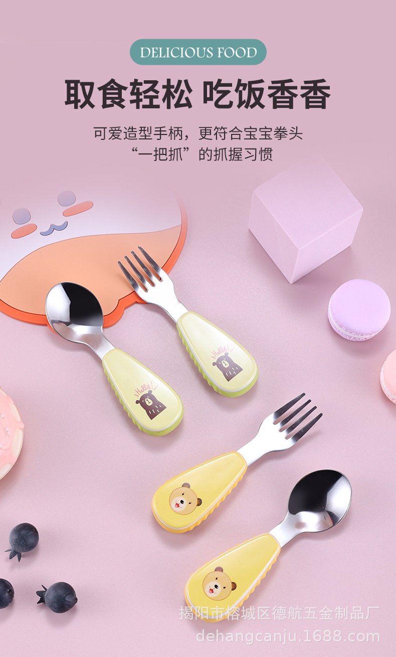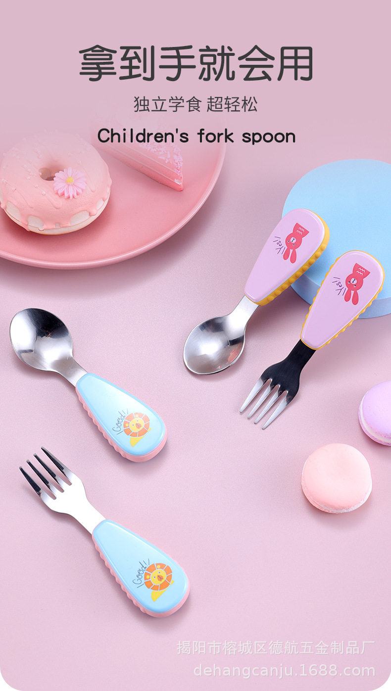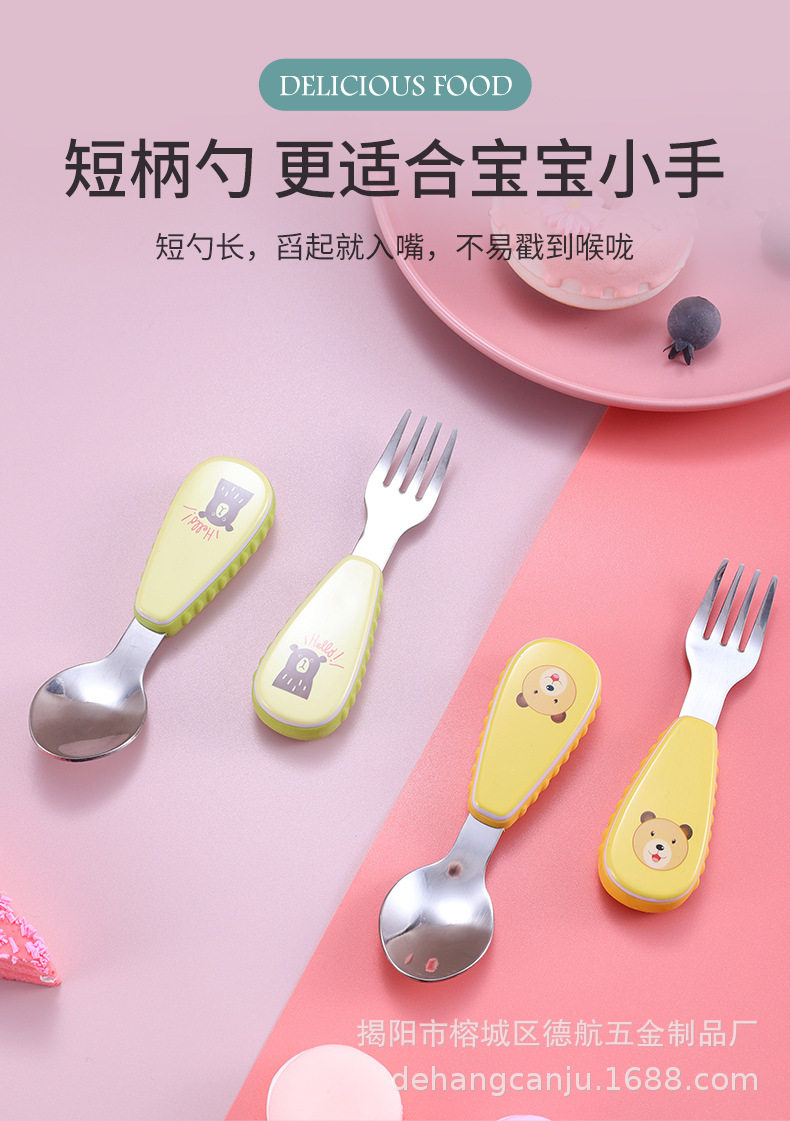 Baby Eating 304 Portable Tableware Kidsren's Fork and Spoon Short Handle Training Spoon Cute Stainless Steel Set Food Grade